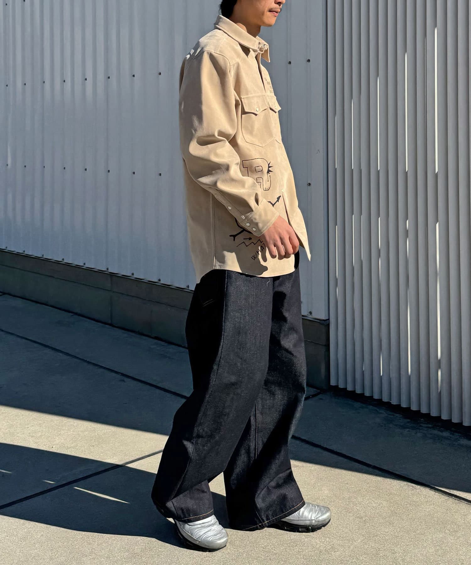 ヨークデザインとスナップボタンでウエスタンらしさを残しつつ、現代的にアレンジ。