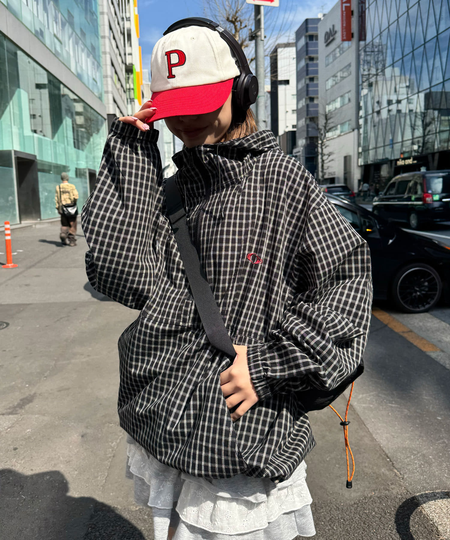 最旬スタイルに決まるチェックアノラック