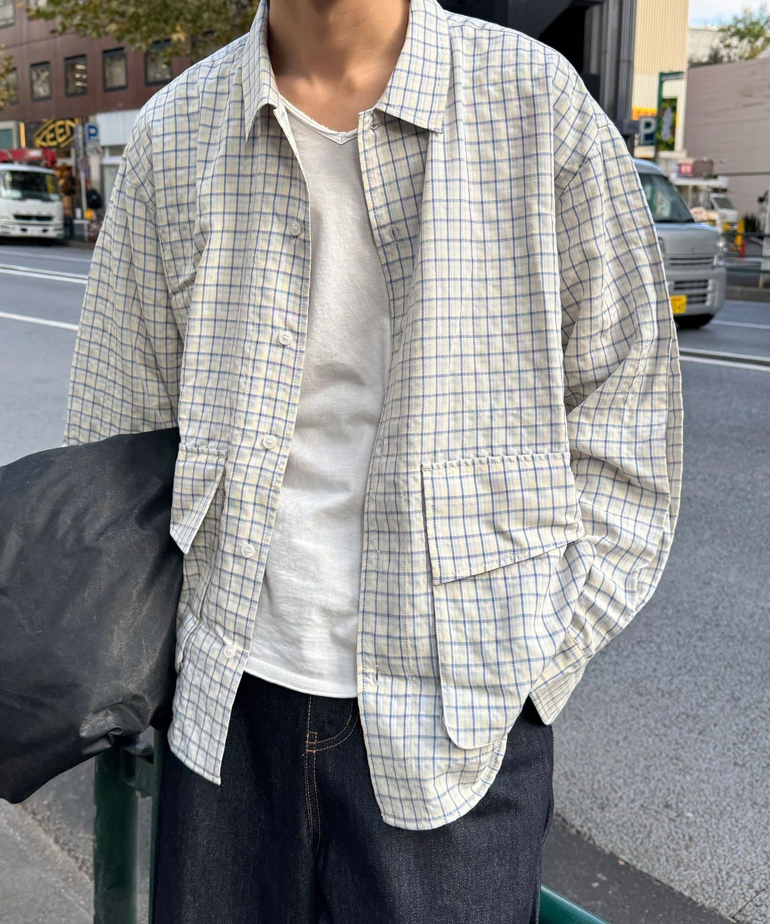 ヴィンテージ感のある古着のような風合いのチェックシャツ。