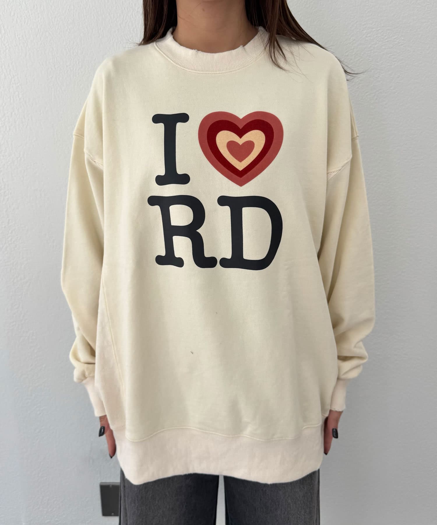 ポップなプリントが魅力的なオーバーサイズスウェット