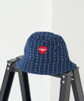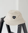 ミッドウェイトのコットンツイル素材を使用し、裏地なしのデザインで仕上げたドリューバケットハット。フロントにはハートのワッペンがあしらわれている。被る人を選ばない綺麗なシルエットがポイントです。