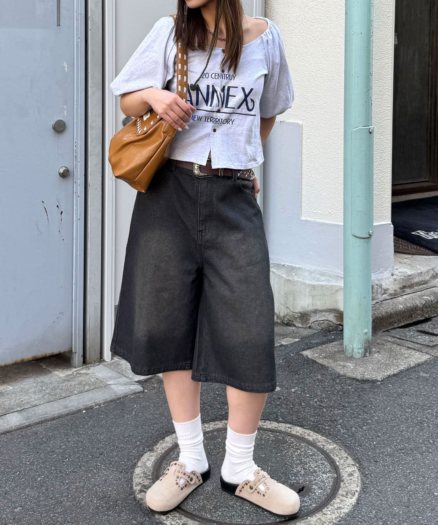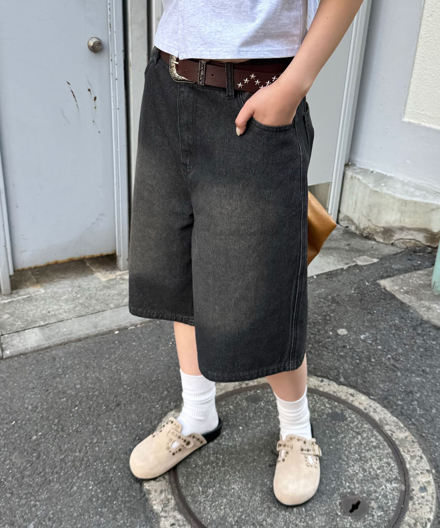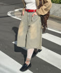 ゆったりシルエットのデニムショーツは、オーバーサイズのTシャツやシャツと合わせて、リラックス感のあるコーディネートに。