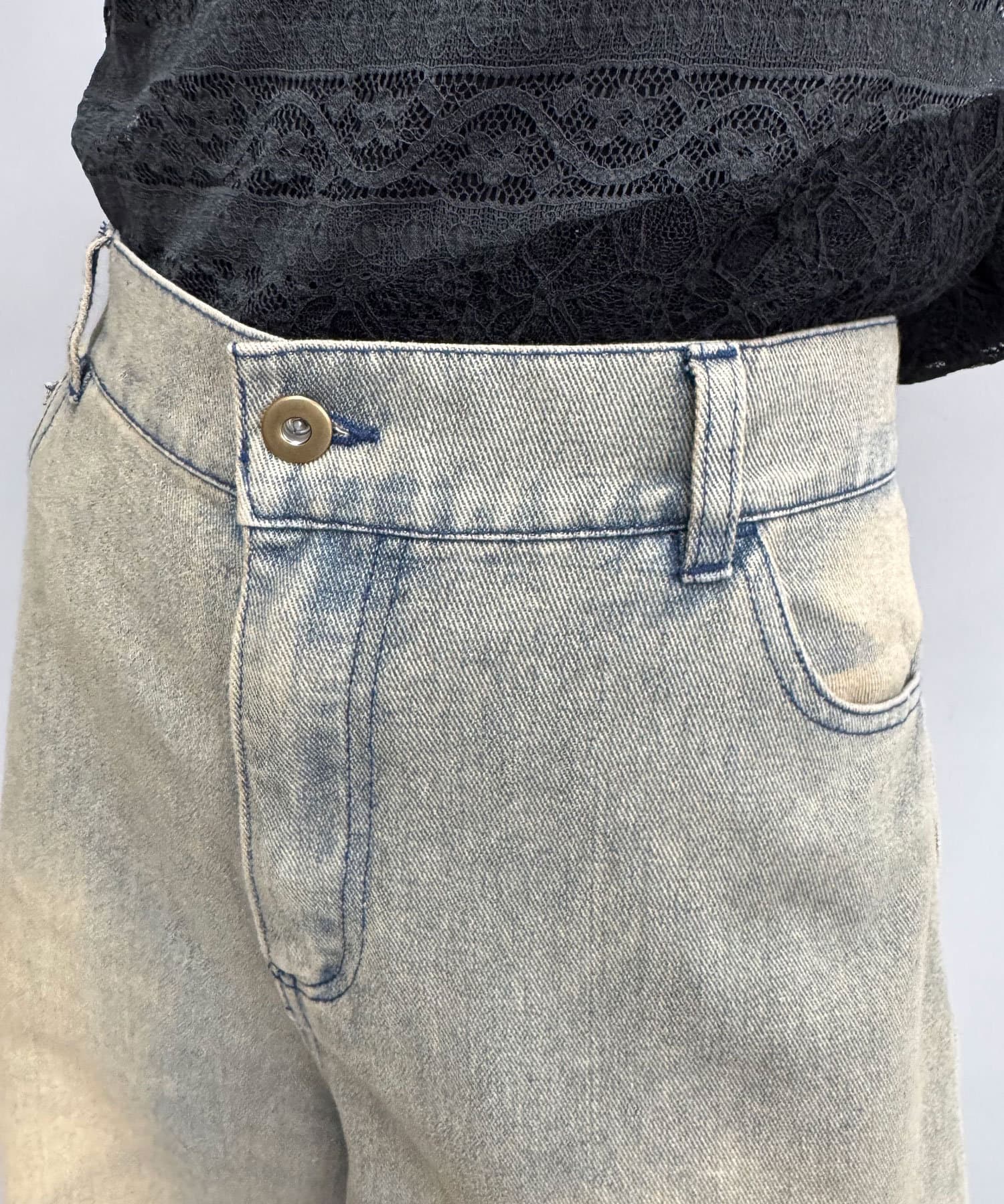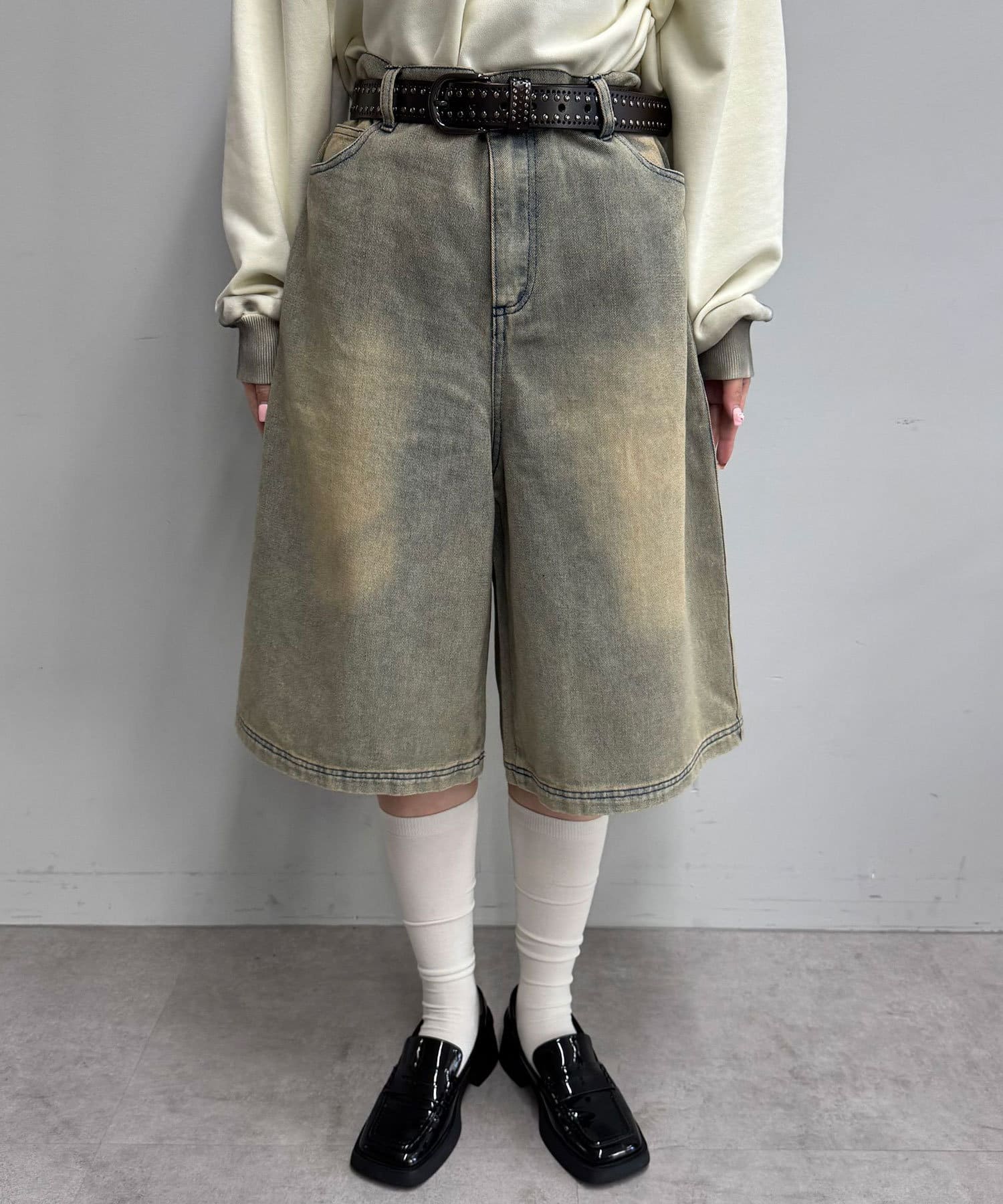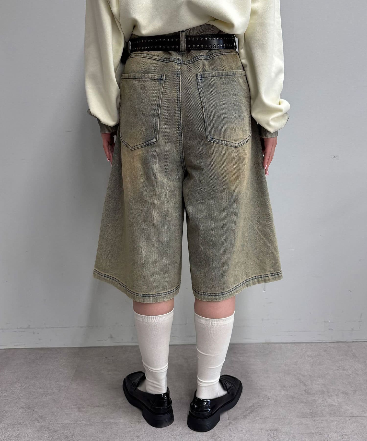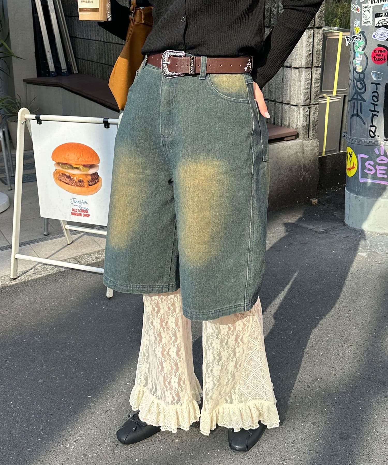 トレンド感と個性を兼ね備えたオーバーダイブラストデニムショーツ。