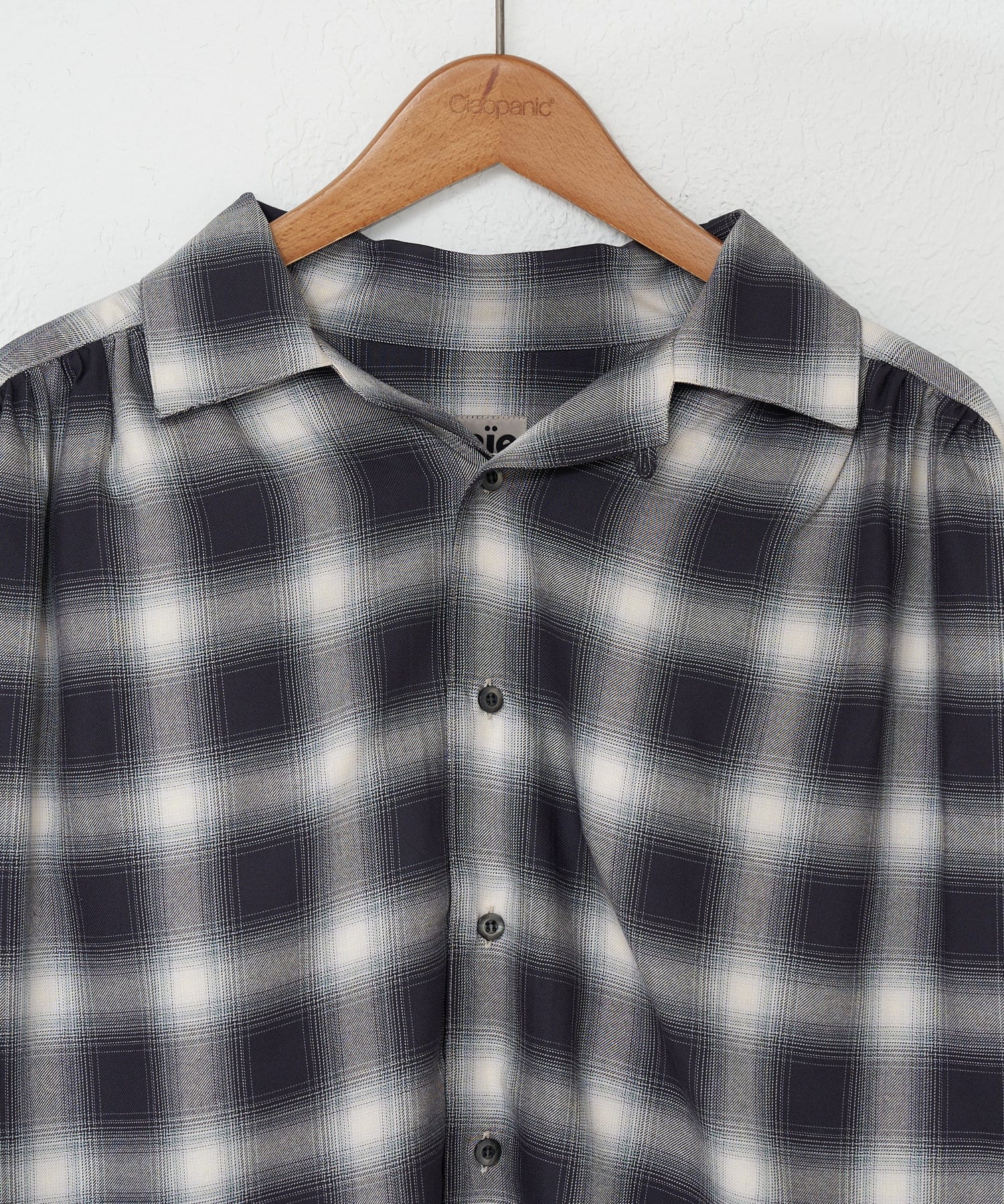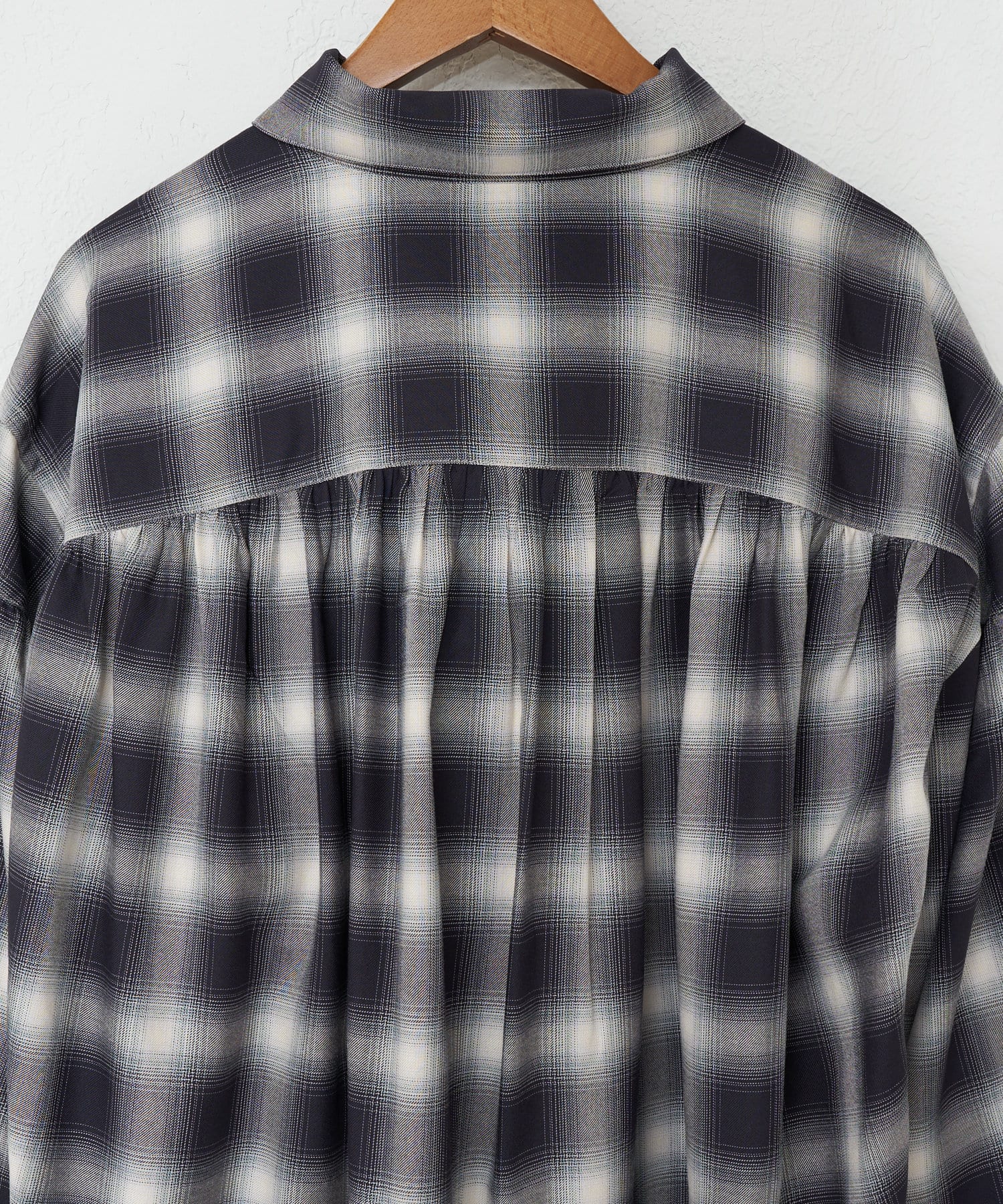 リラックス感のあるオープンカラーと、フロントとバックのヨーク周りに施したギャザーが生む、独特の膨らみのあるシルエットが特徴の定番シャツ。毎シーズン様々なファブリックでリリースされる人気アイテムのひとつです。