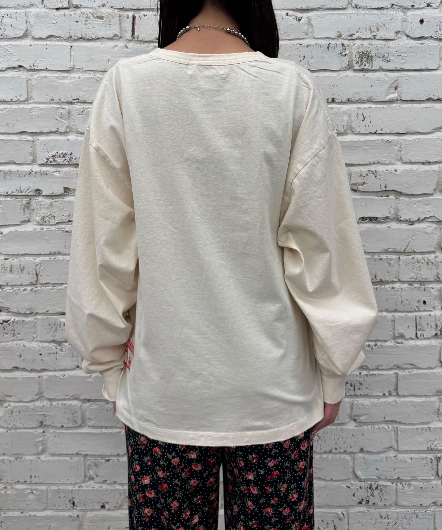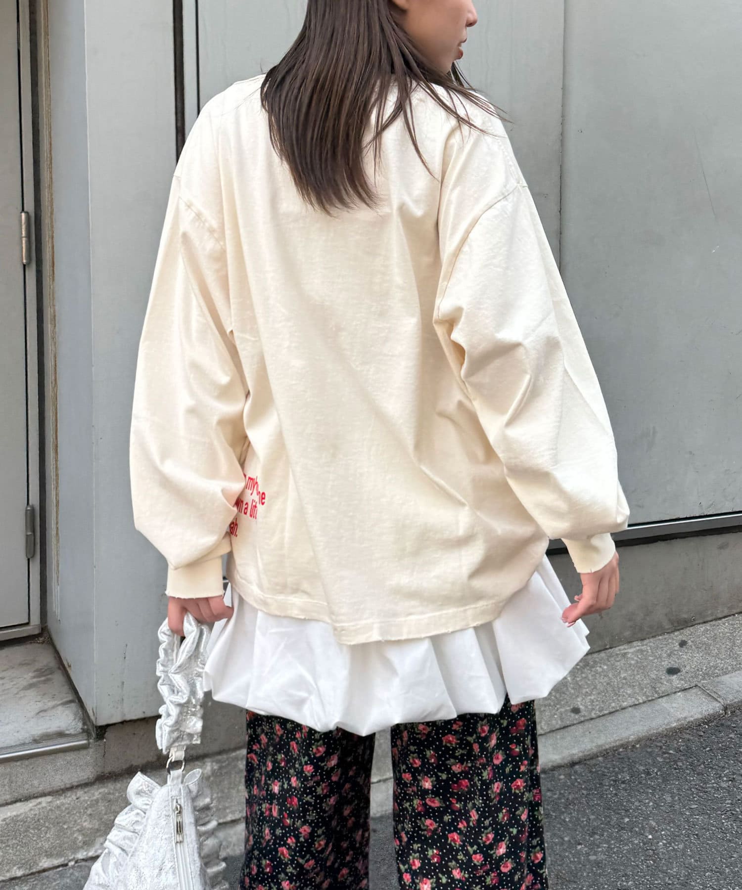 大胆なグラフィックデザインが目を引くロングスリーブTシャツ