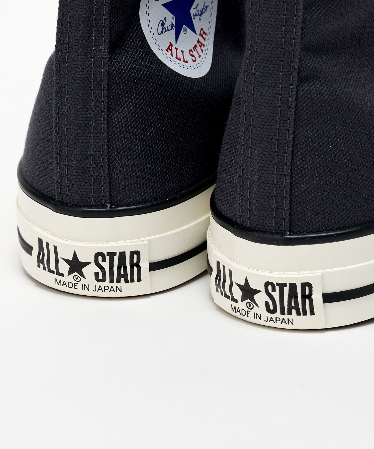 ヒールラベルの下部に印字した「MADE IN JAPAN」の文字、日本国旗をイメージしてホワイトキャンバスに赤字で印したインソールのコンバースロゴが特別感を演出。