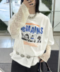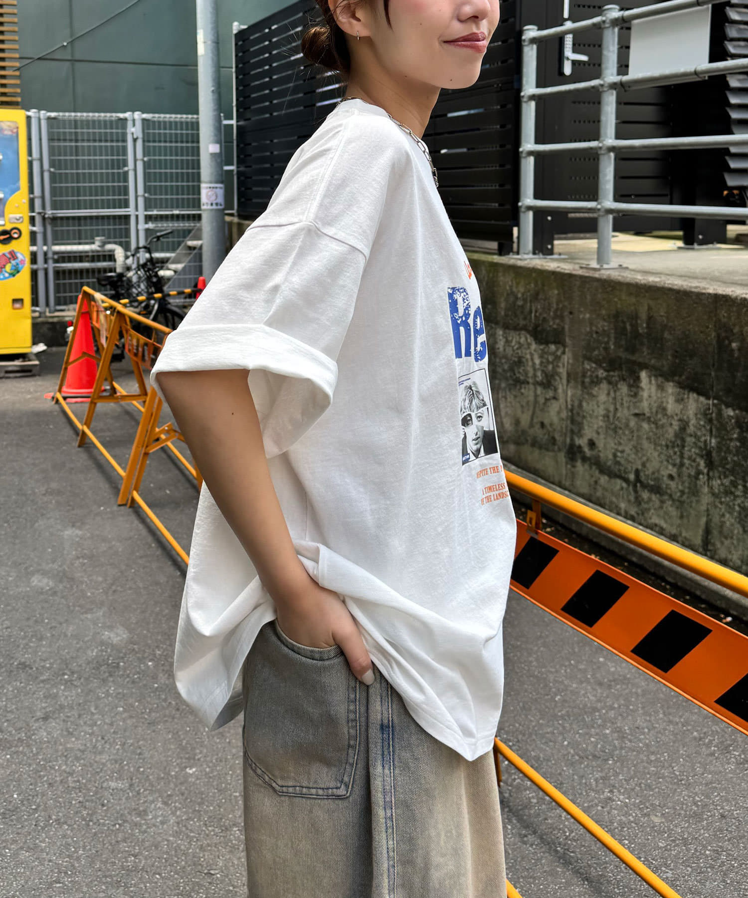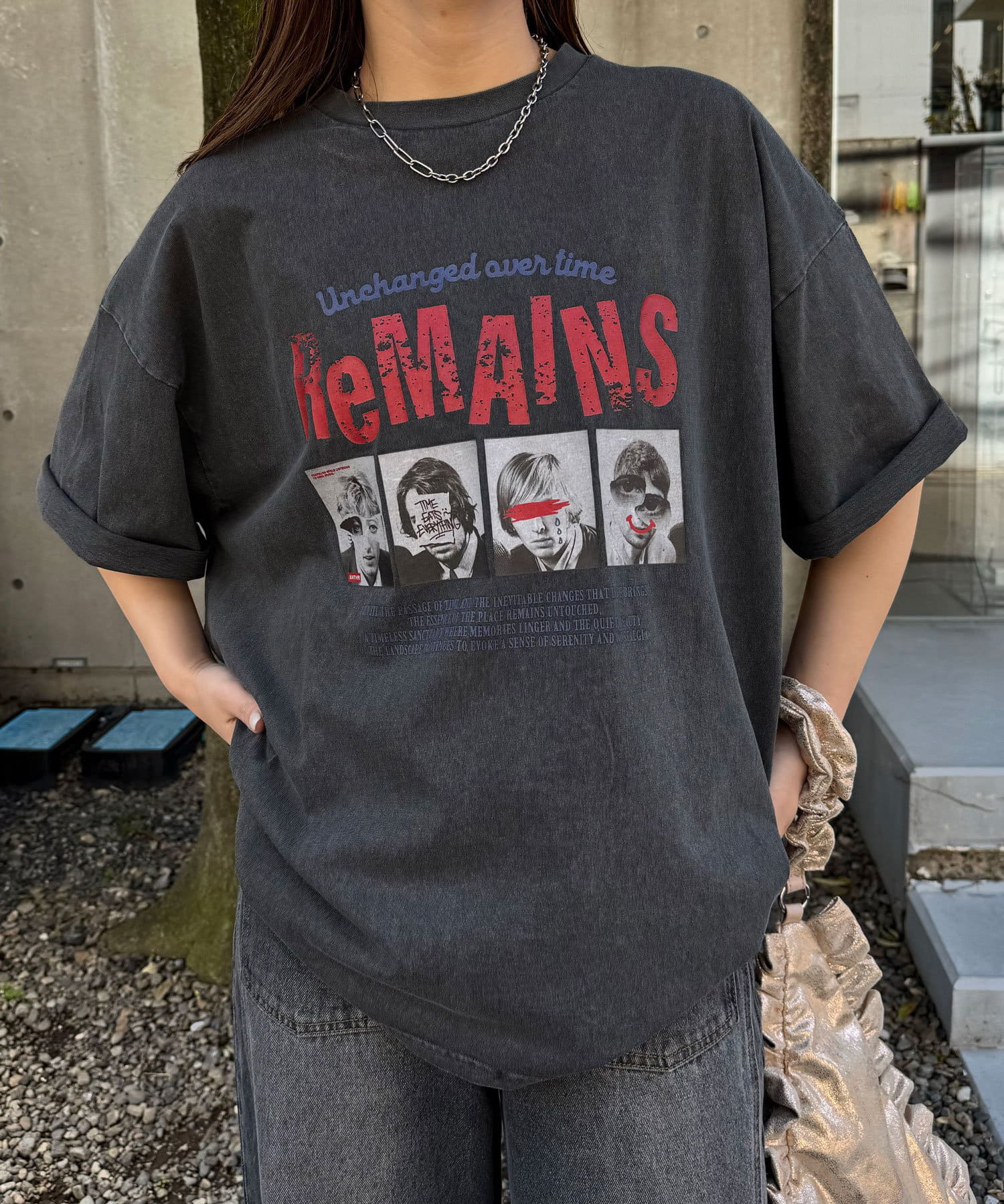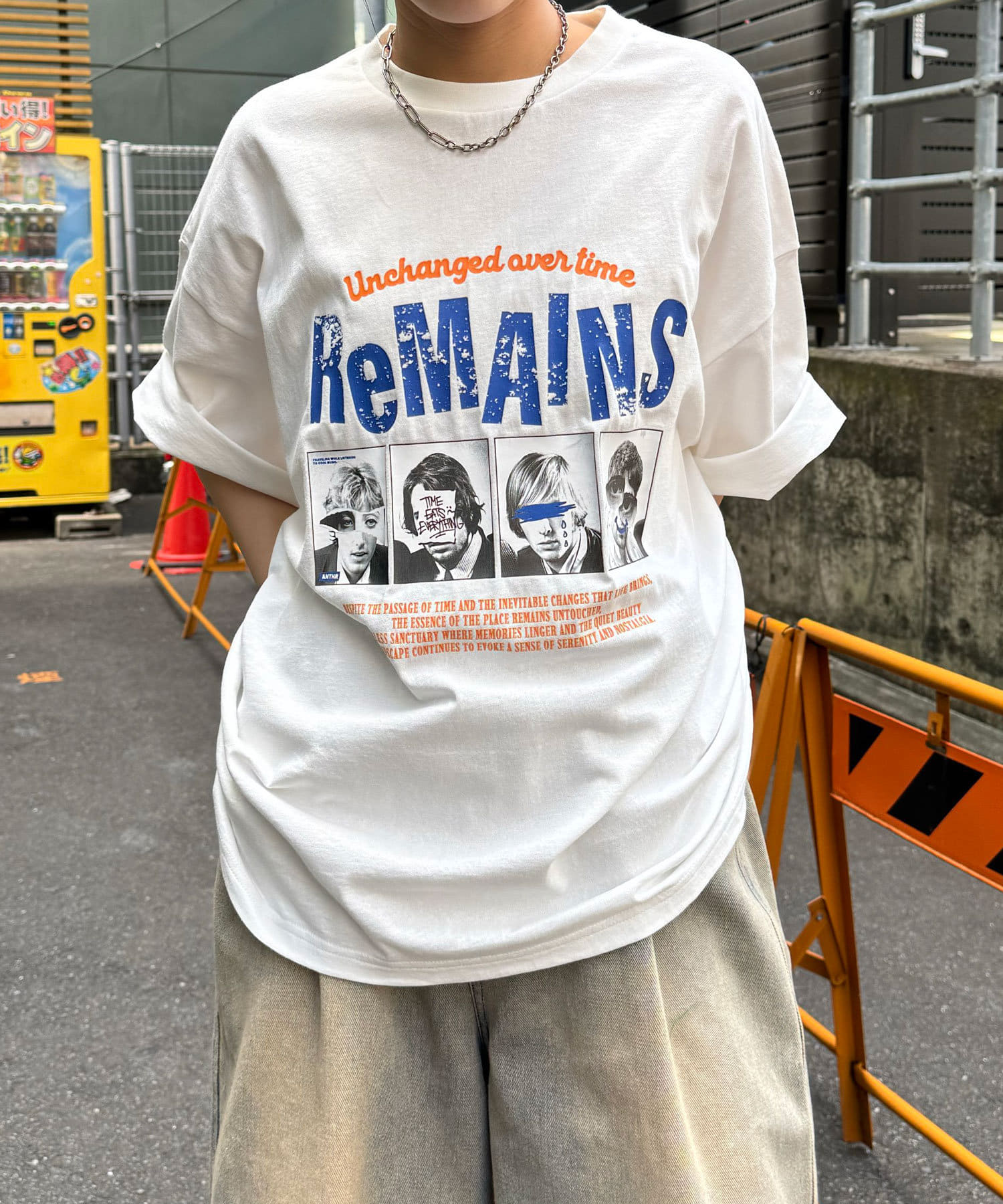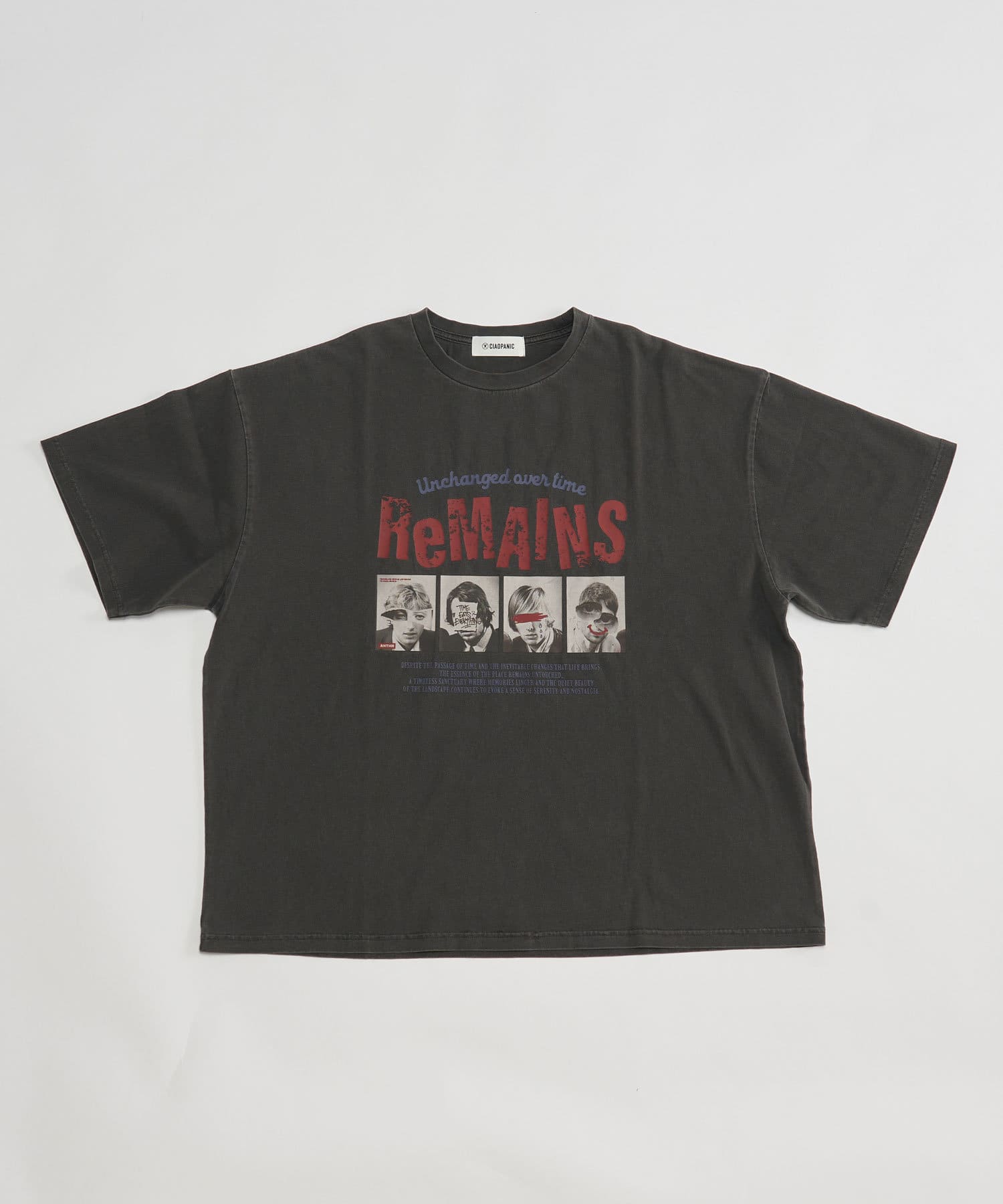 大胆なプリントが目を引くバンドモチーフのプリントTEE。