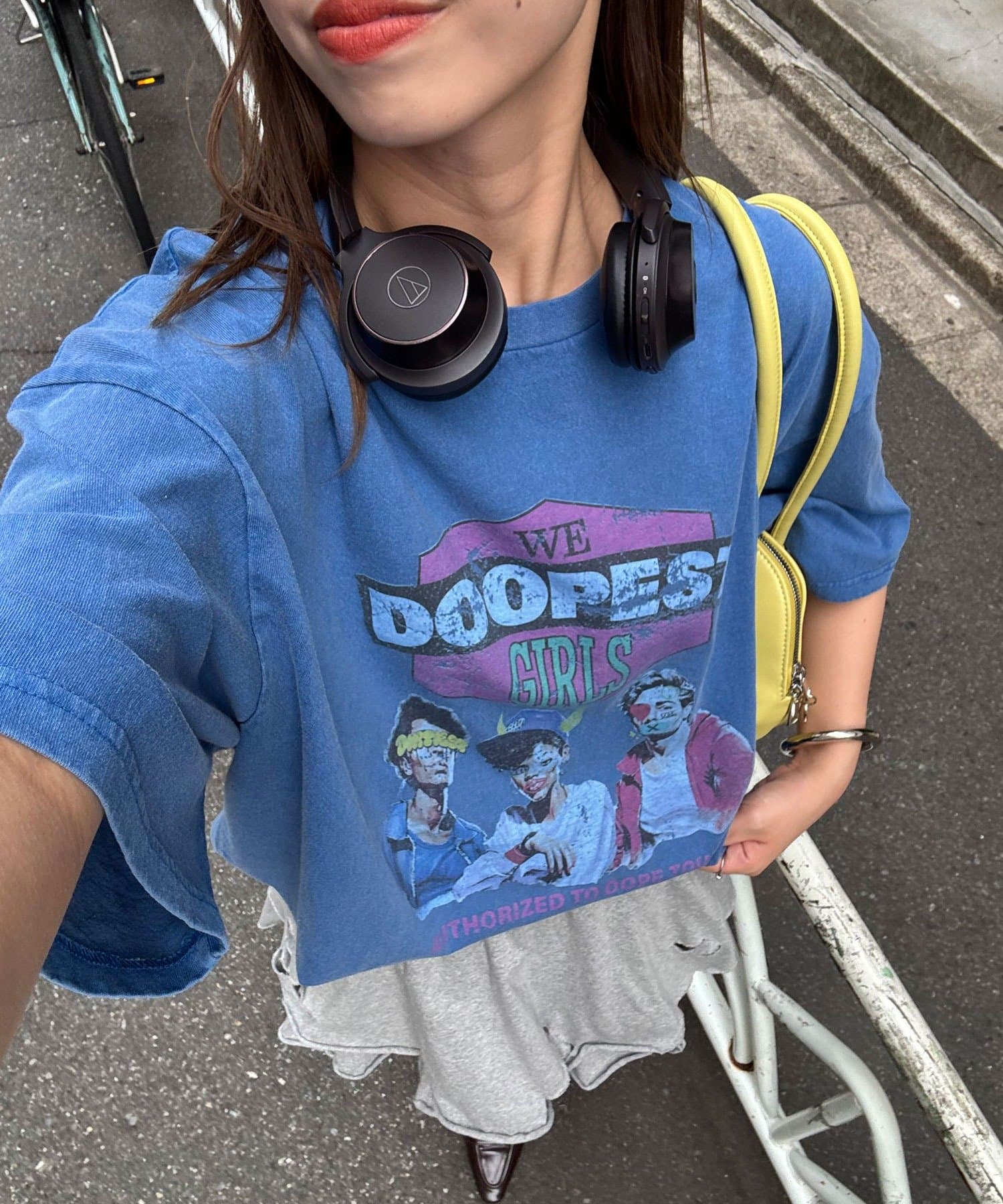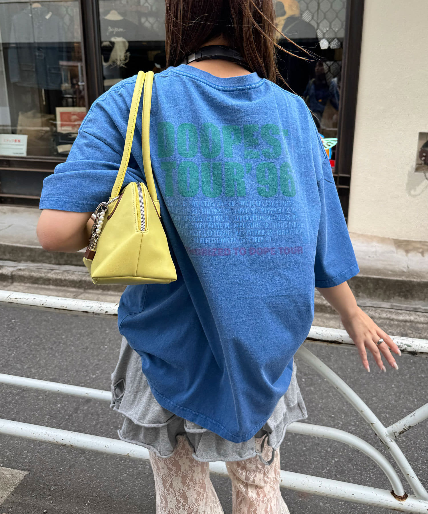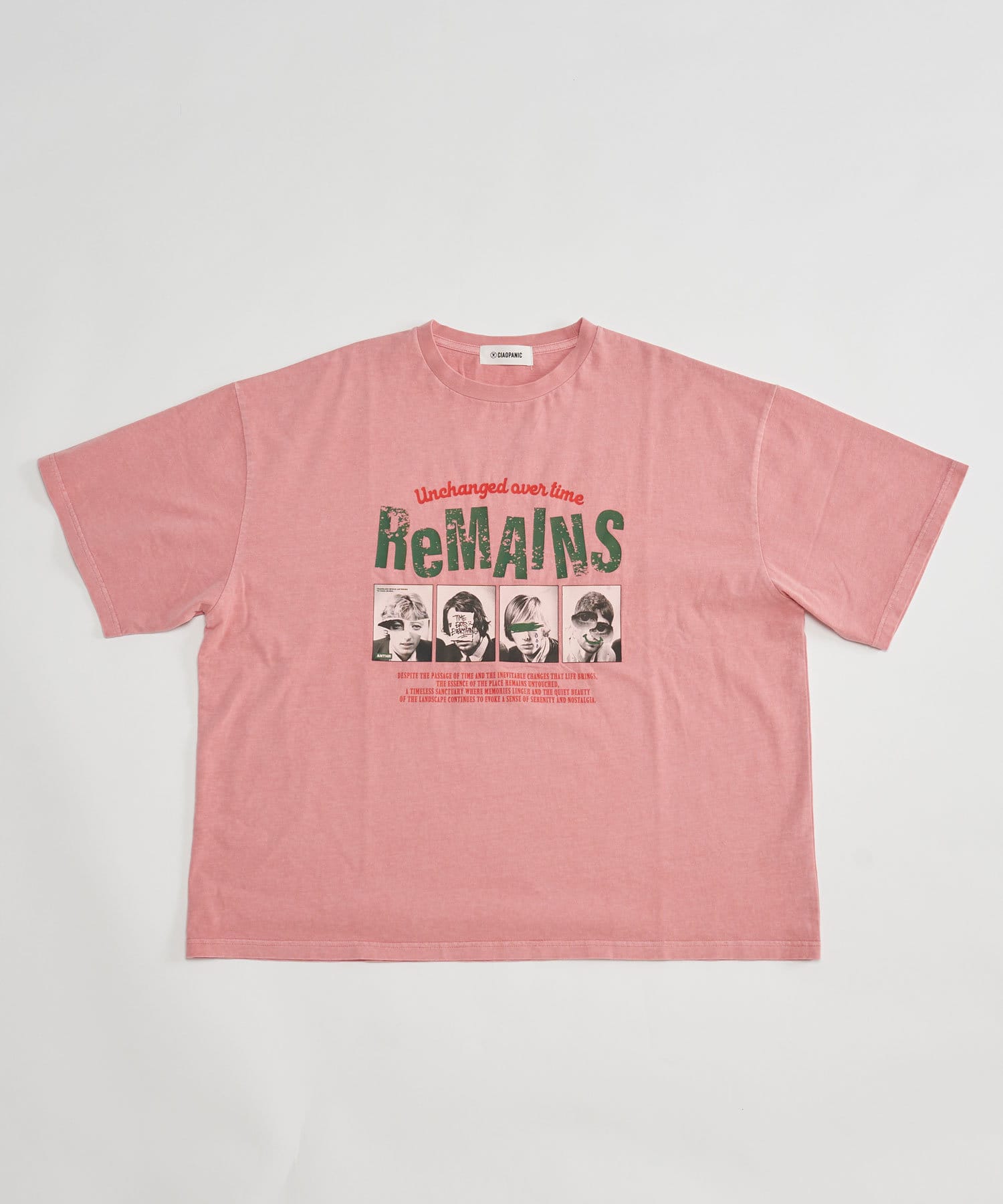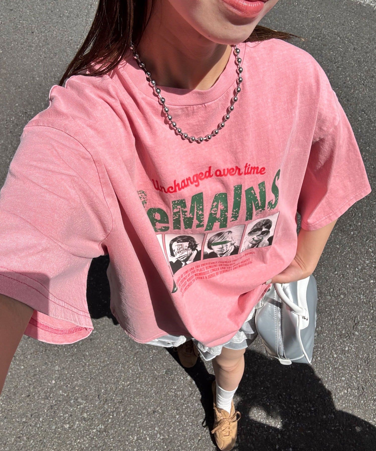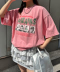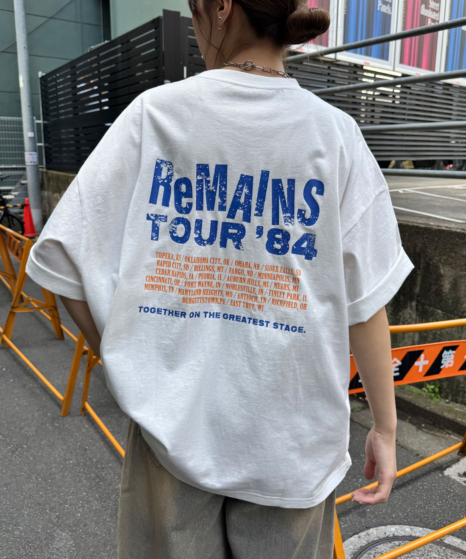 大胆なプリントが目を引くバンドモチーフのプリントTEE。