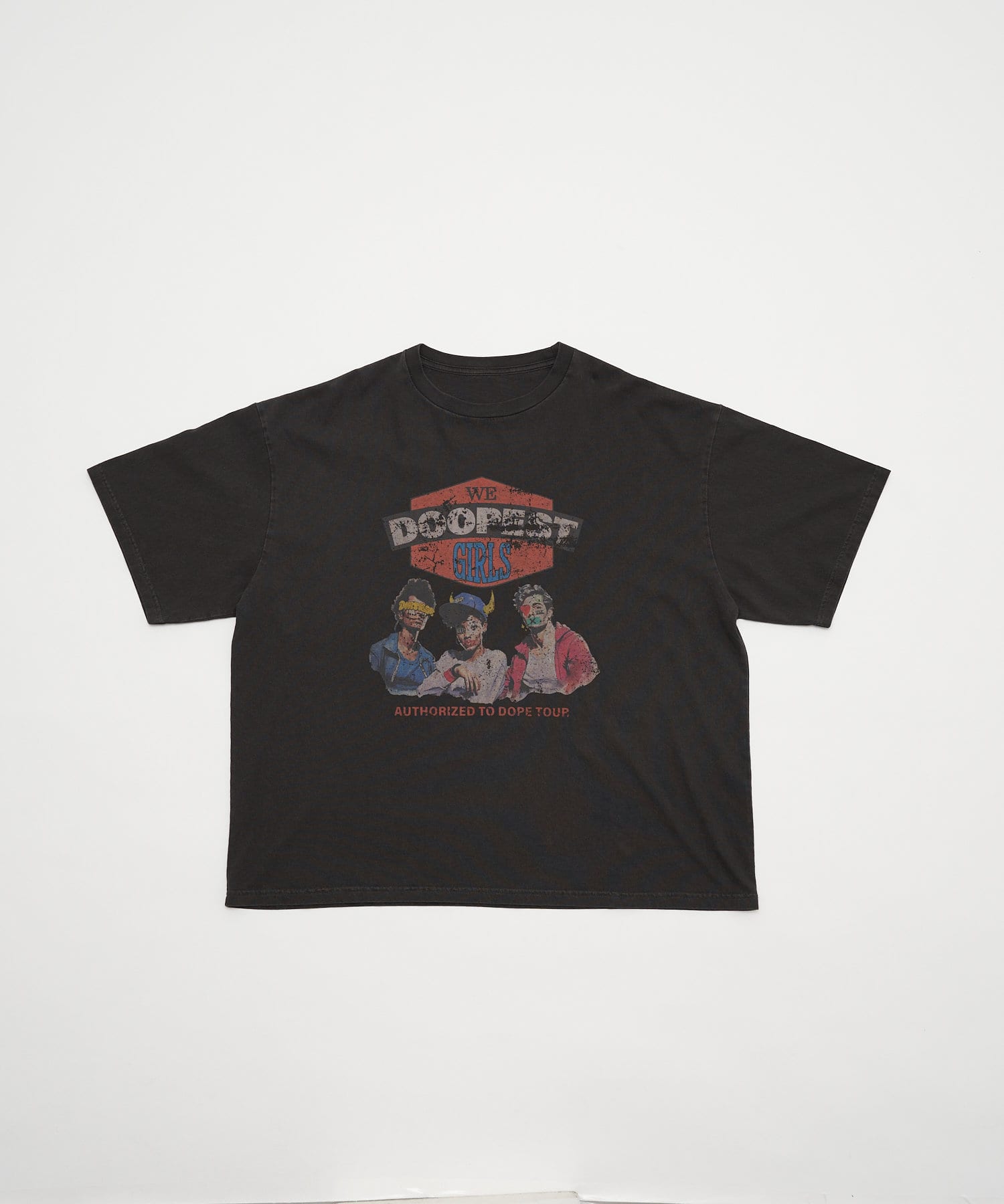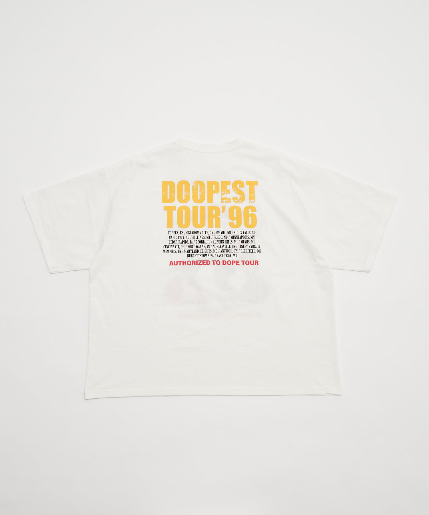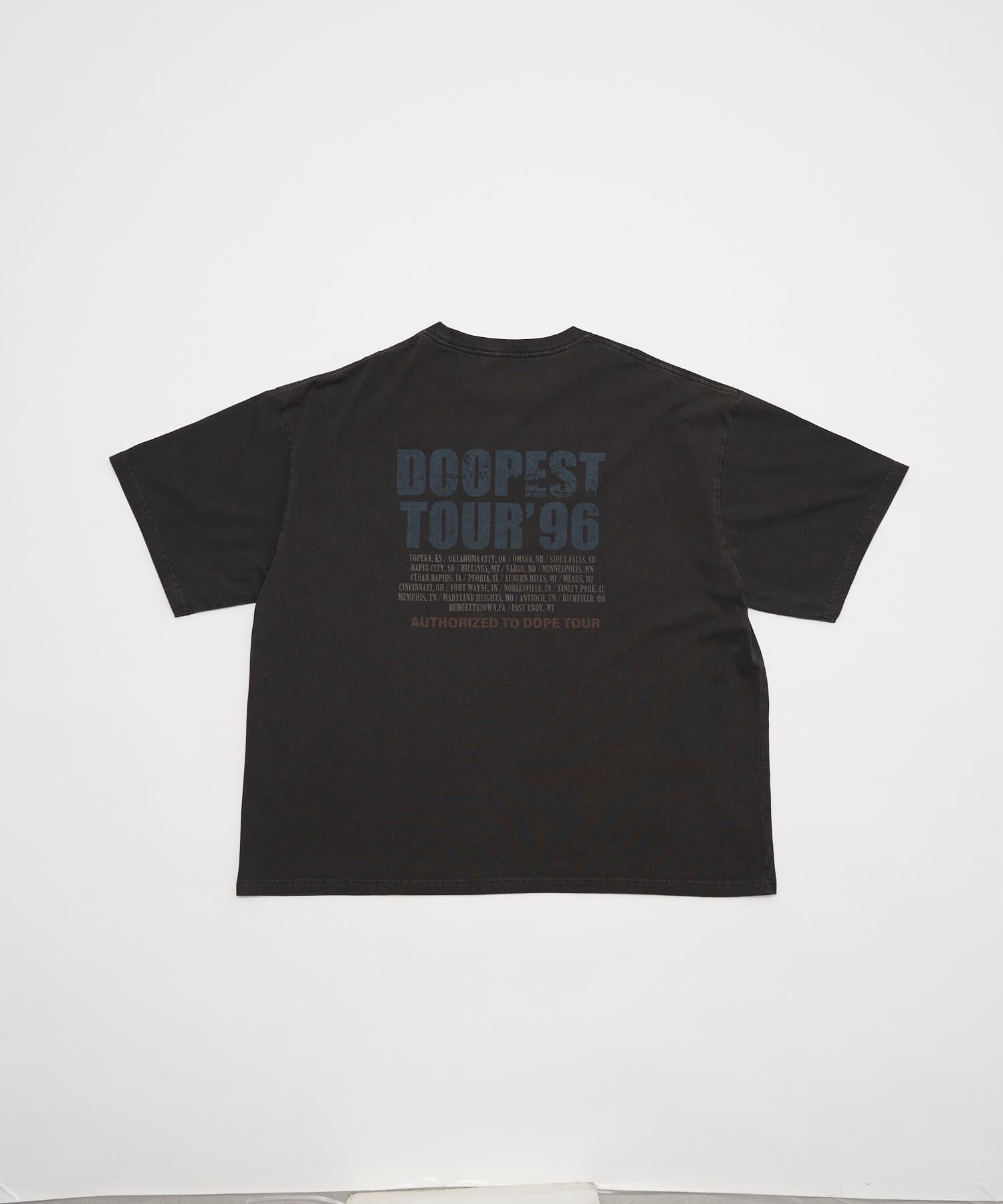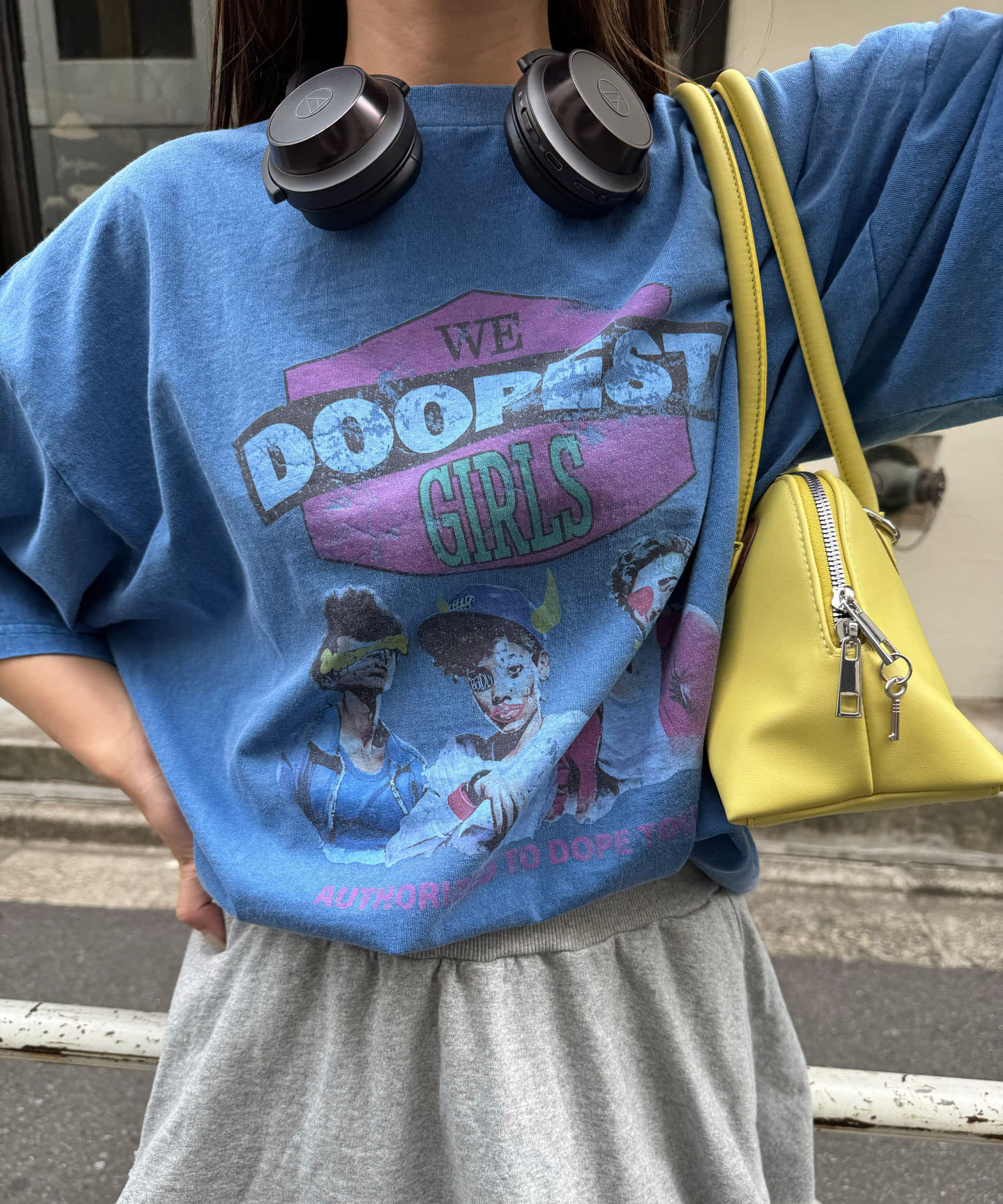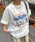 大胆なプリントが目を引くバンドモチーフのプリントTEE。