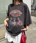 大胆なプリントが目を引くバンドモチーフのプリントTEE。