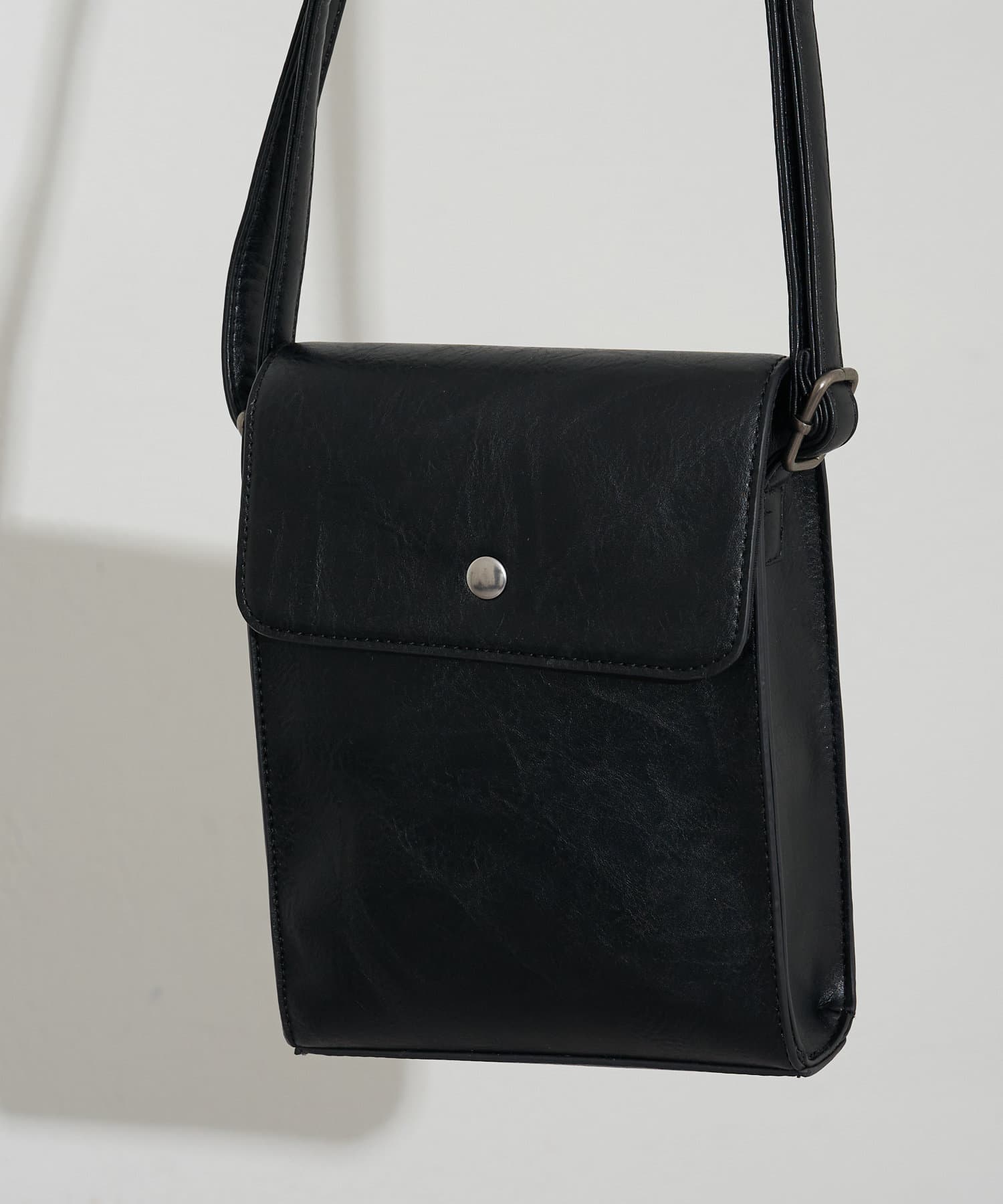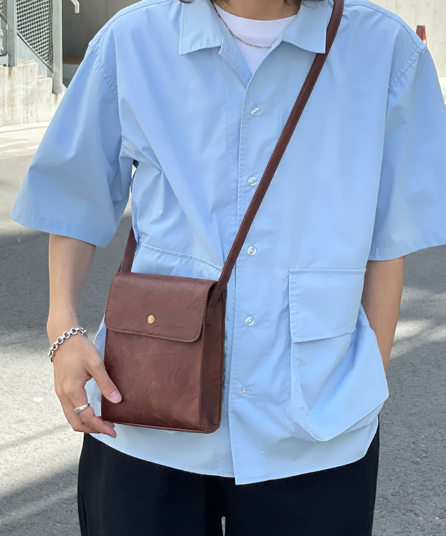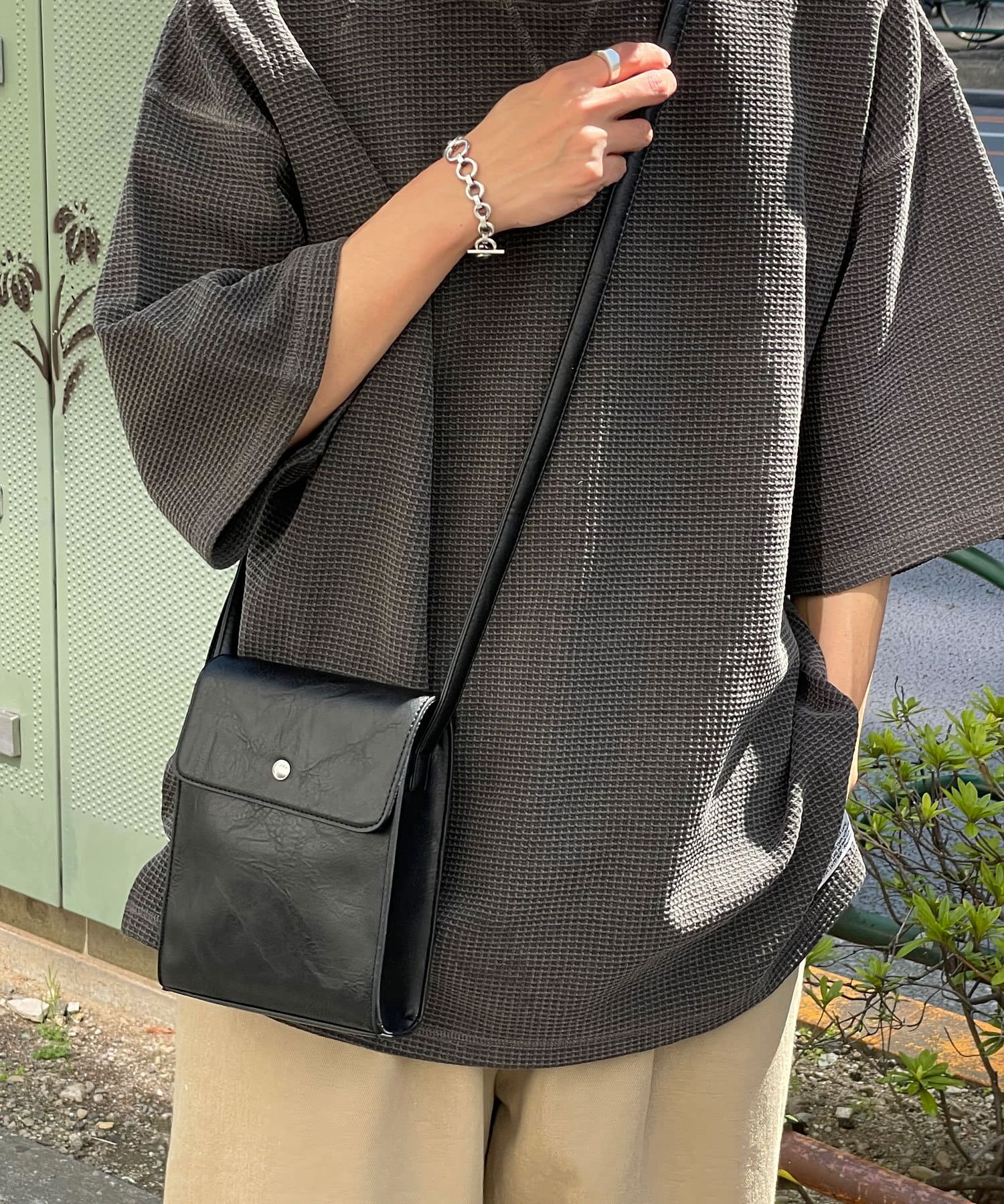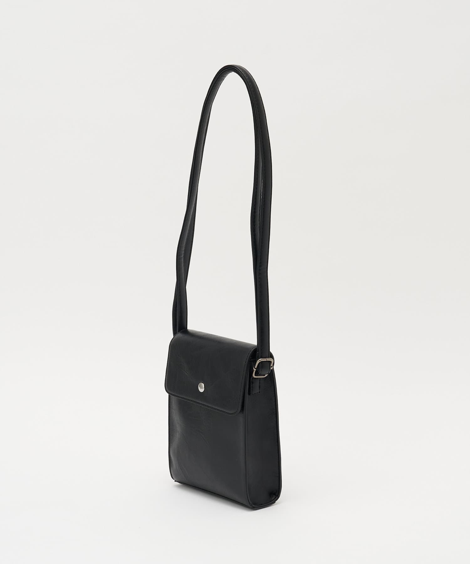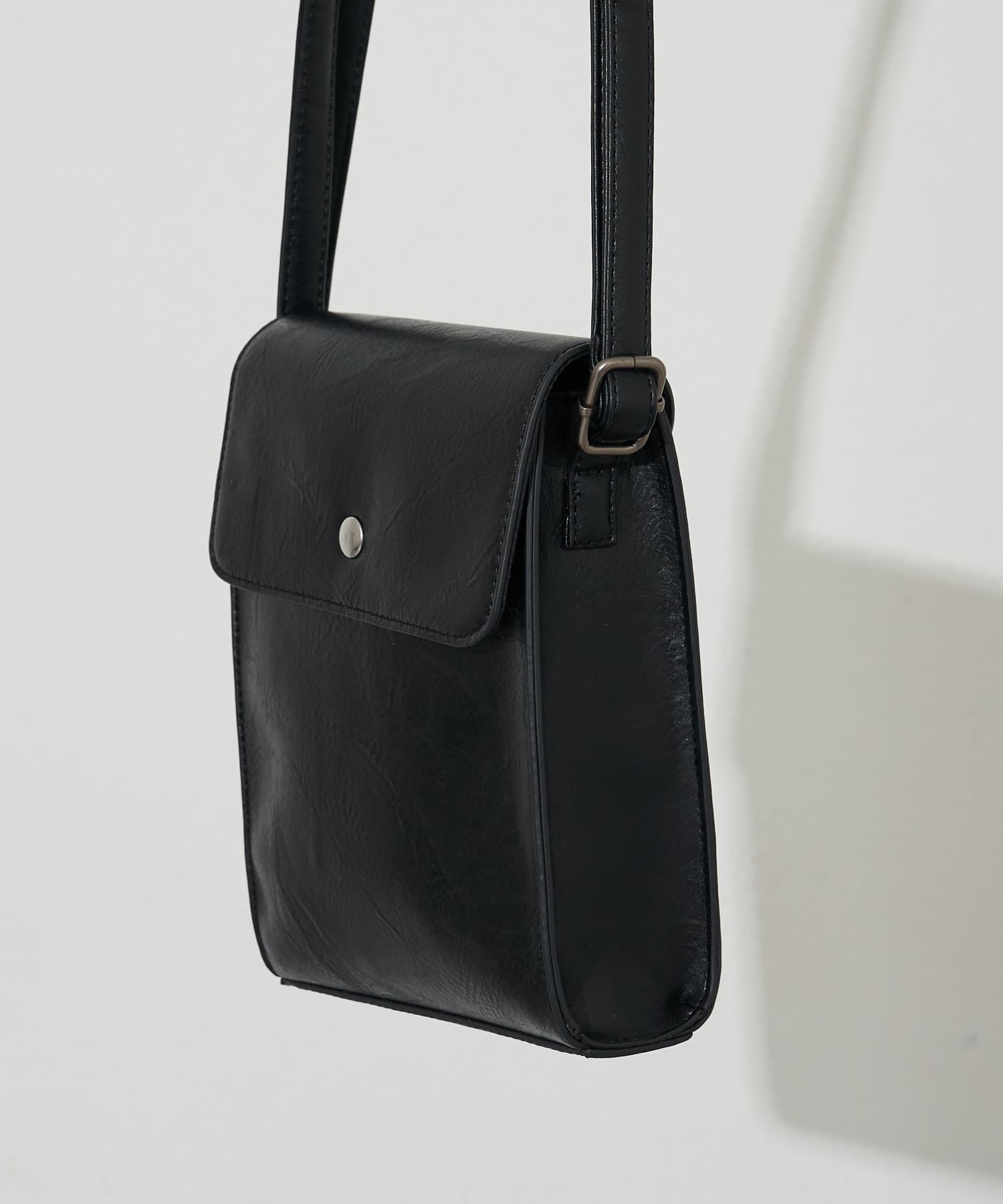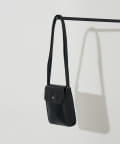 シンプルなスクエアフォルムが特徴のショルダーバッグ。