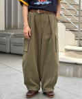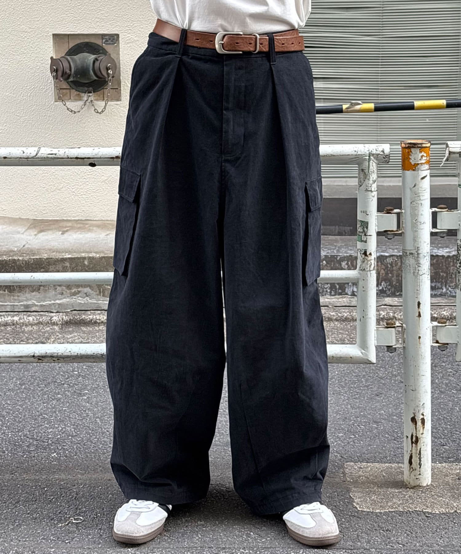 軽やかでマットな質感が魅力の、ミリタリーテイストなワイドカーゴパンツ。