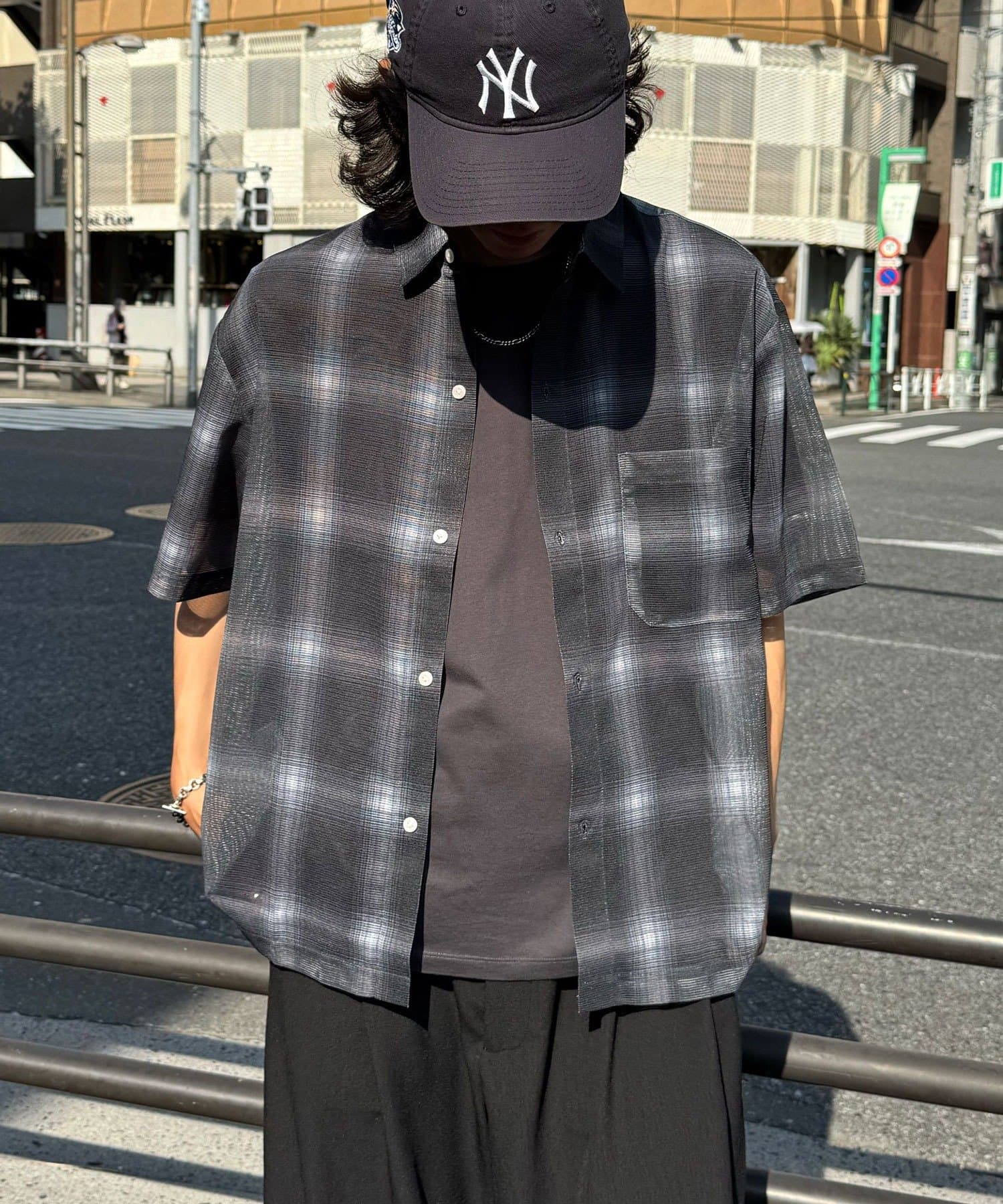 モノトーンコーデに1枚投入するだけで、抜け感のあるコーデに。