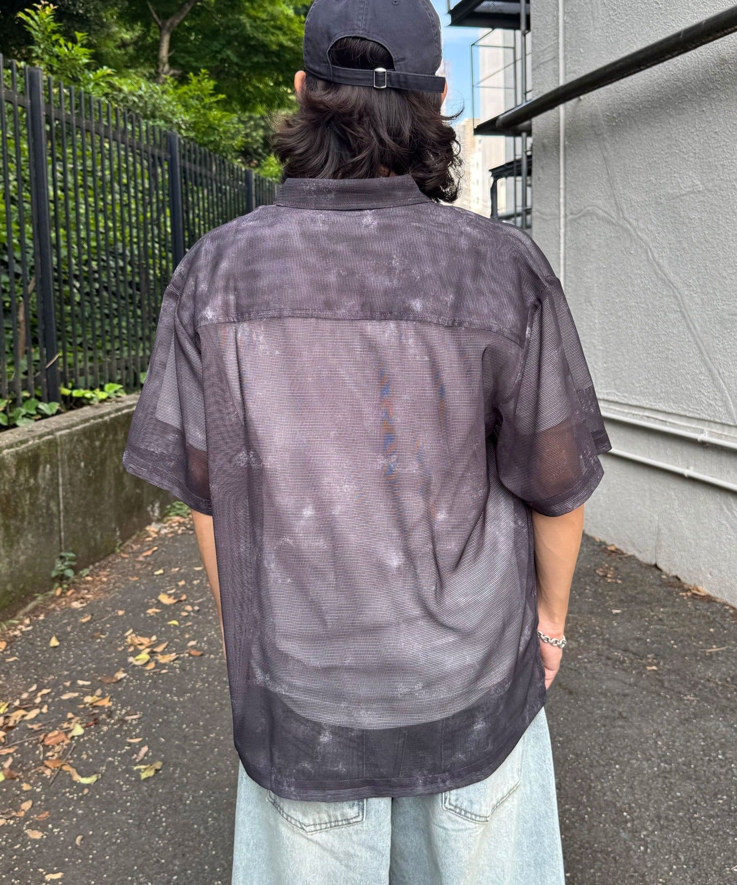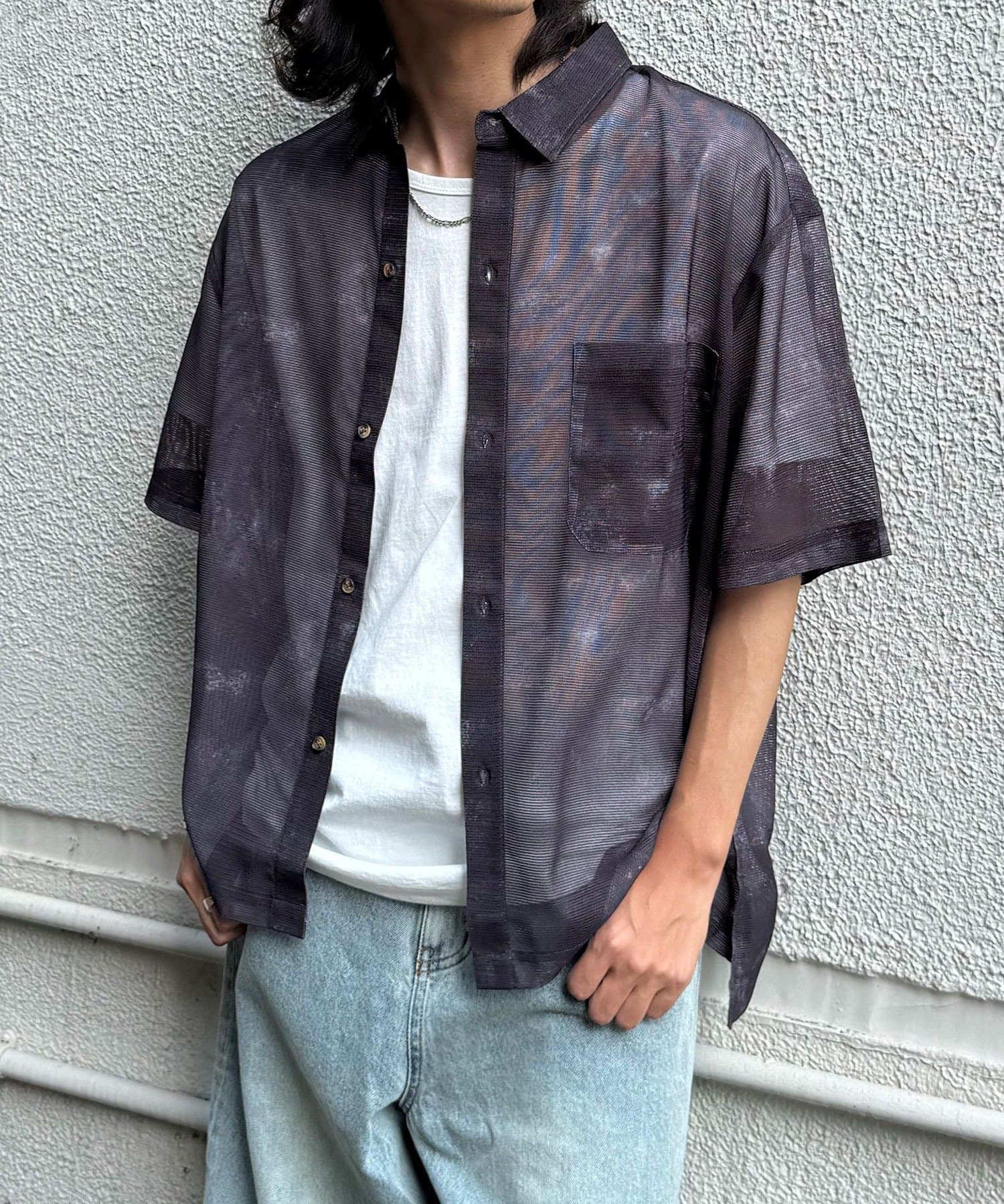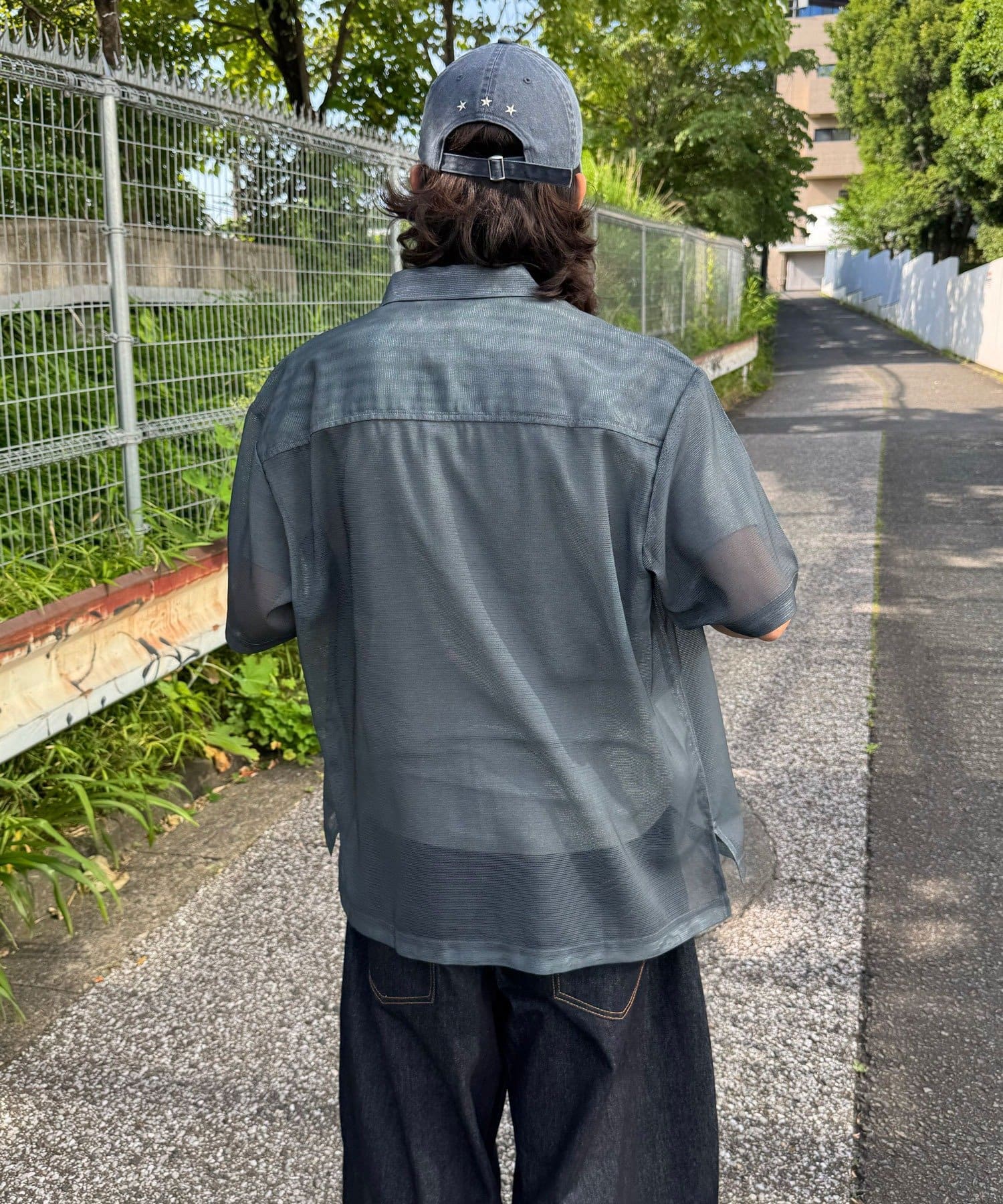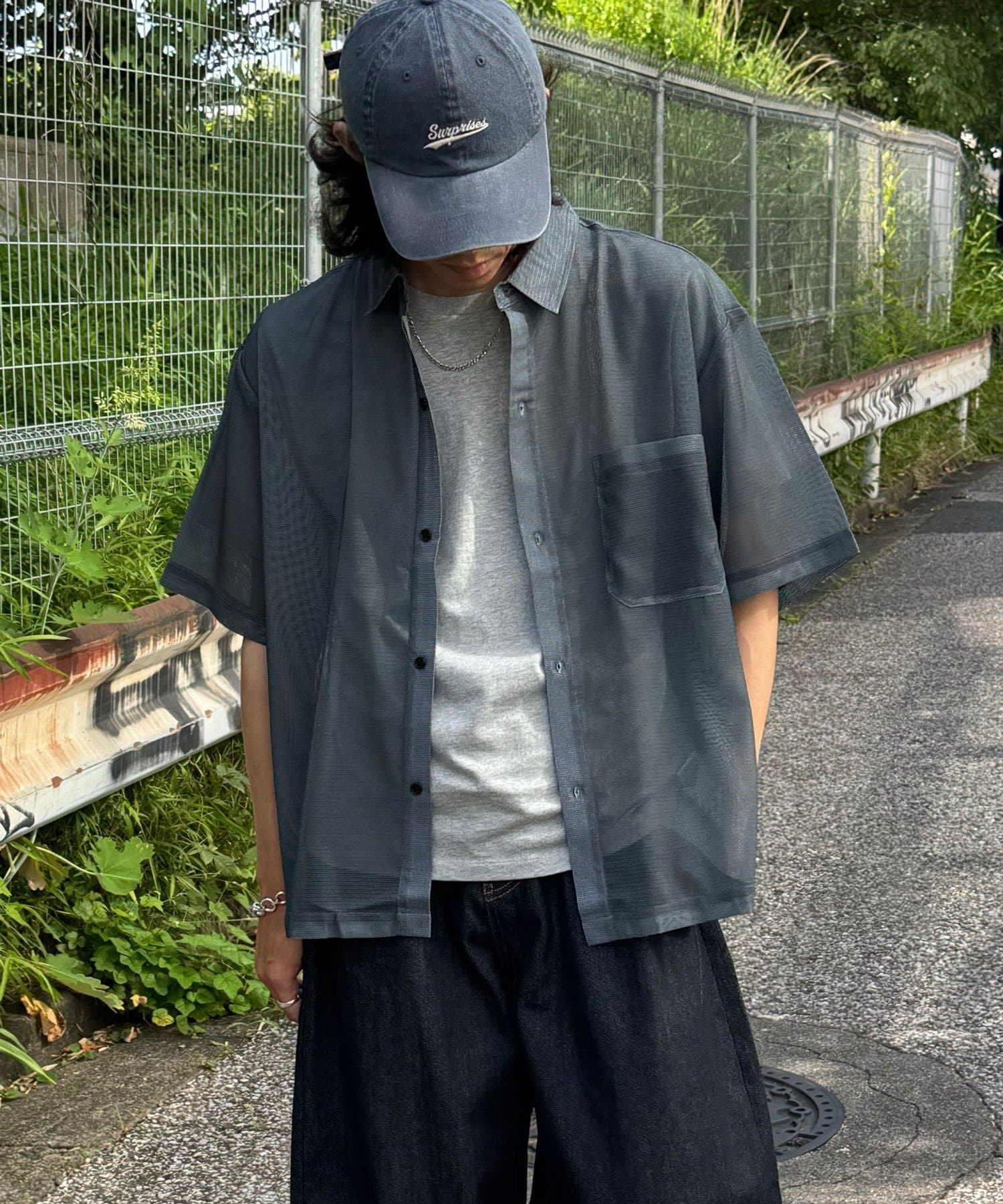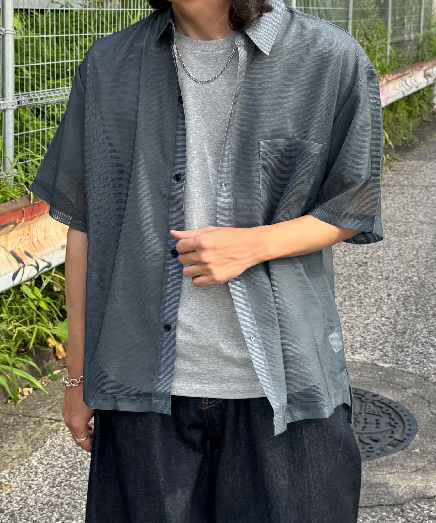 程よい透け感が今っぽい、メッシュ素材のショートスリーブシャツ。