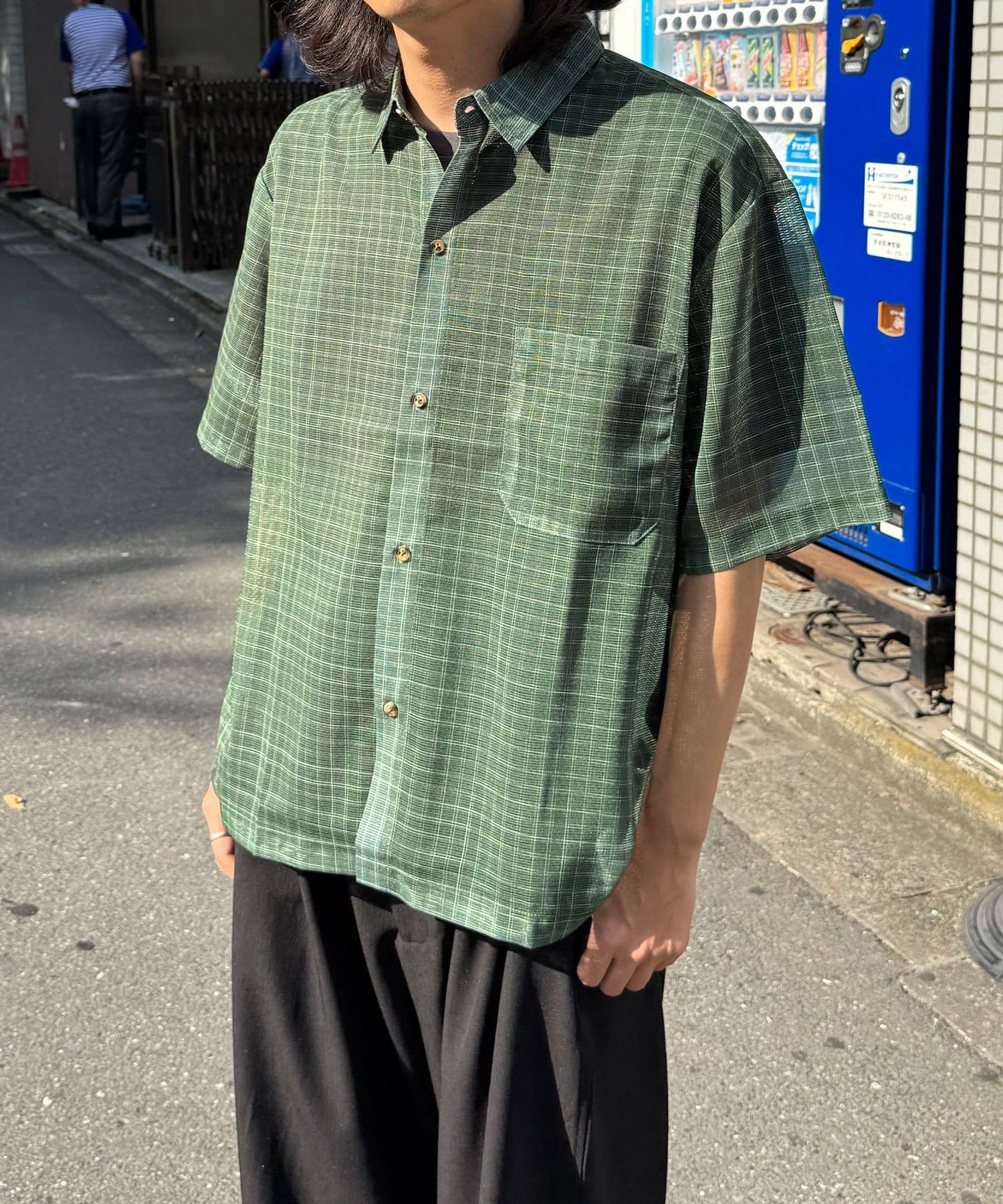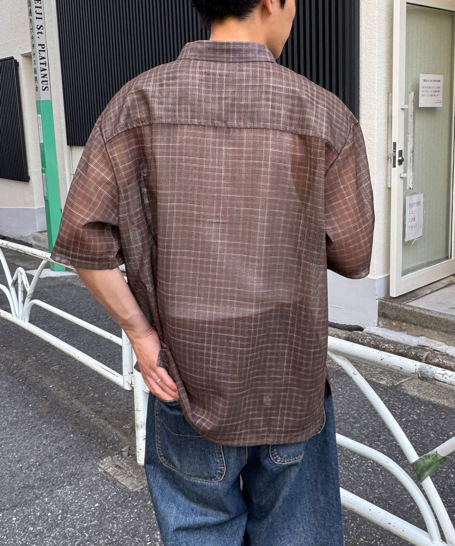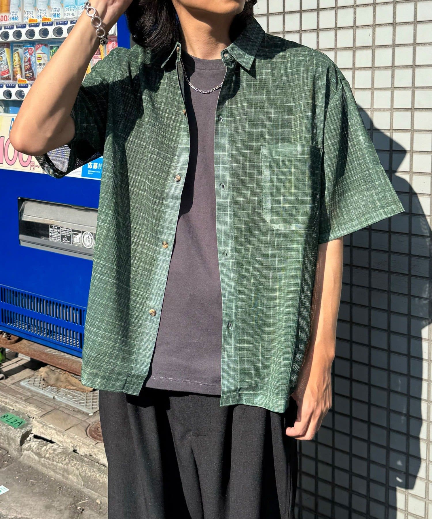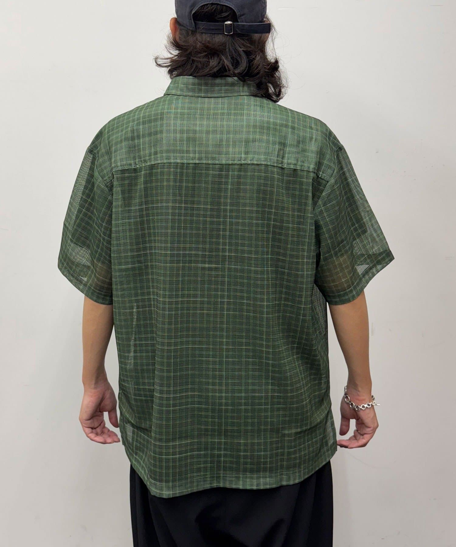 程よい透け感が今っぽい、メッシュ素材のショートスリーブシャツ。