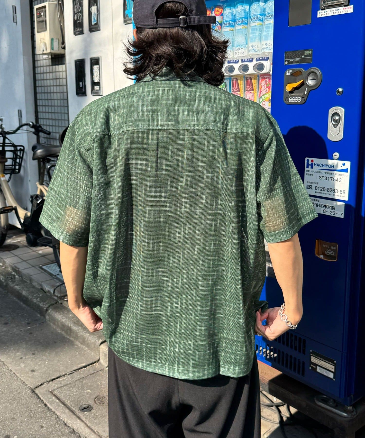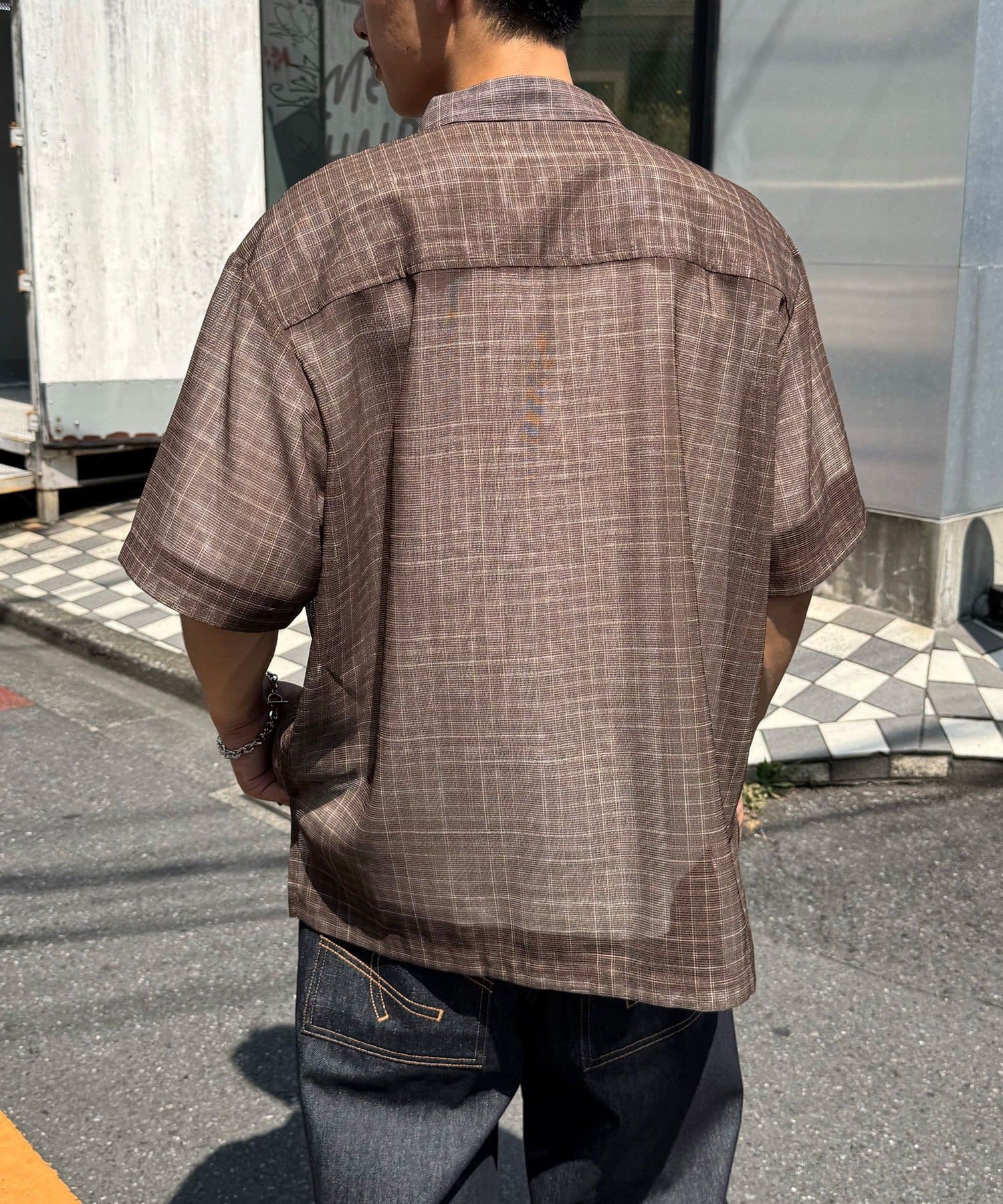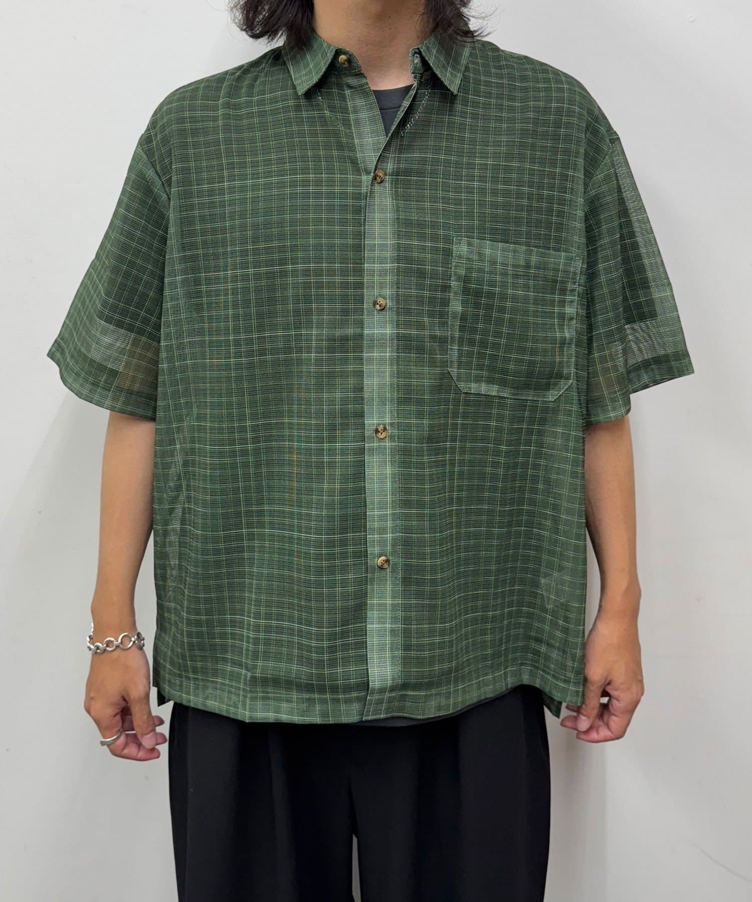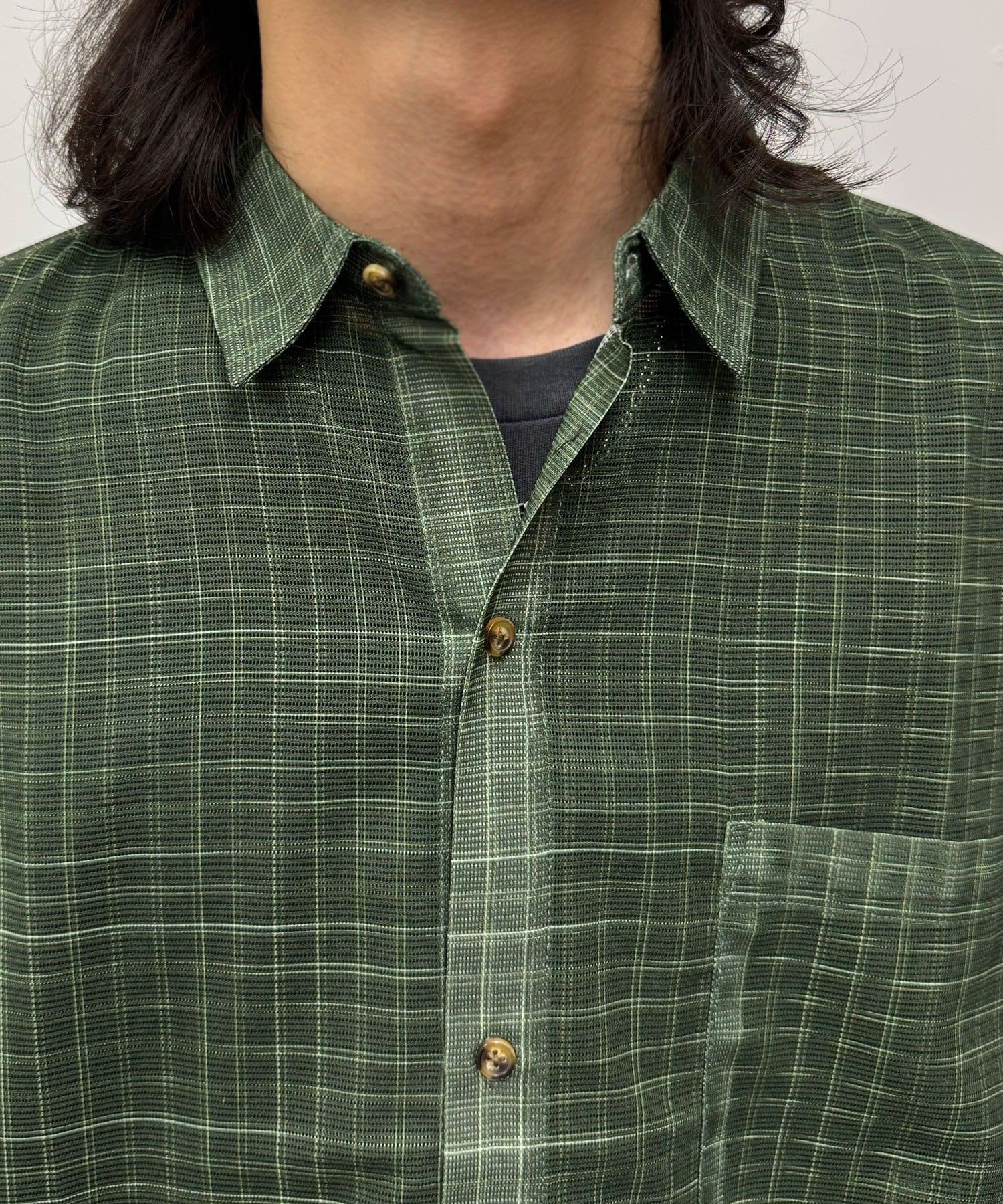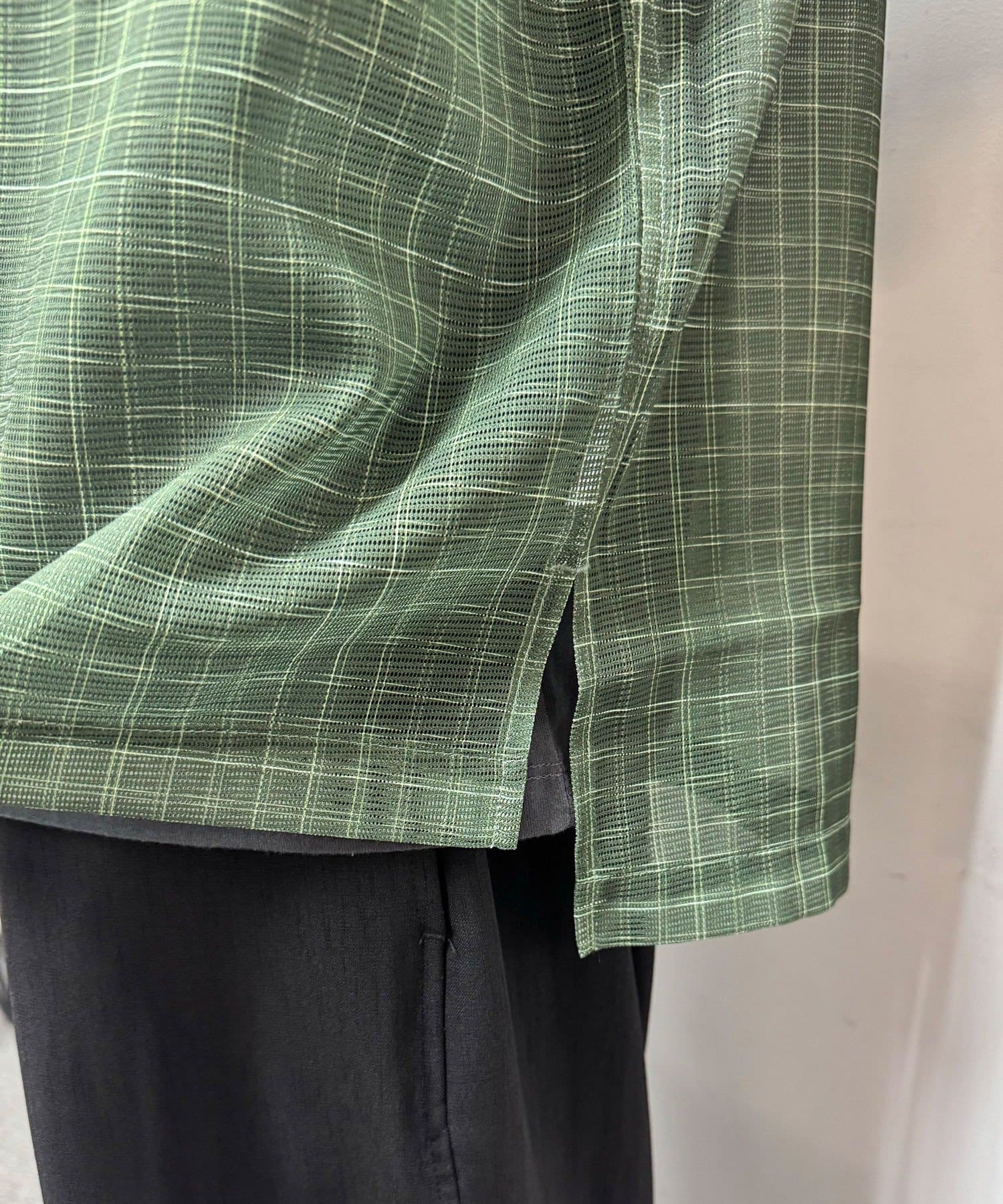 程よい透け感が今っぽい、メッシュ素材のショートスリーブシャツ。