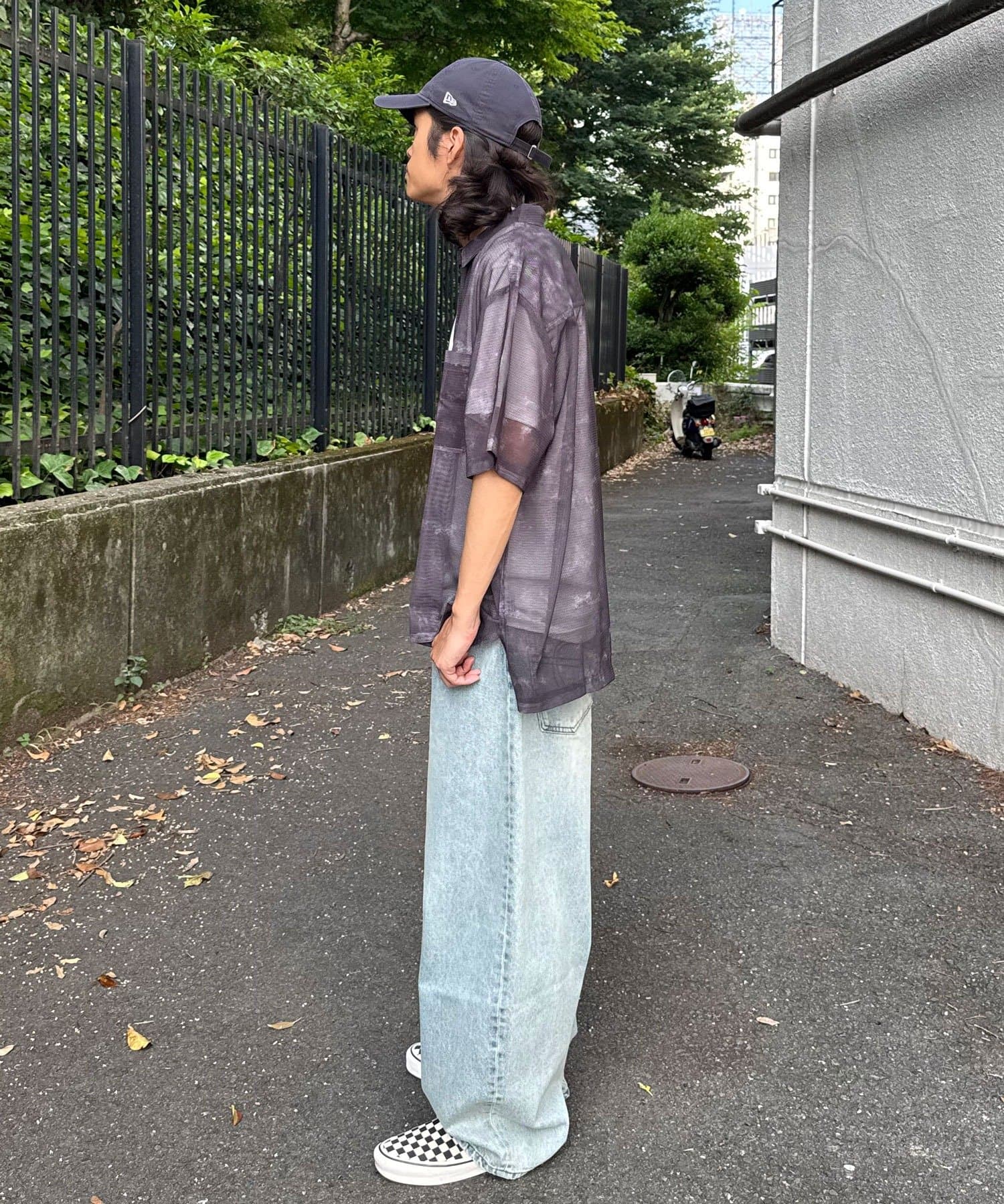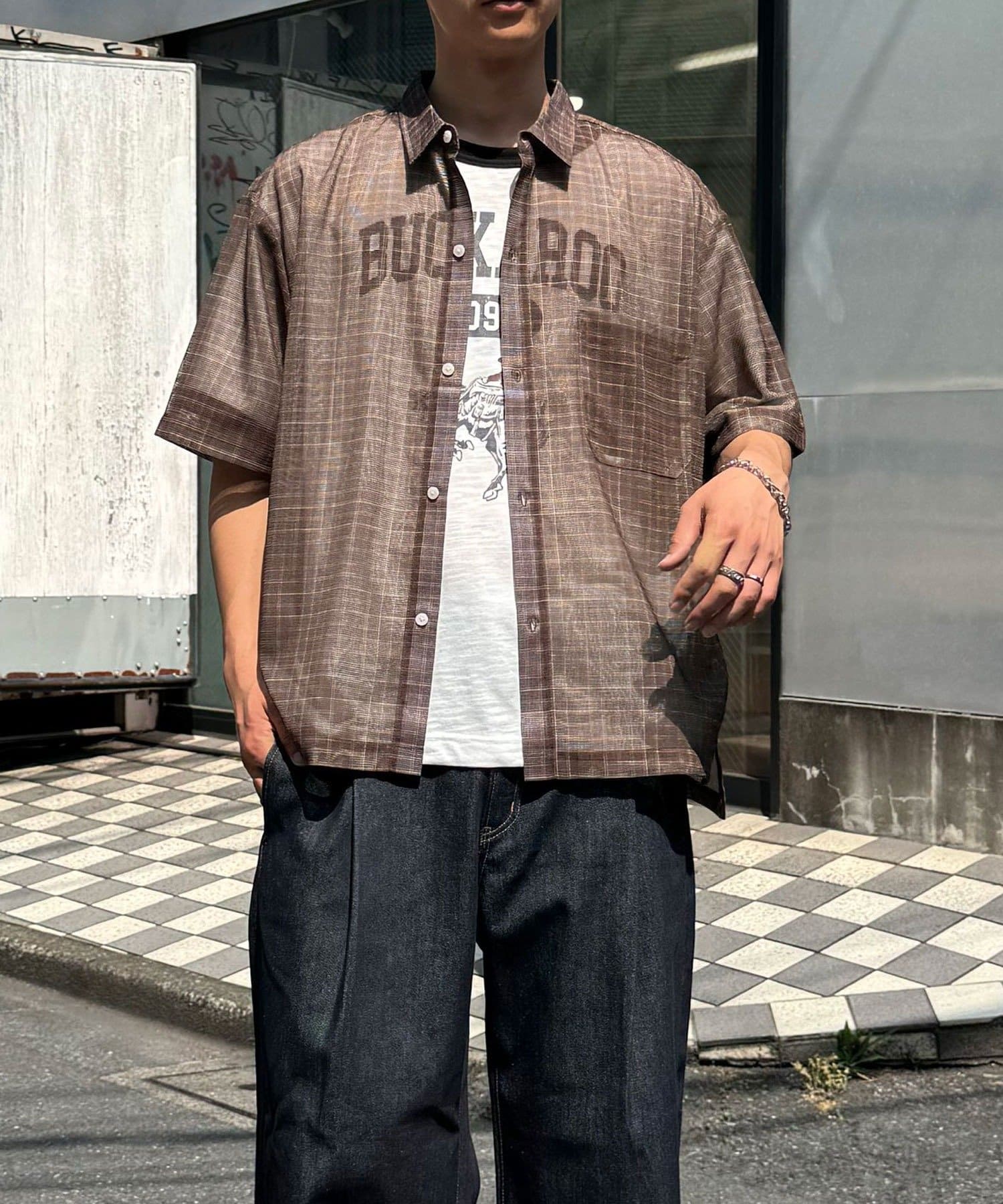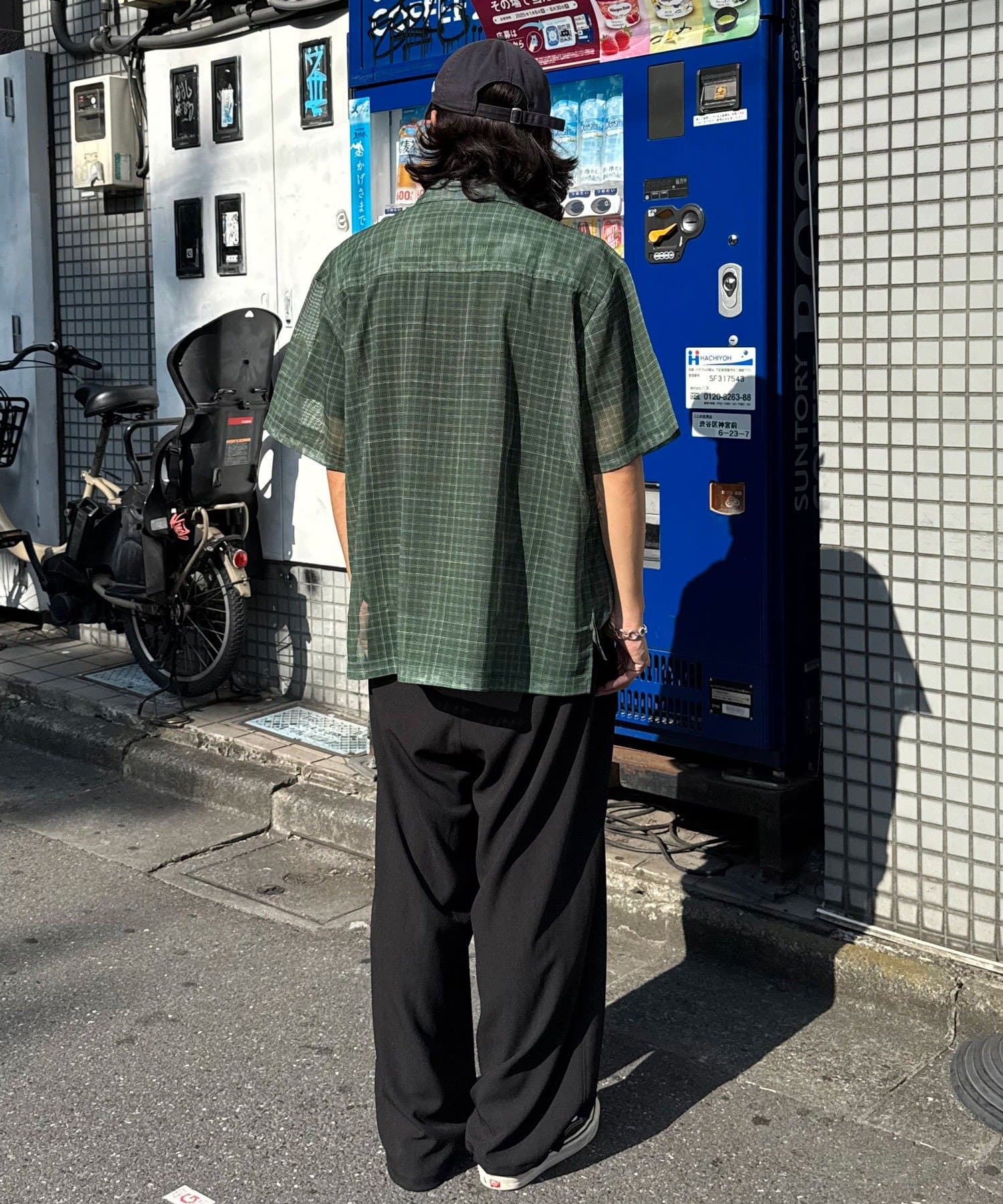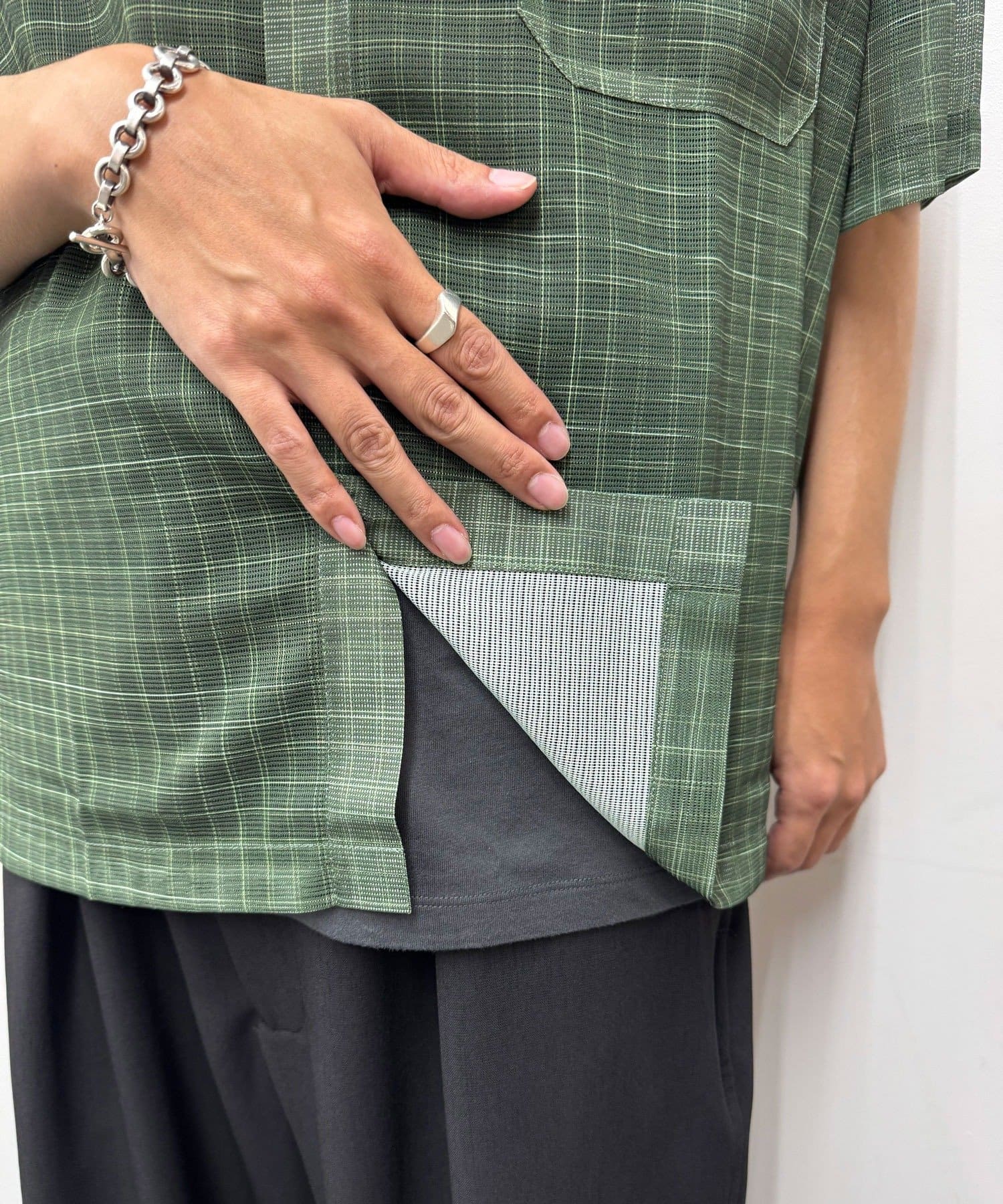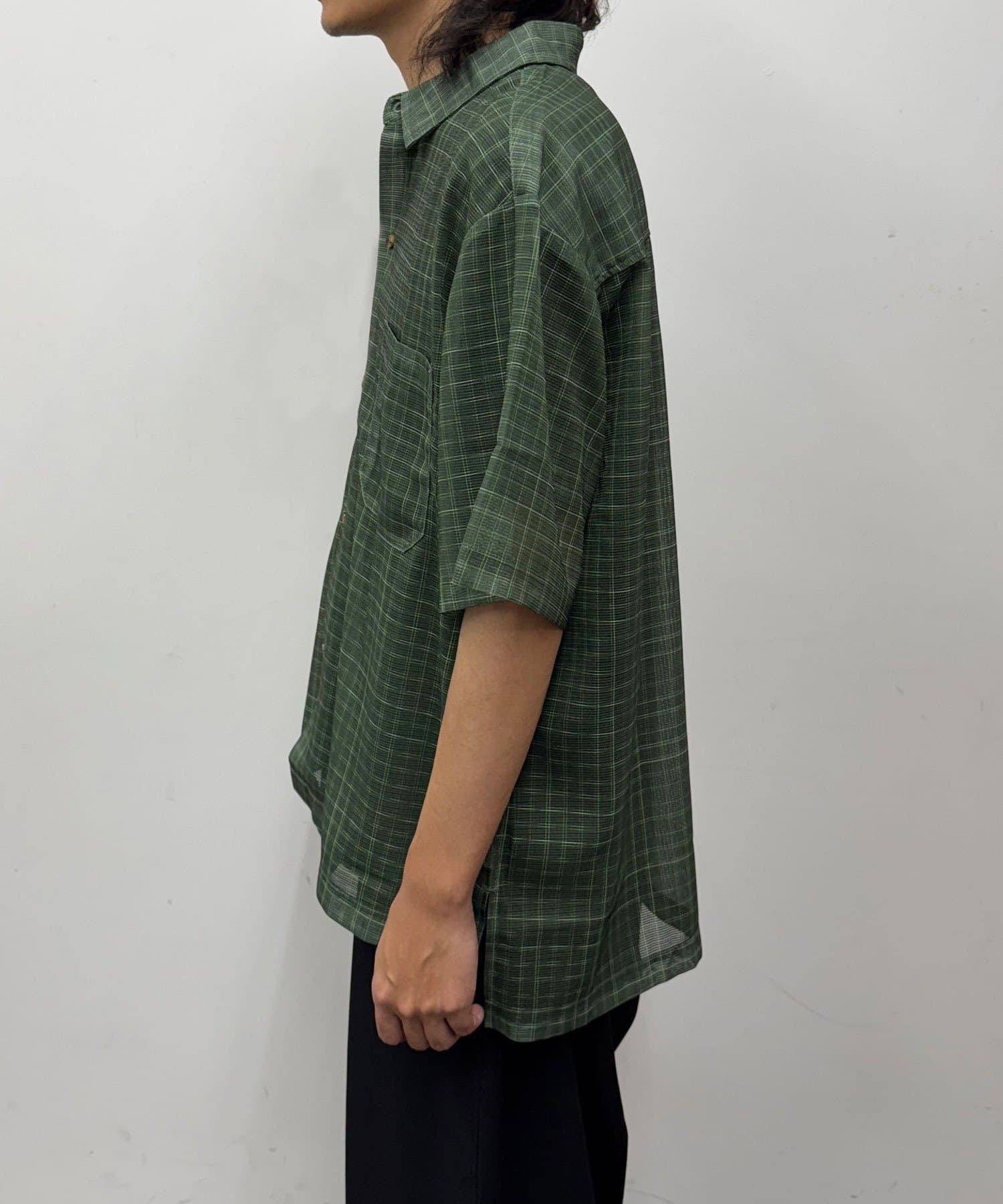 程よい透け感が今っぽい、メッシュ素材のショートスリーブシャツ。