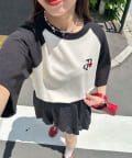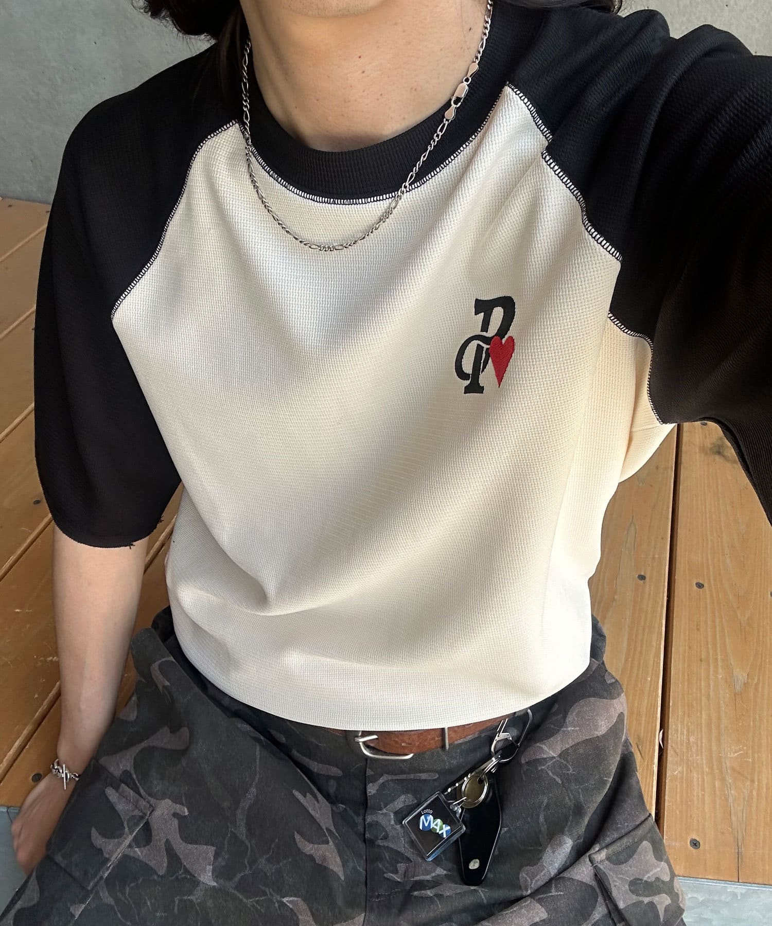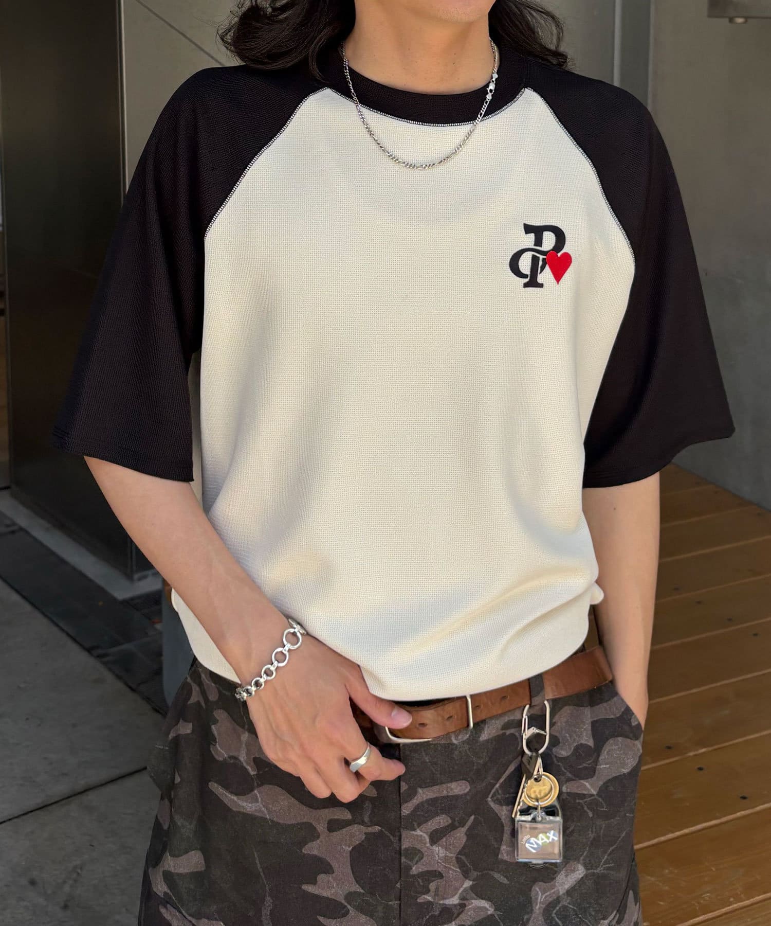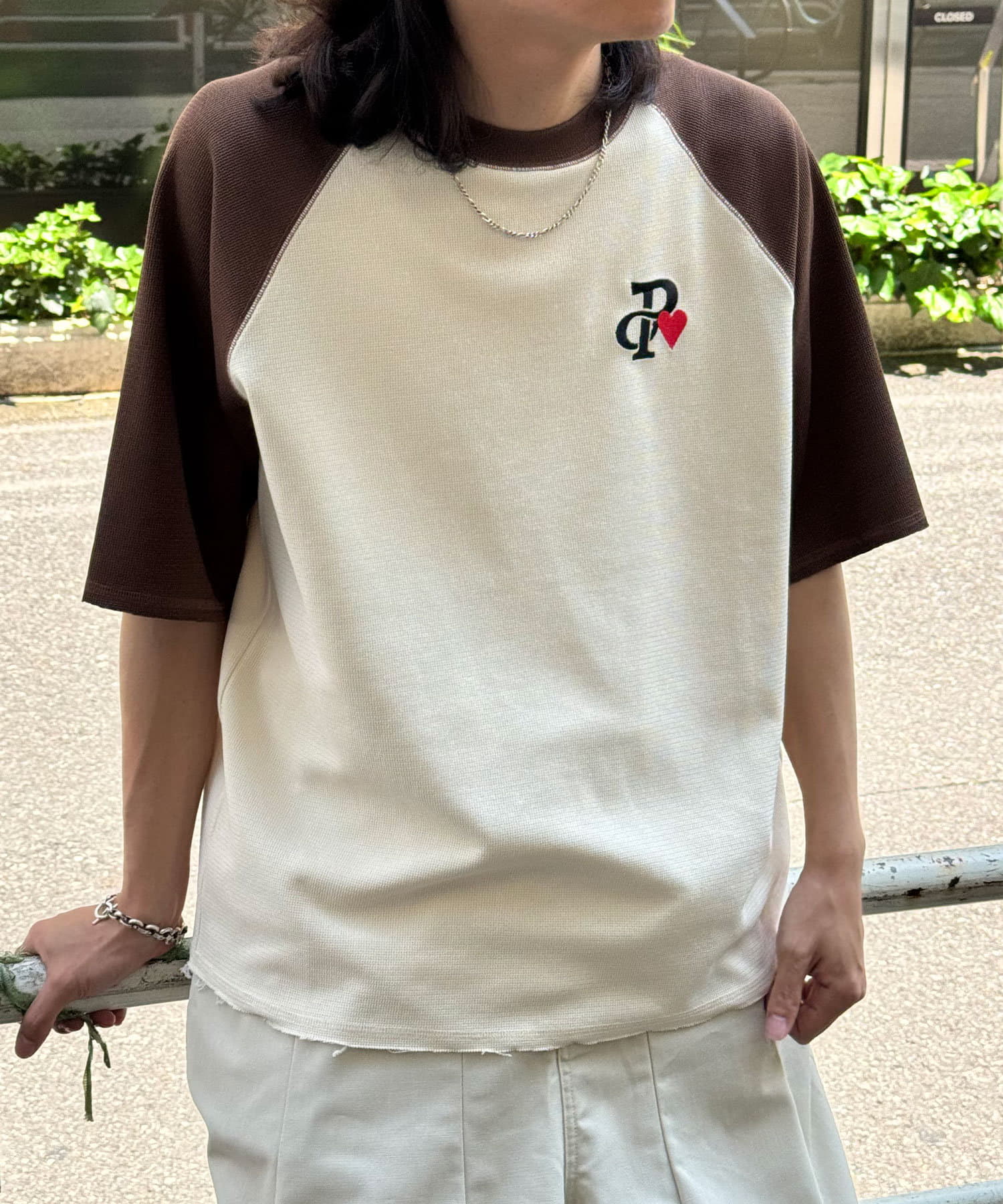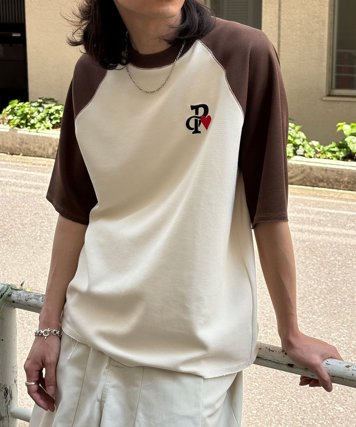 ワンポイント刺繍ラグランサーマル半袖Tシャツ