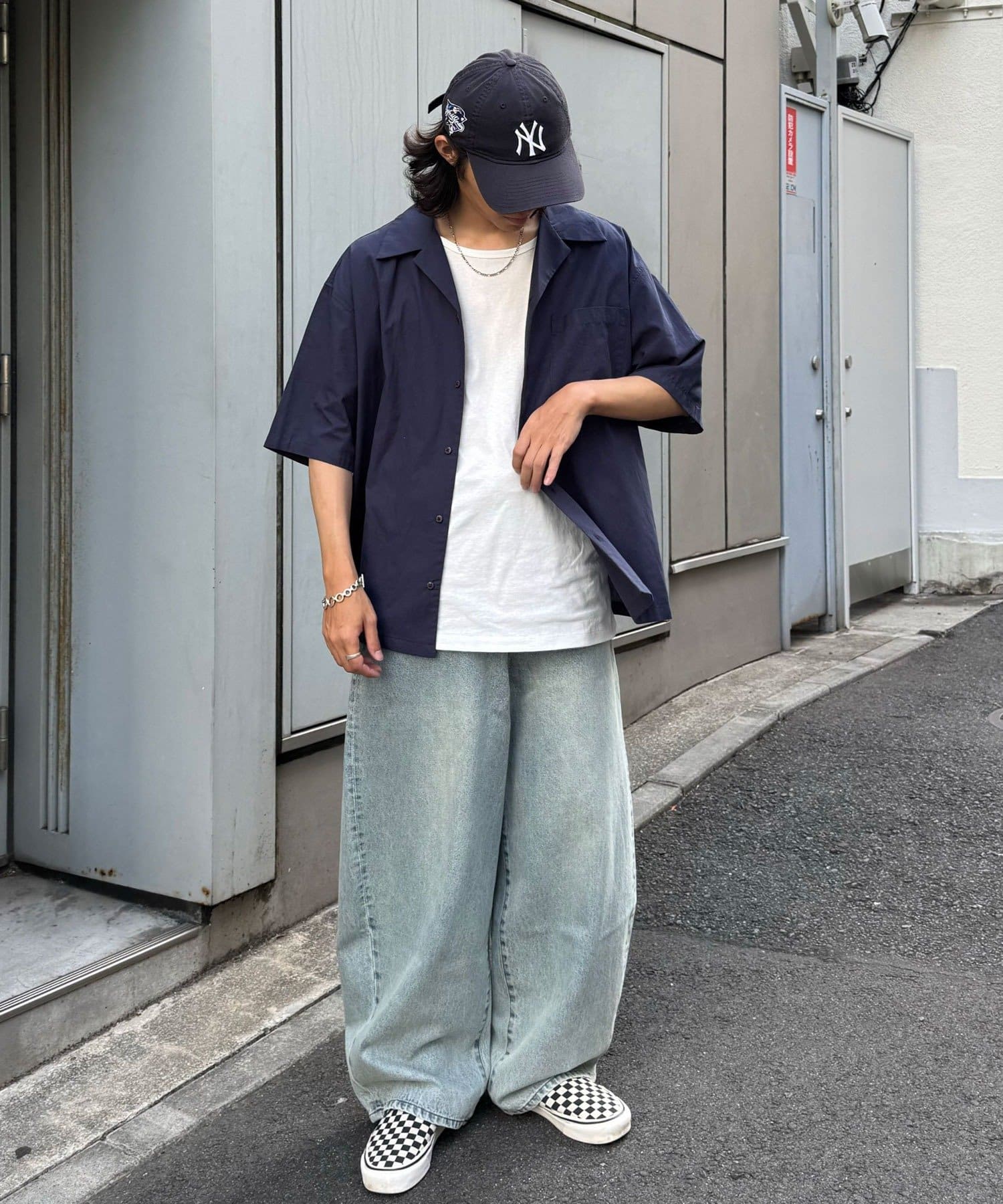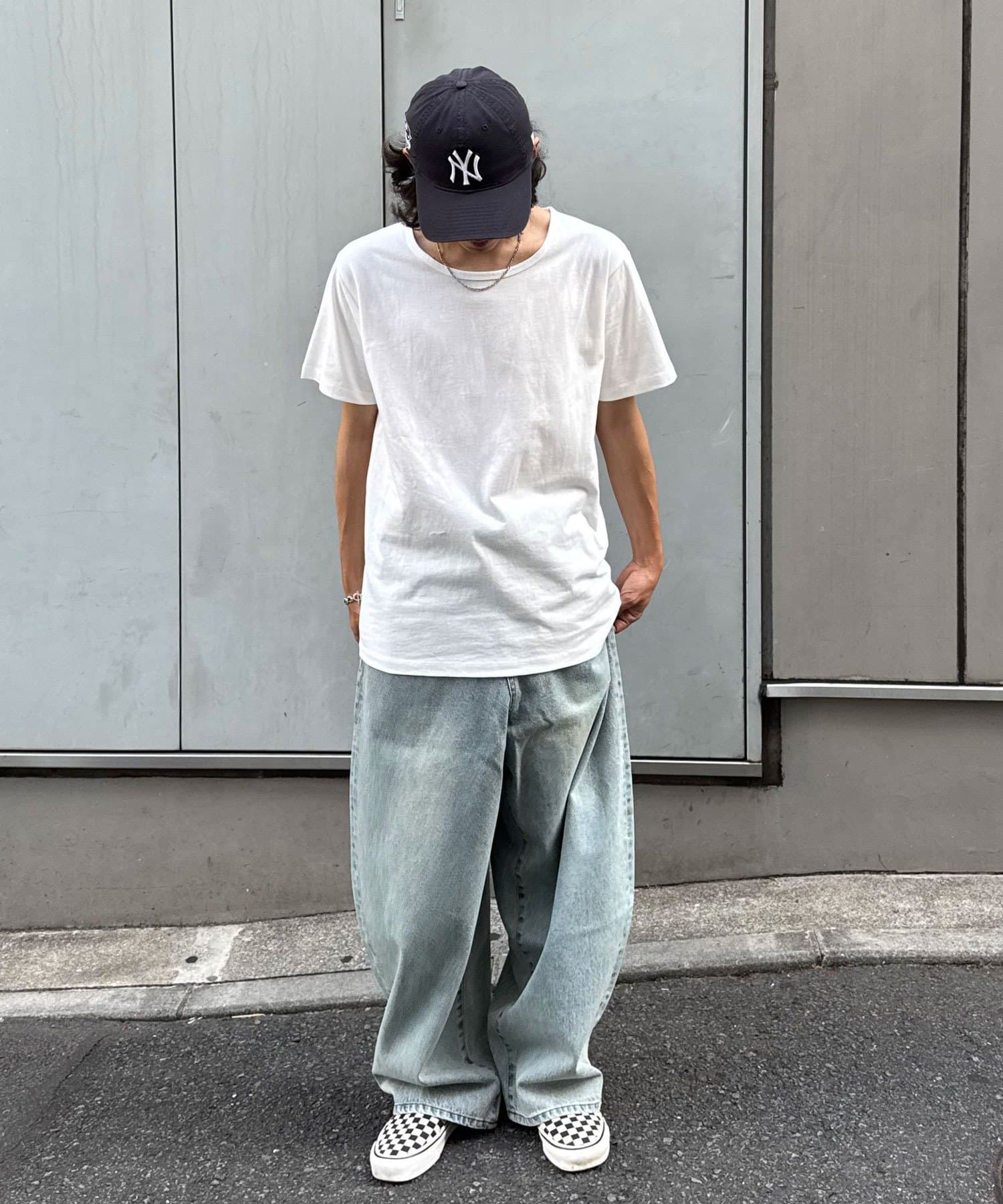 開襟シャツやオーバーサイズシャツのインナーに差し込んで、首元からUネックをちら見せするだけで抜け感のあるレイヤードが完成。