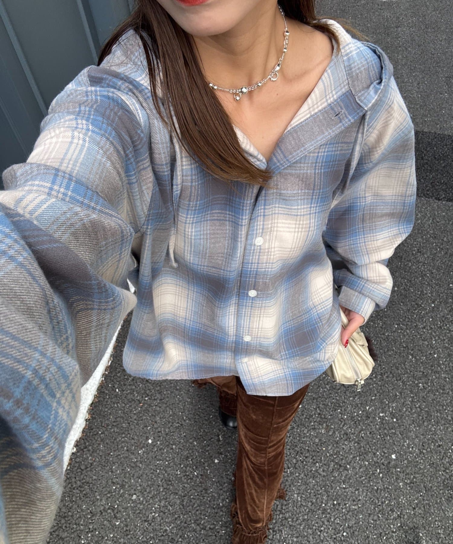 ゆるっと羽織れるチェックシャツパーカー