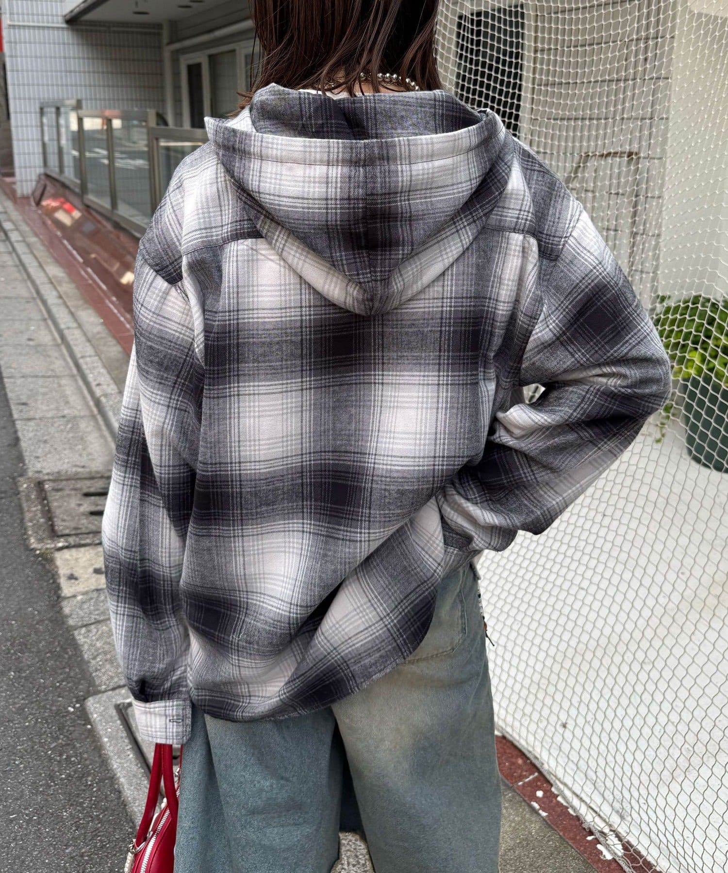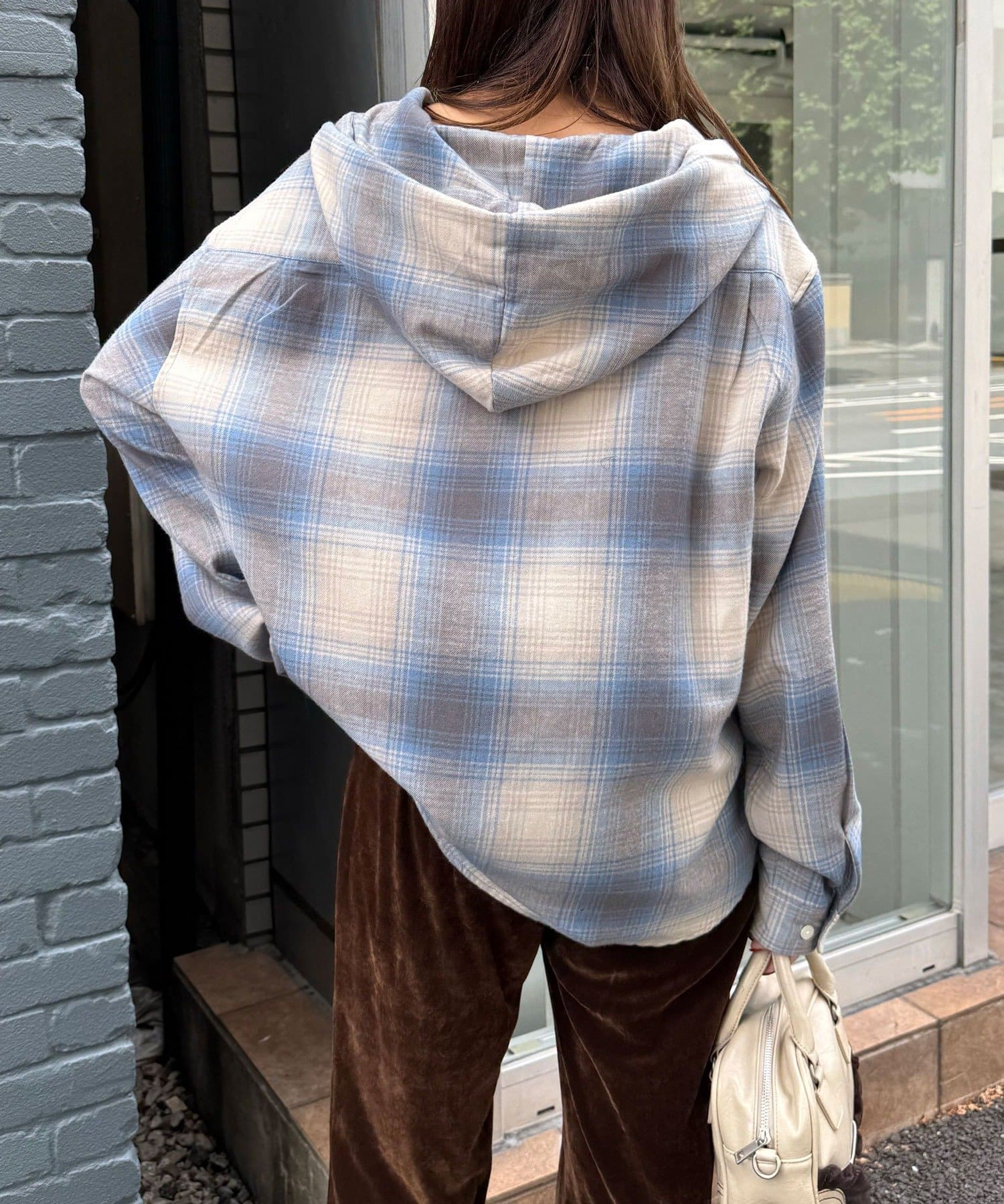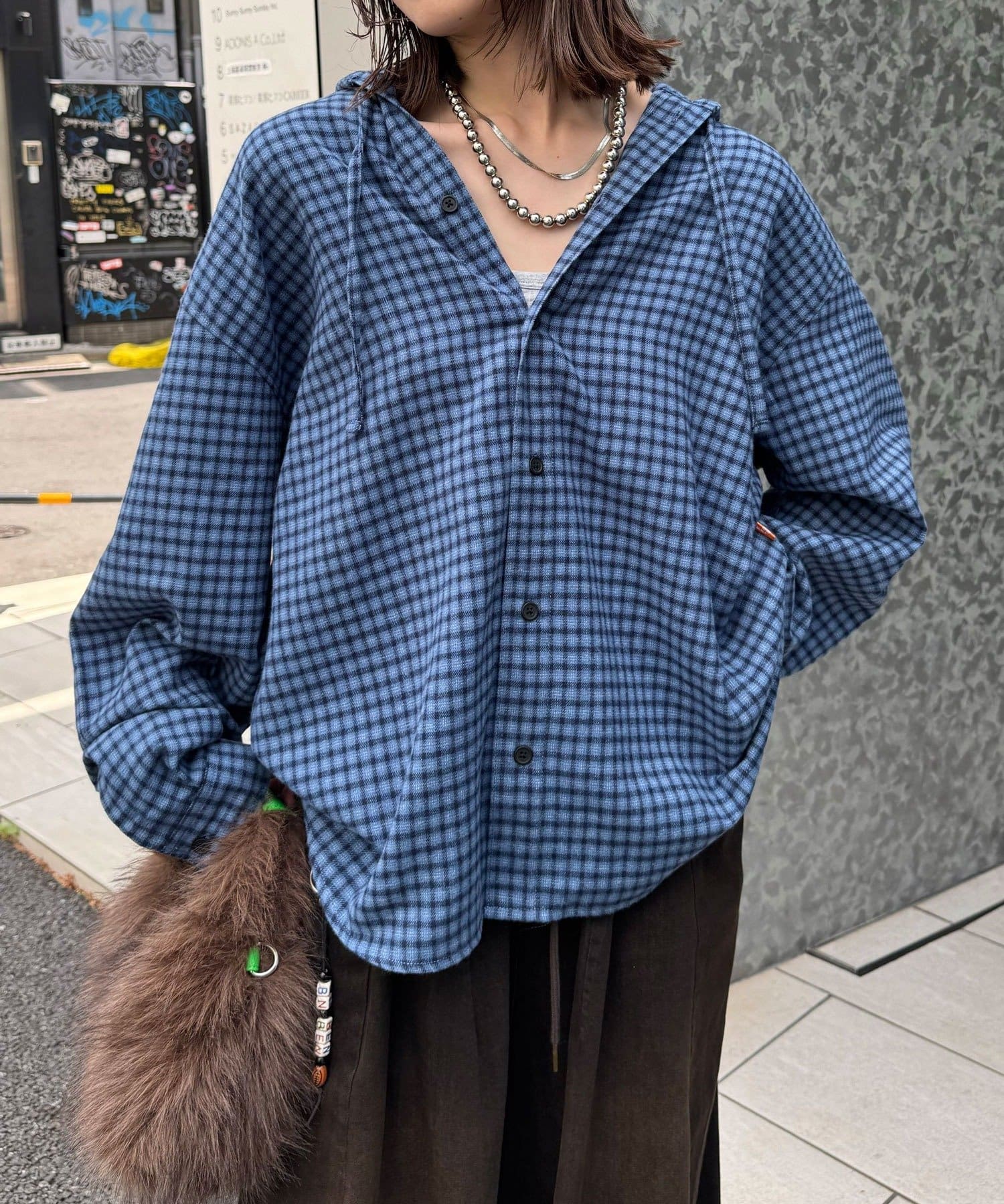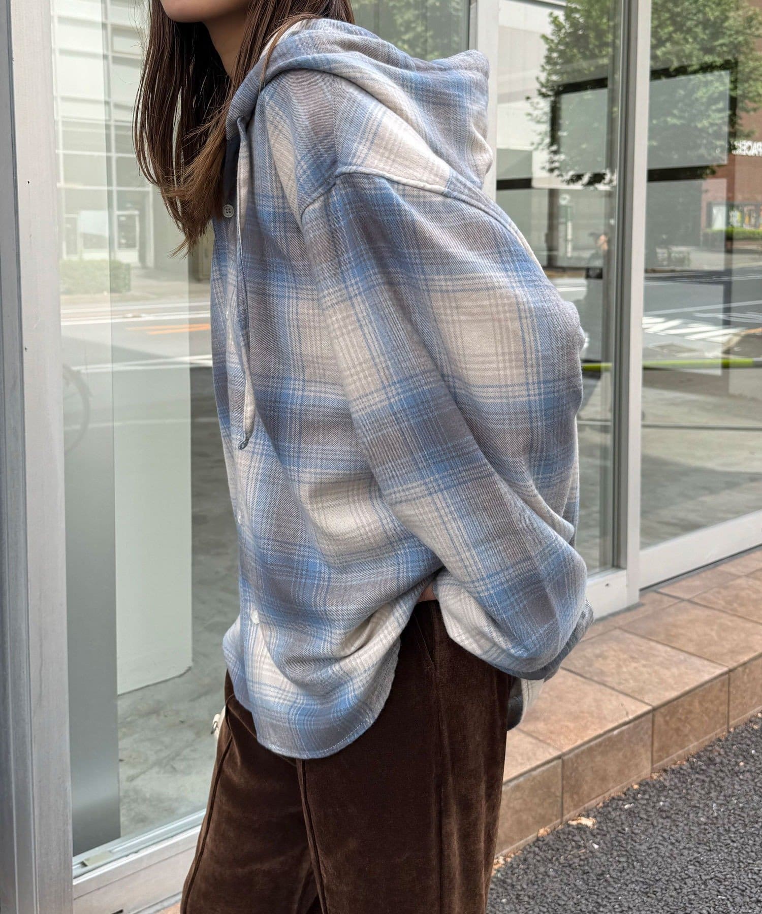 シャツ感覚で羽織れる軽やかな生地感と、フード付きのリラックスデザインが魅力です。