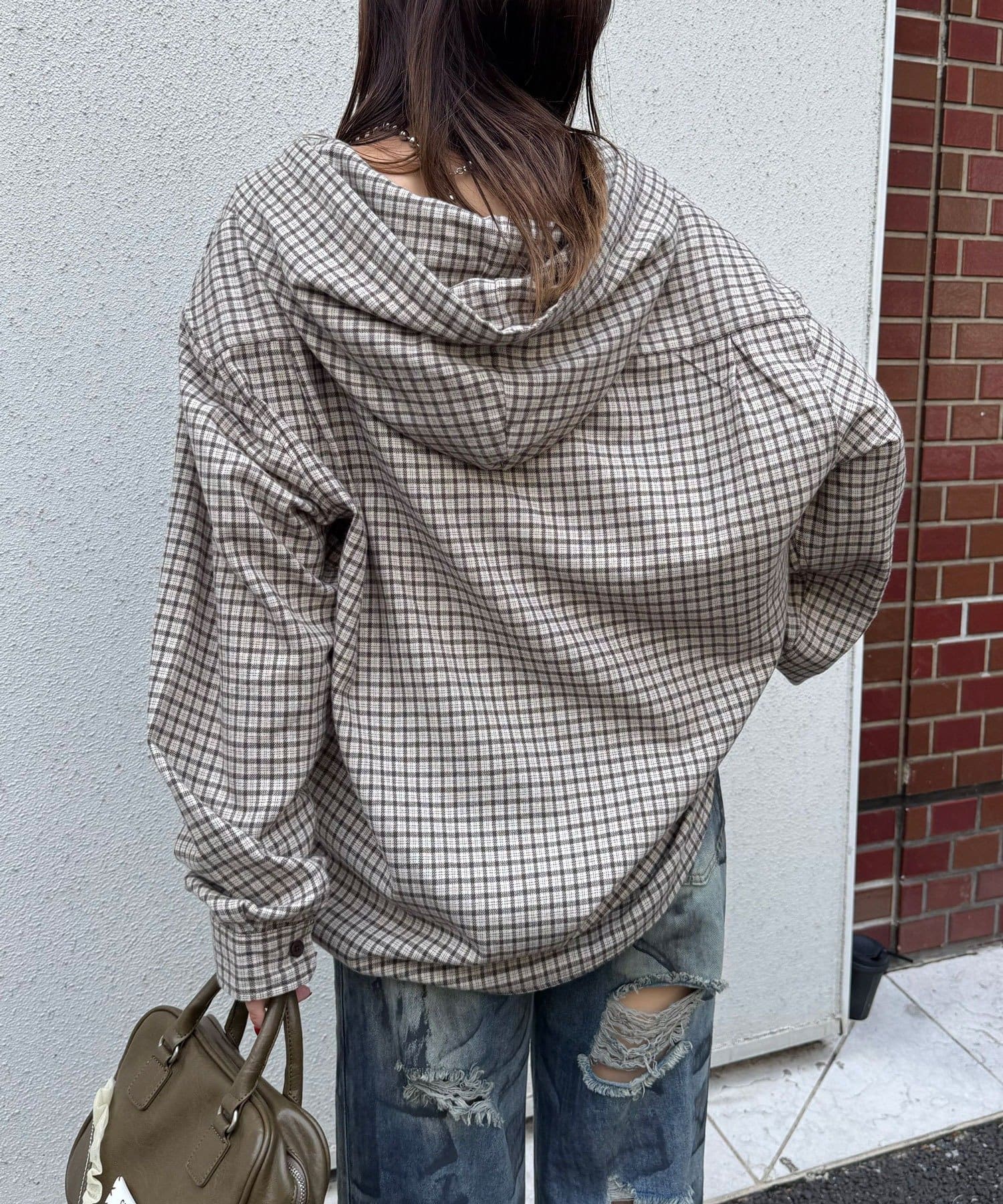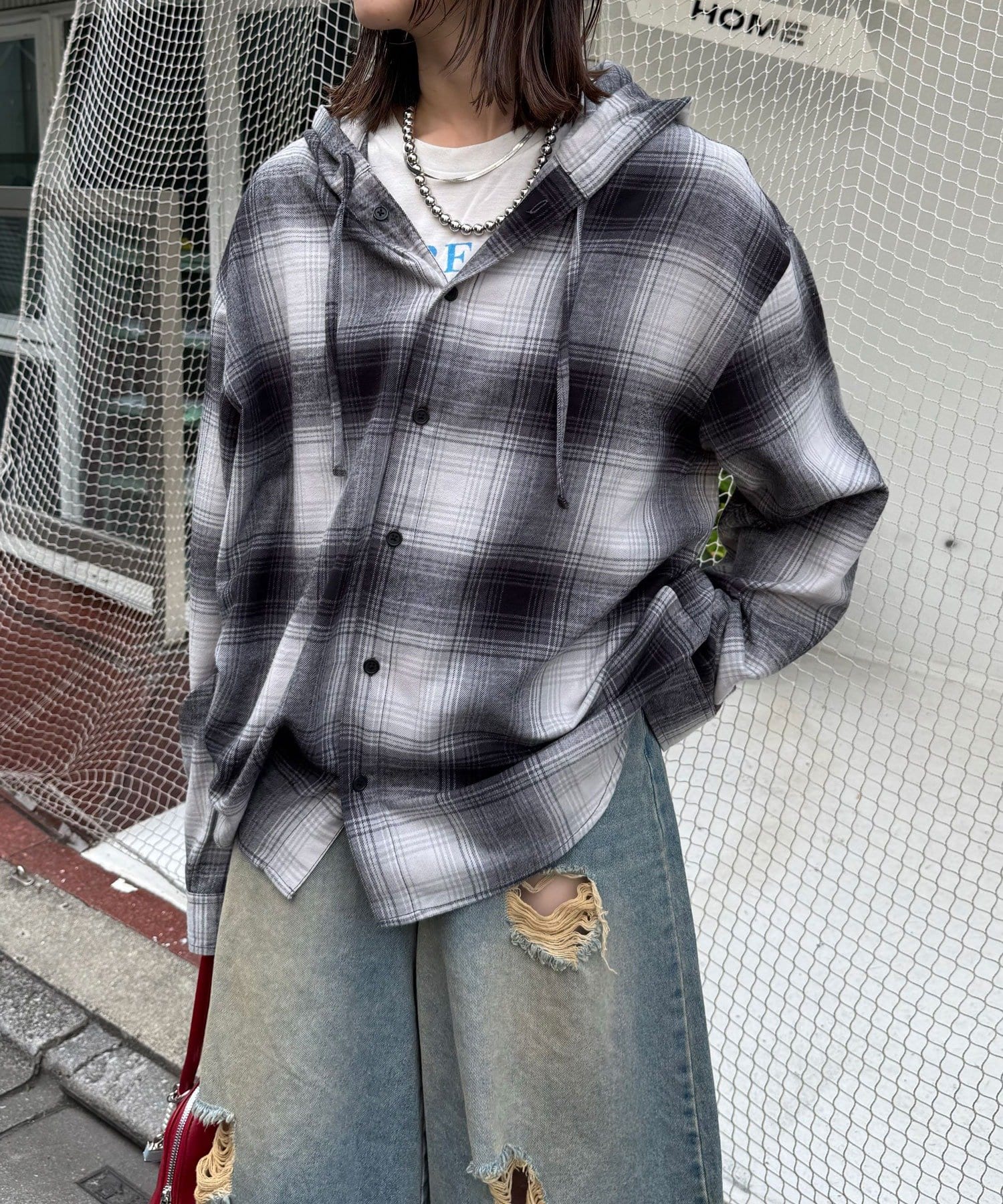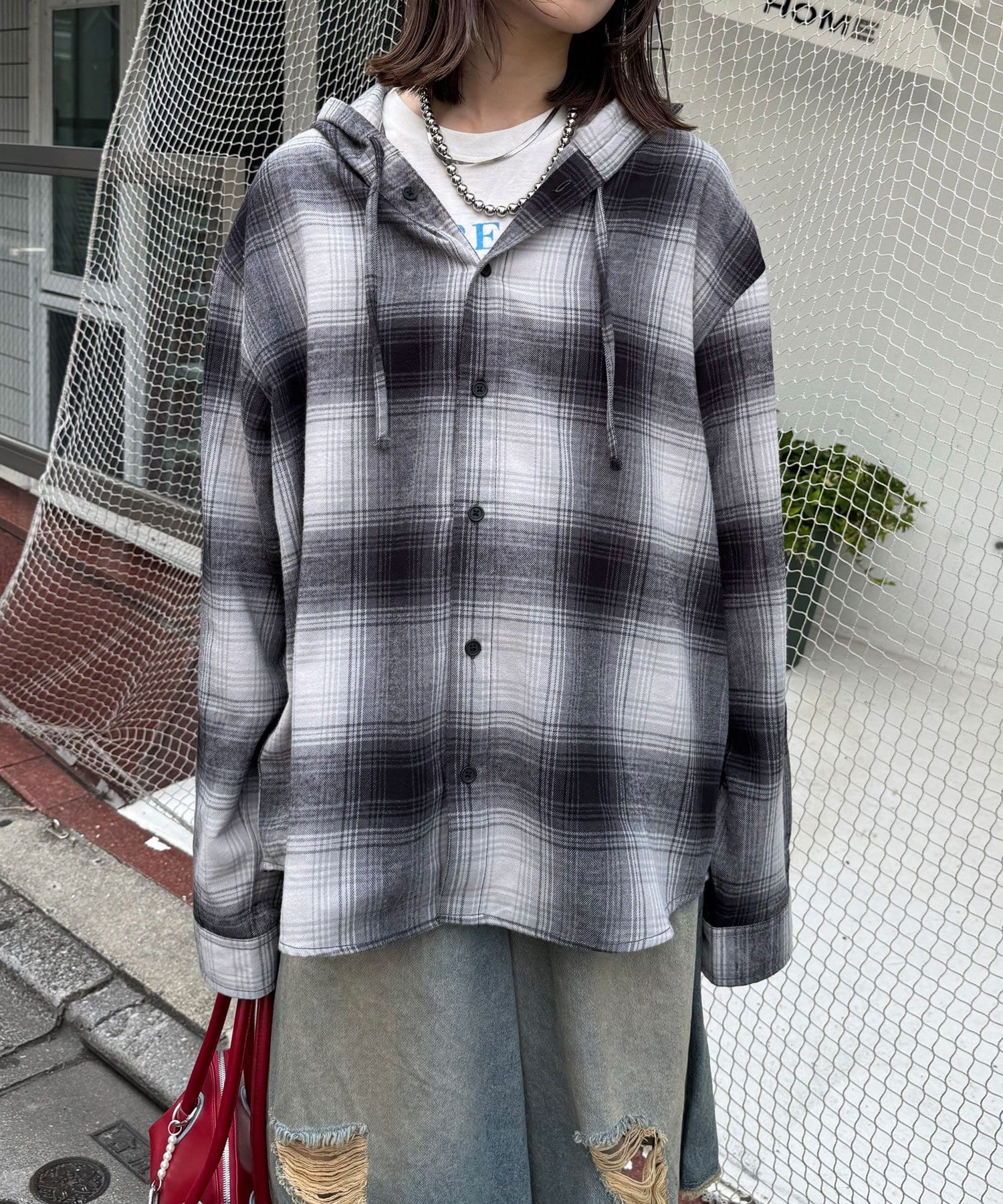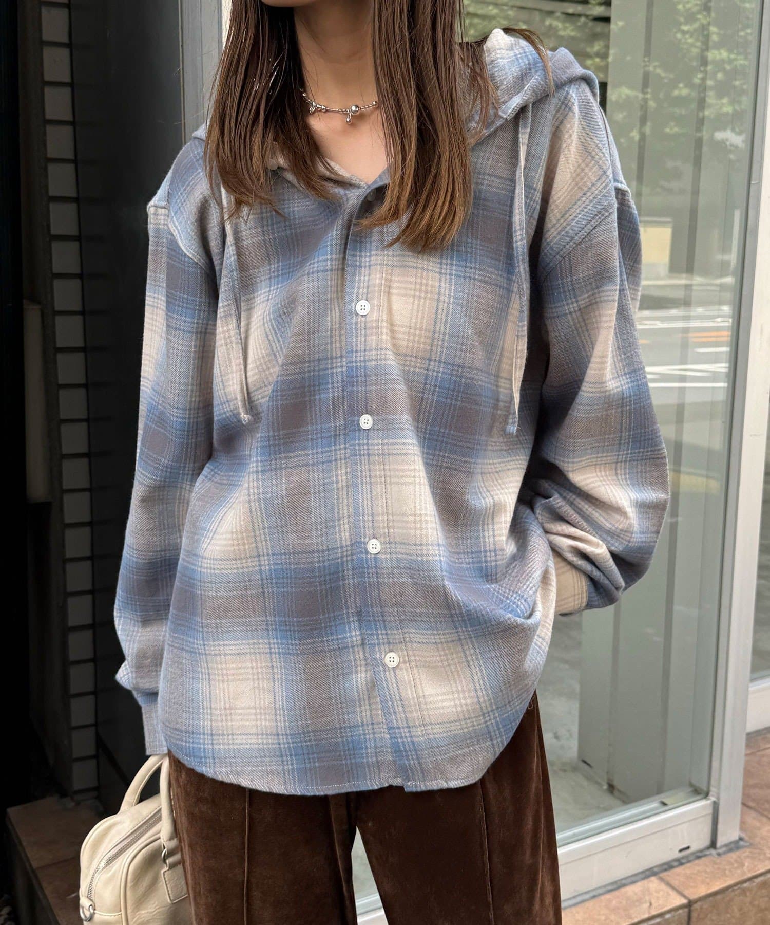 シャツ感覚で羽織れる軽やかな生地感と、フード付きのリラックスデザインが魅力です。