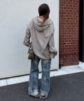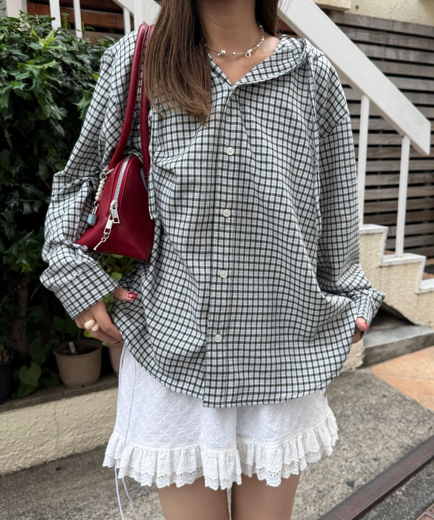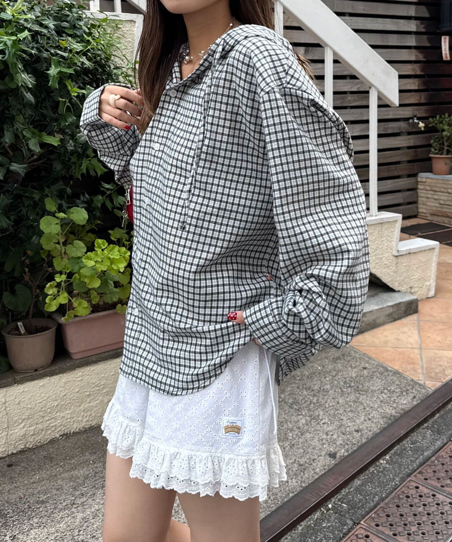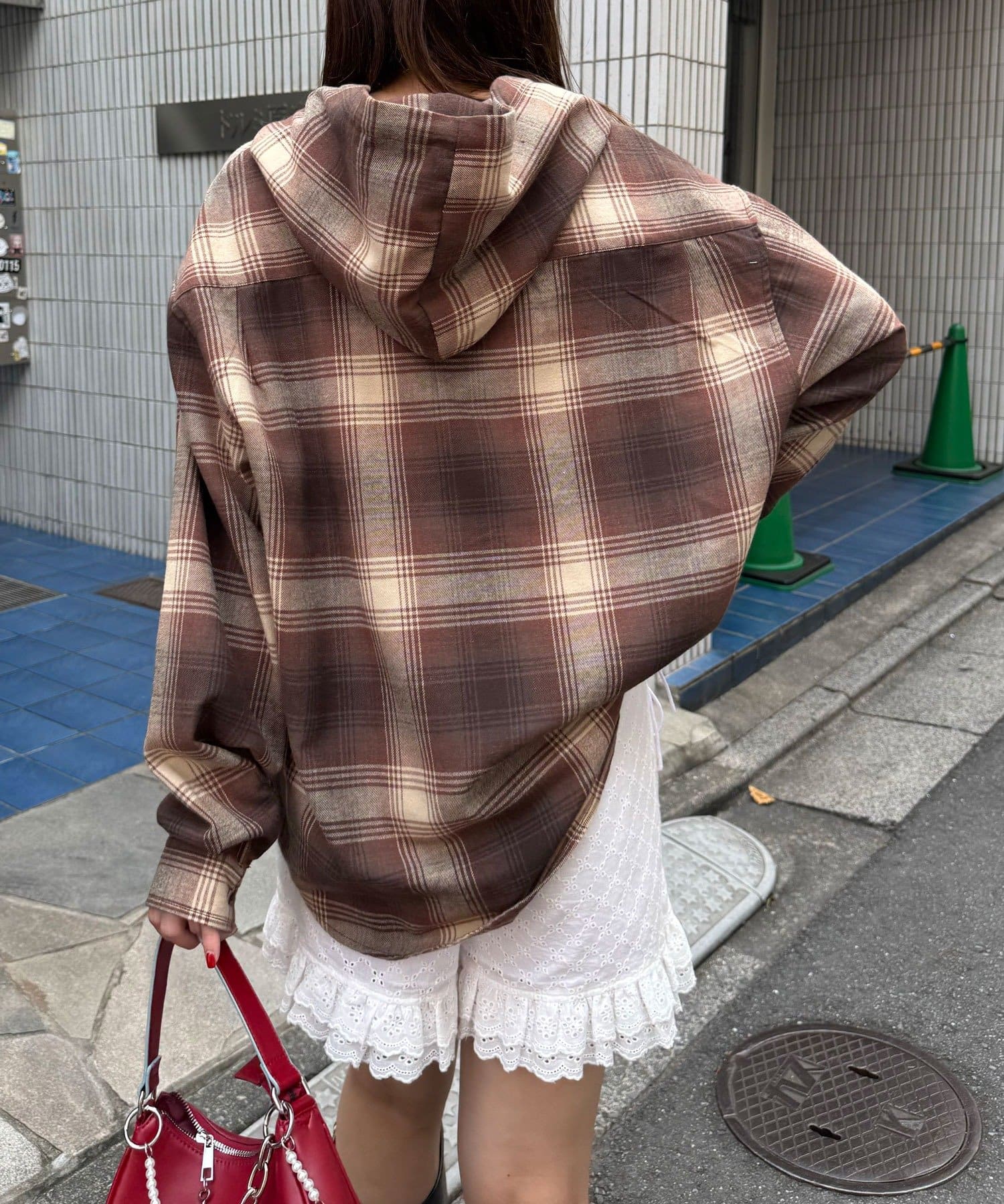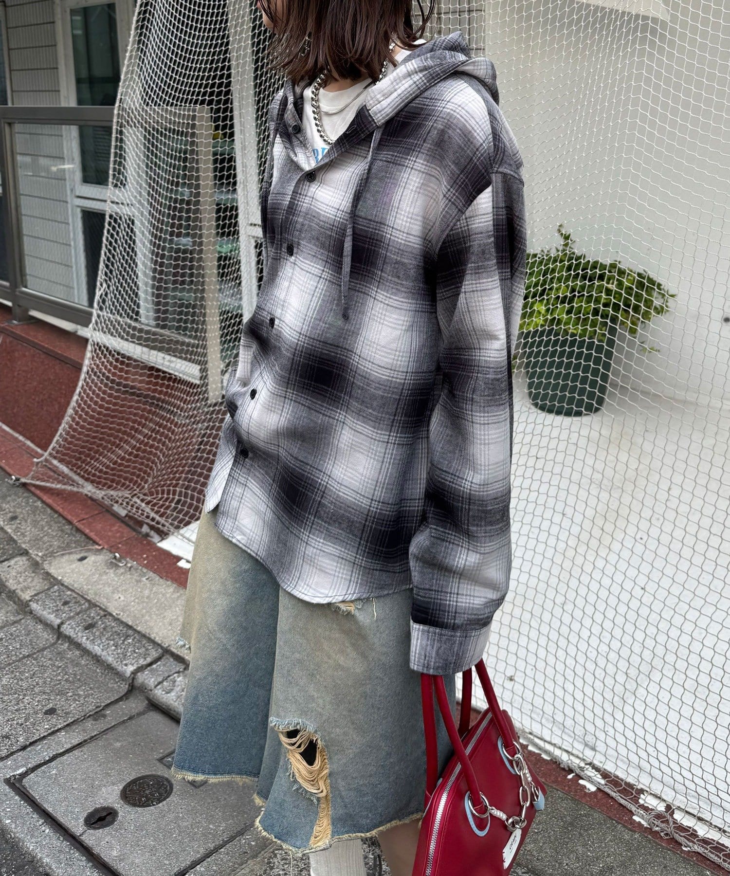 シャツ感覚で羽織れる軽やかな生地感と、フード付きのリラックスデザインが魅力です。
