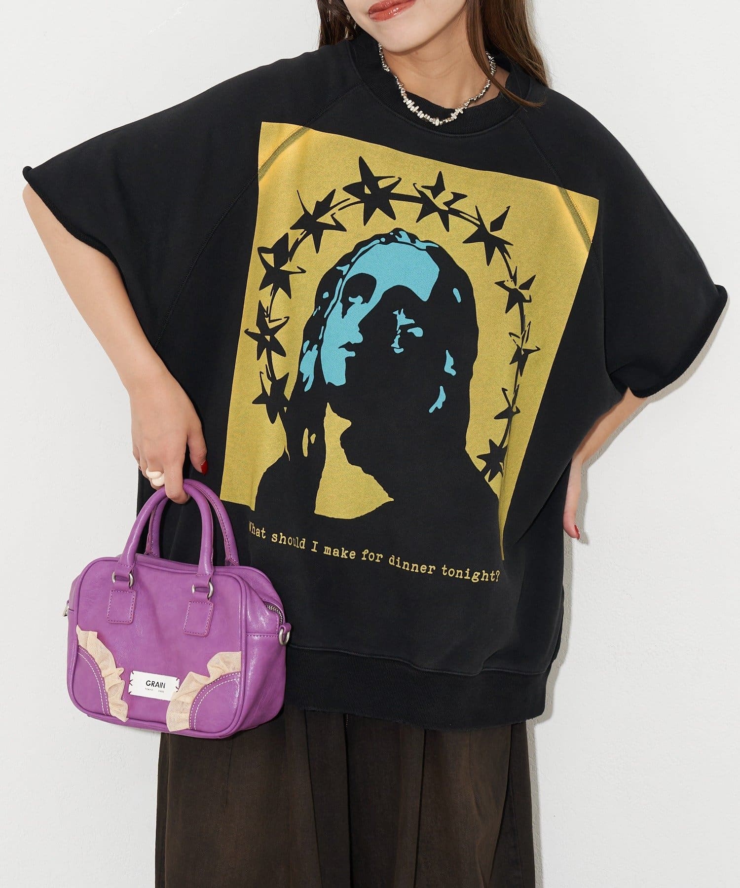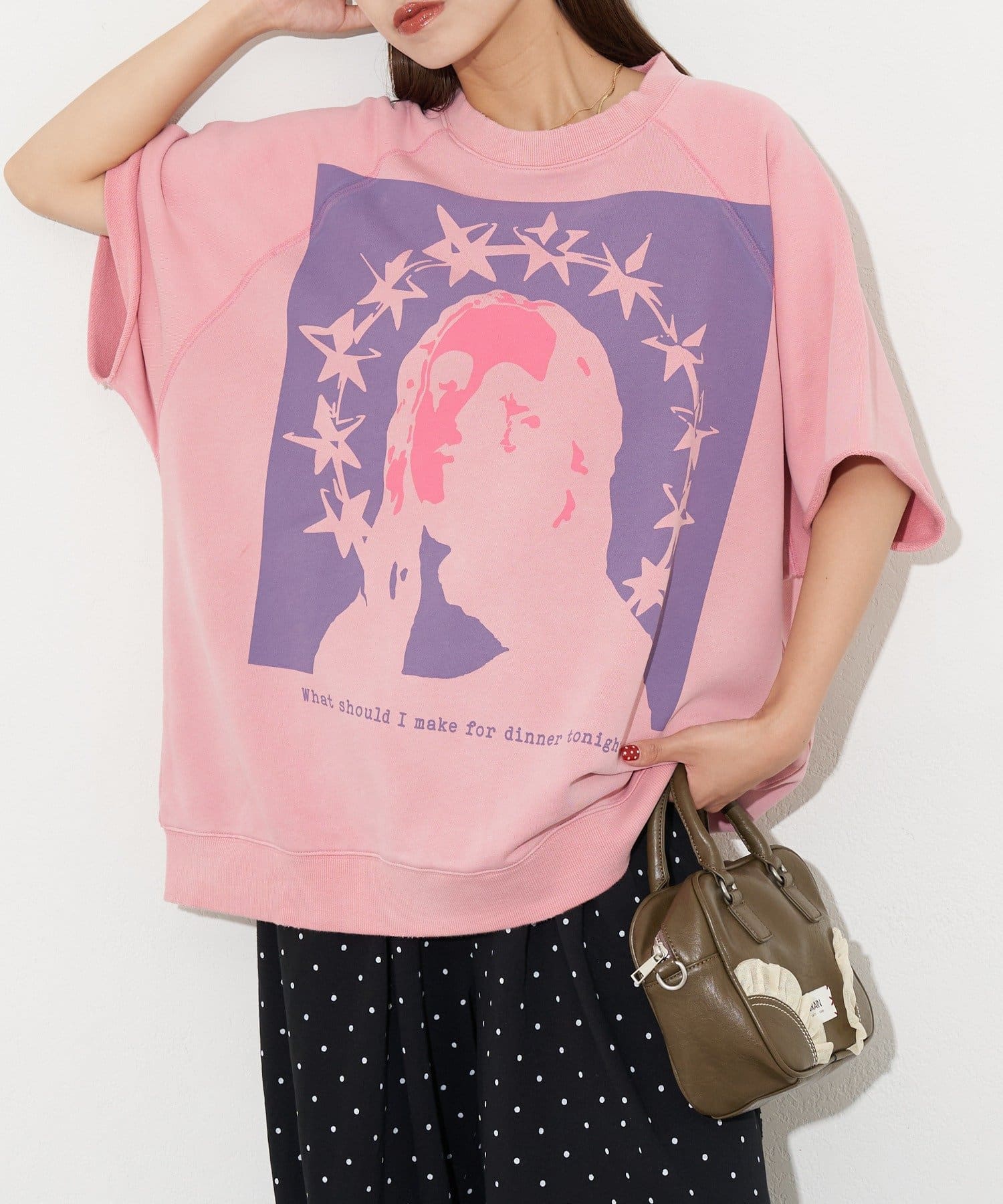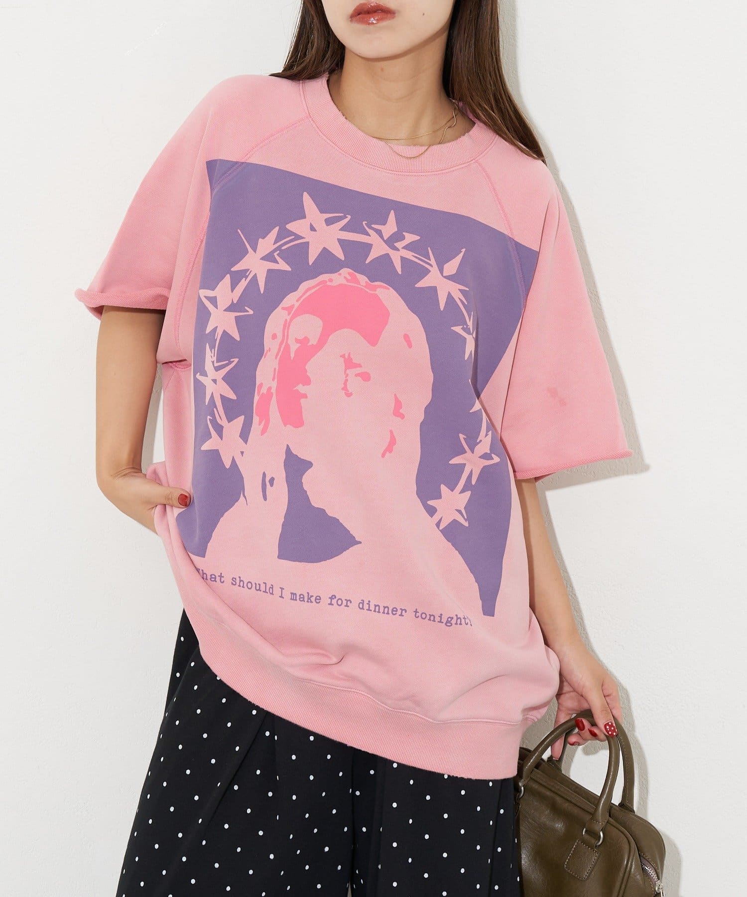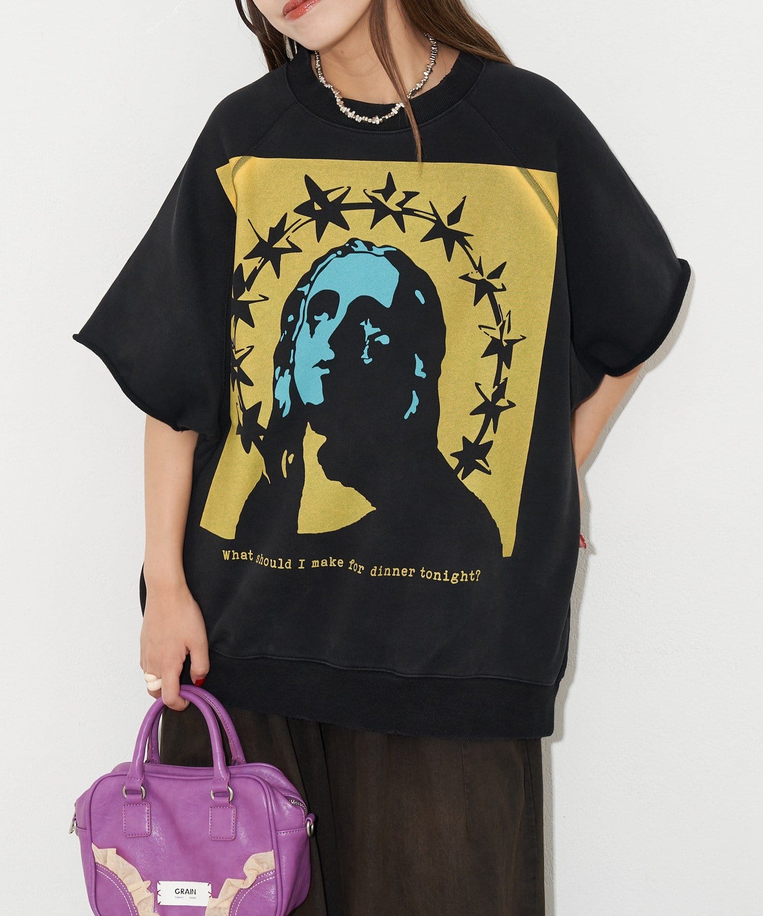 ダメージ加工×プリントデザインで、1枚で着映えするショートスリーブスウェット。