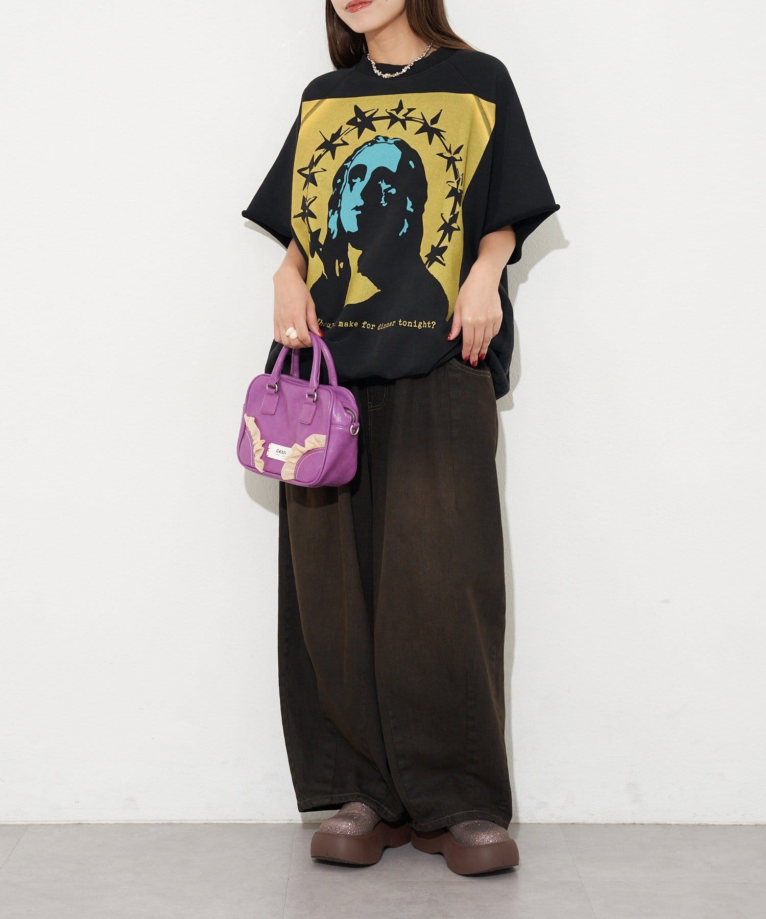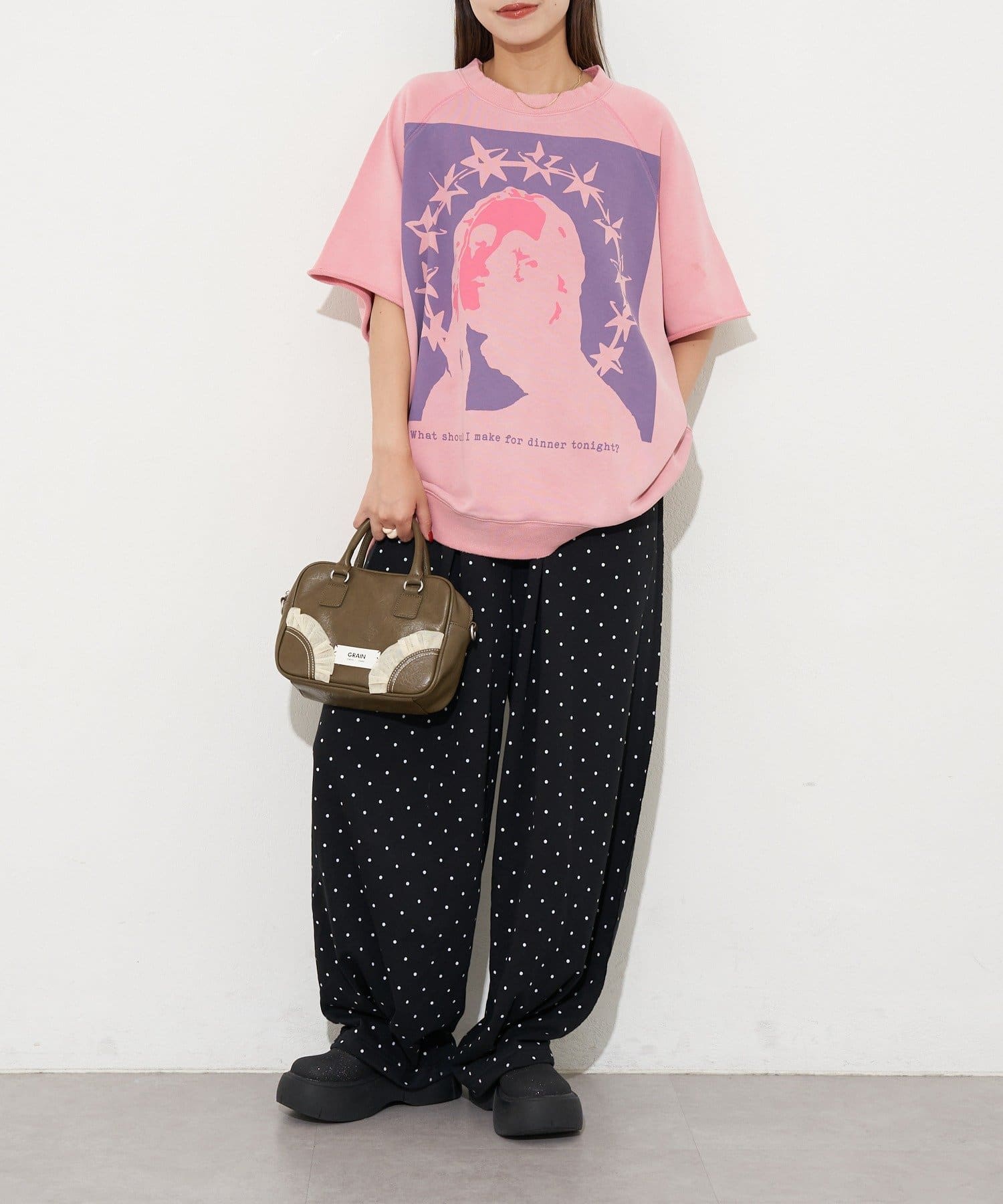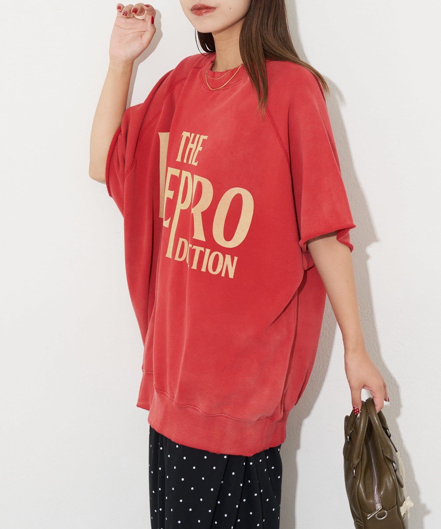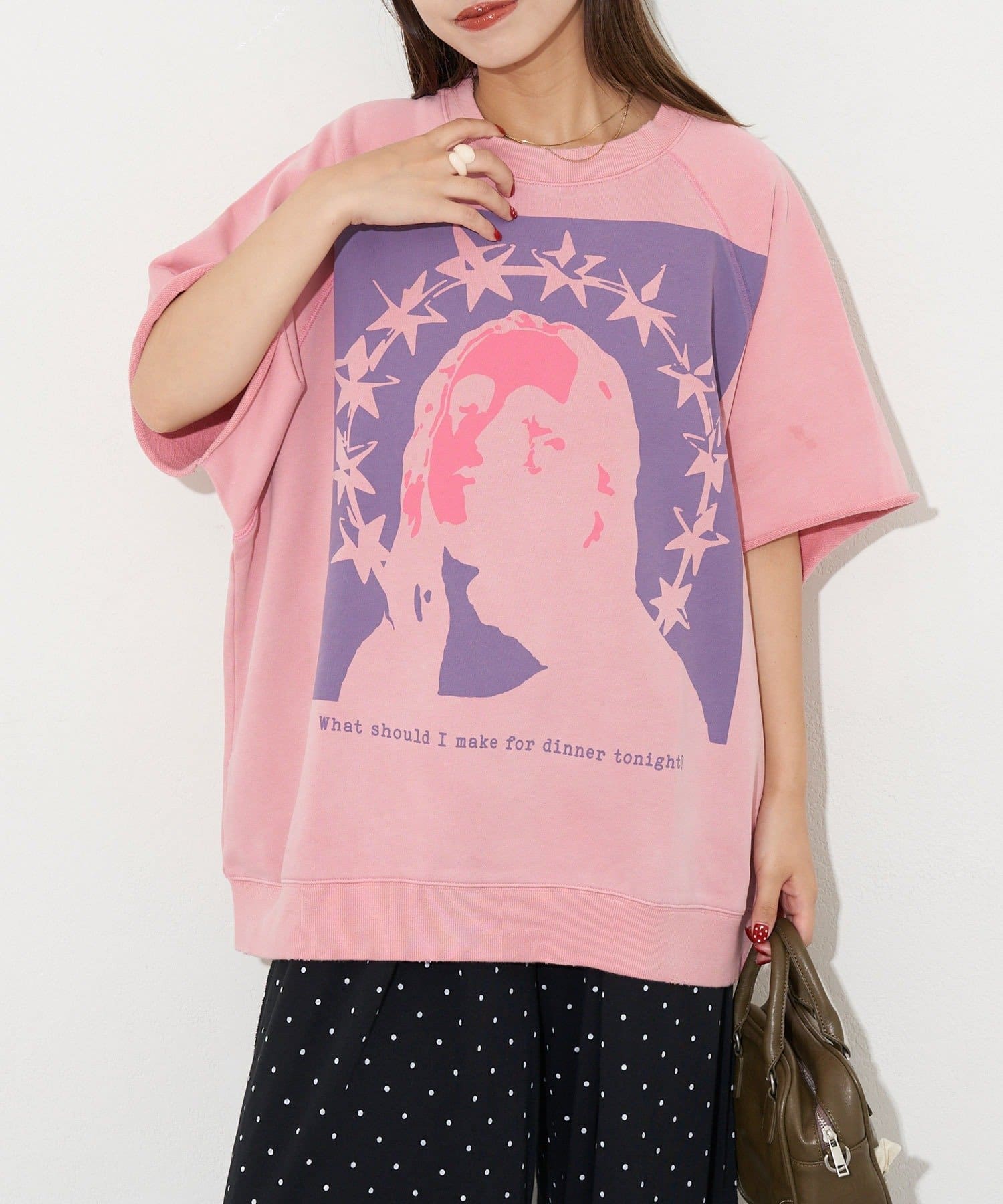 ダメージ加工×プリントデザインで、1枚で着映えするショートスリーブスウェット。