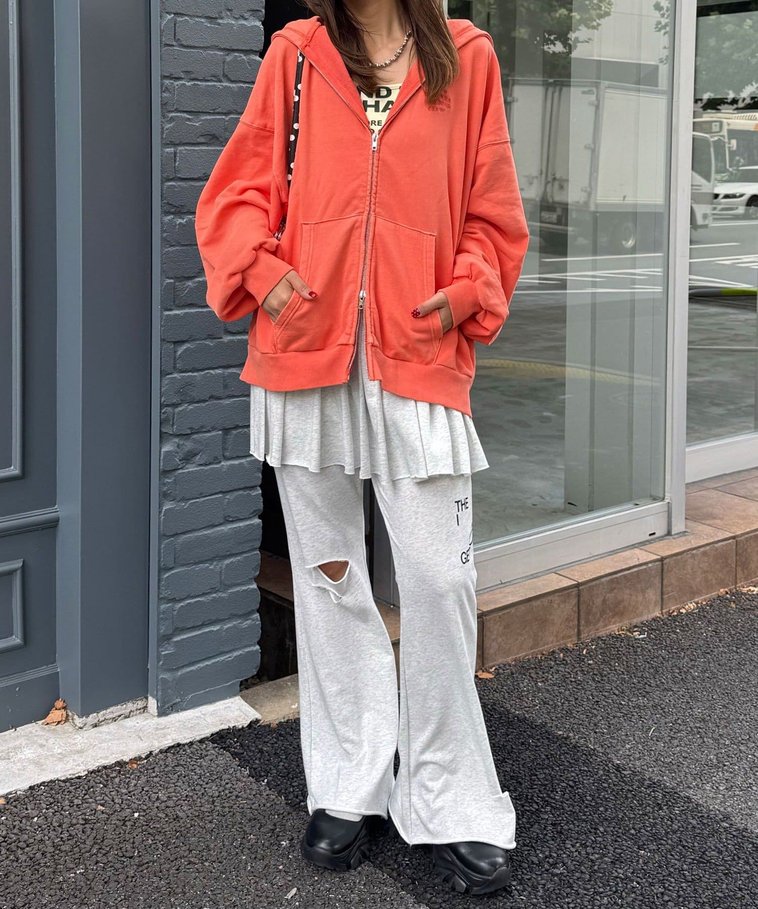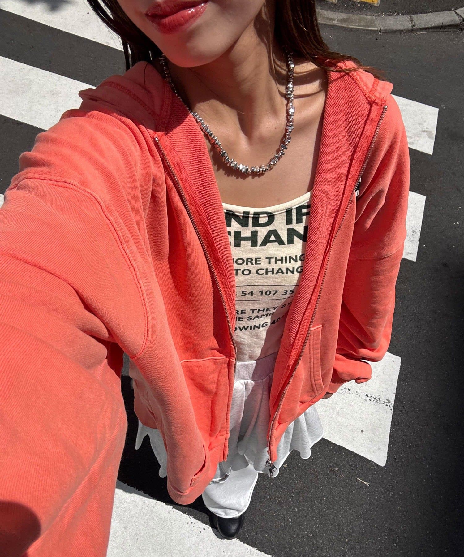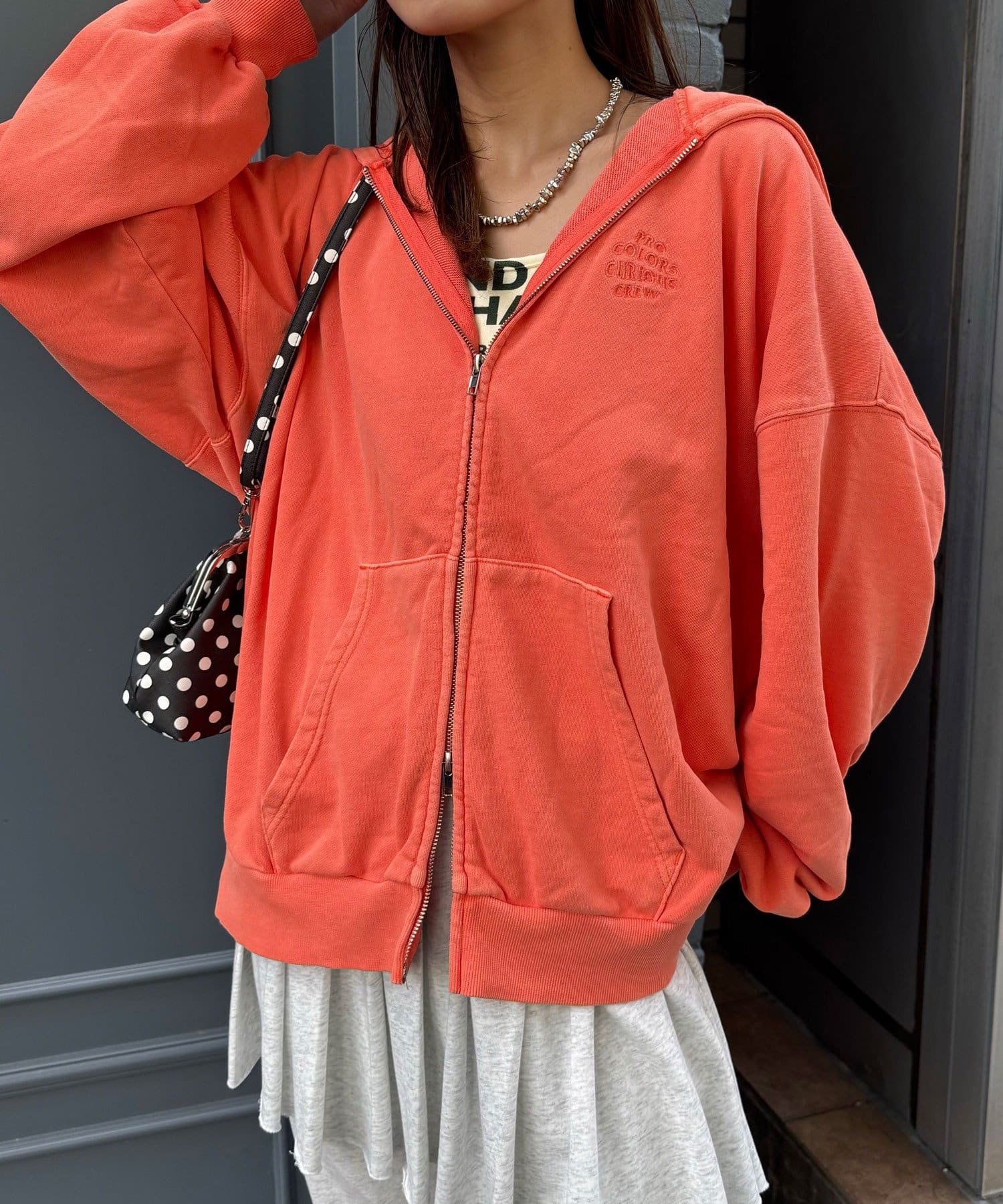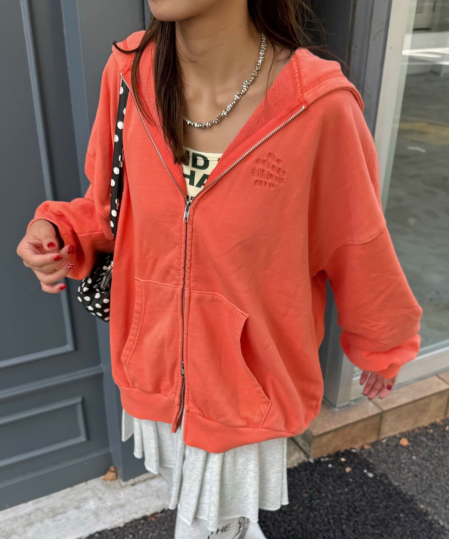 着るだけでトレンド感抜群のピグメントジップパーカー