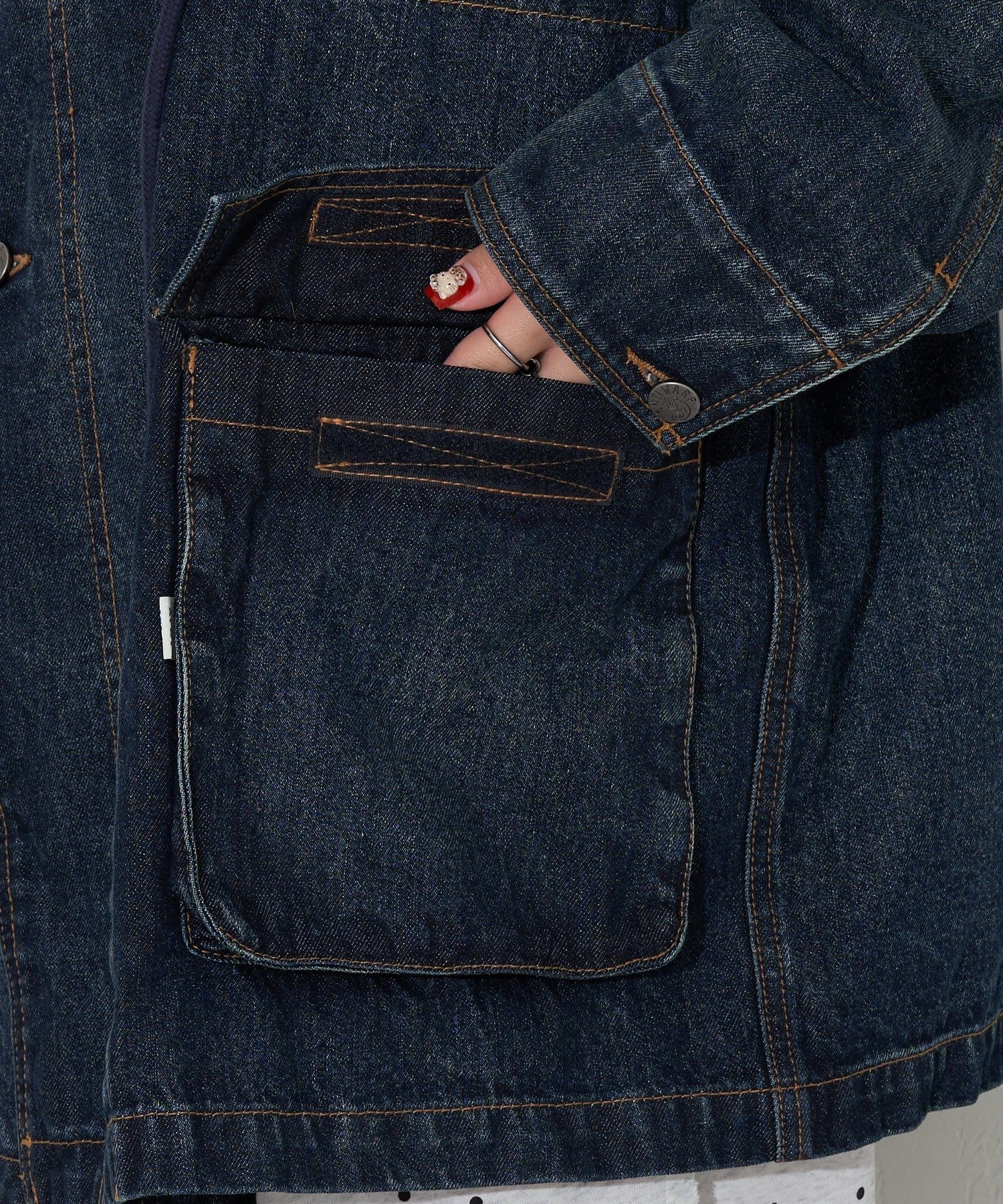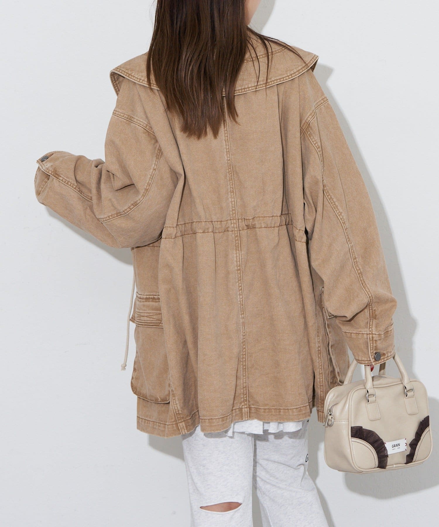 ミリタリーなディテールを取り入れつつも、デニム素材でカジュアルダウンされ、普段使いしやすい一着に仕上げました。