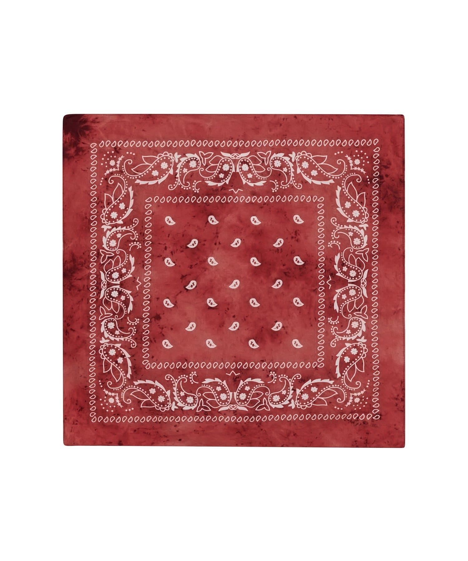 クラシックなペイズリー柄にブリーチ加工を施し、タイダイ風に仕上げたバンダナ。