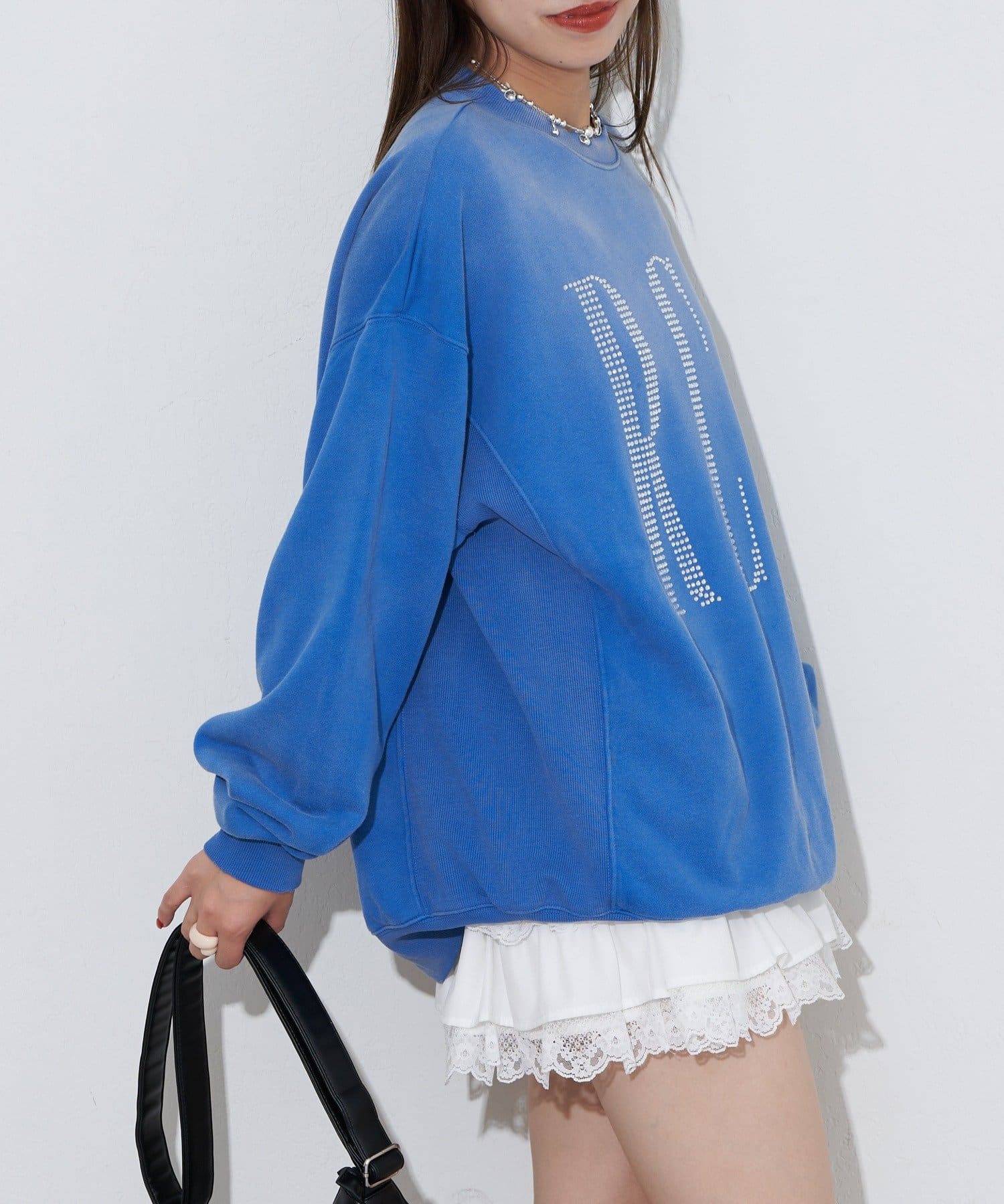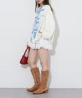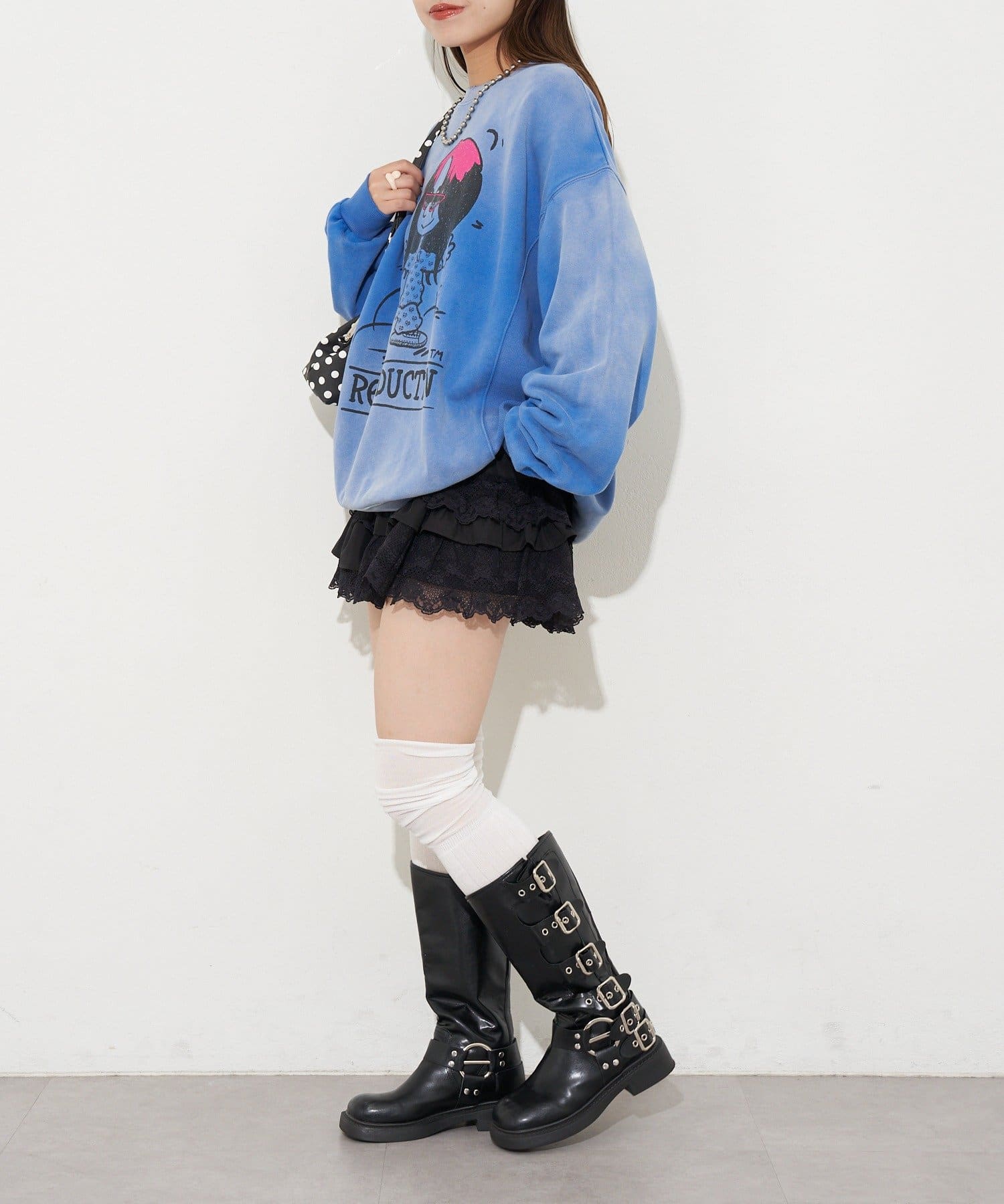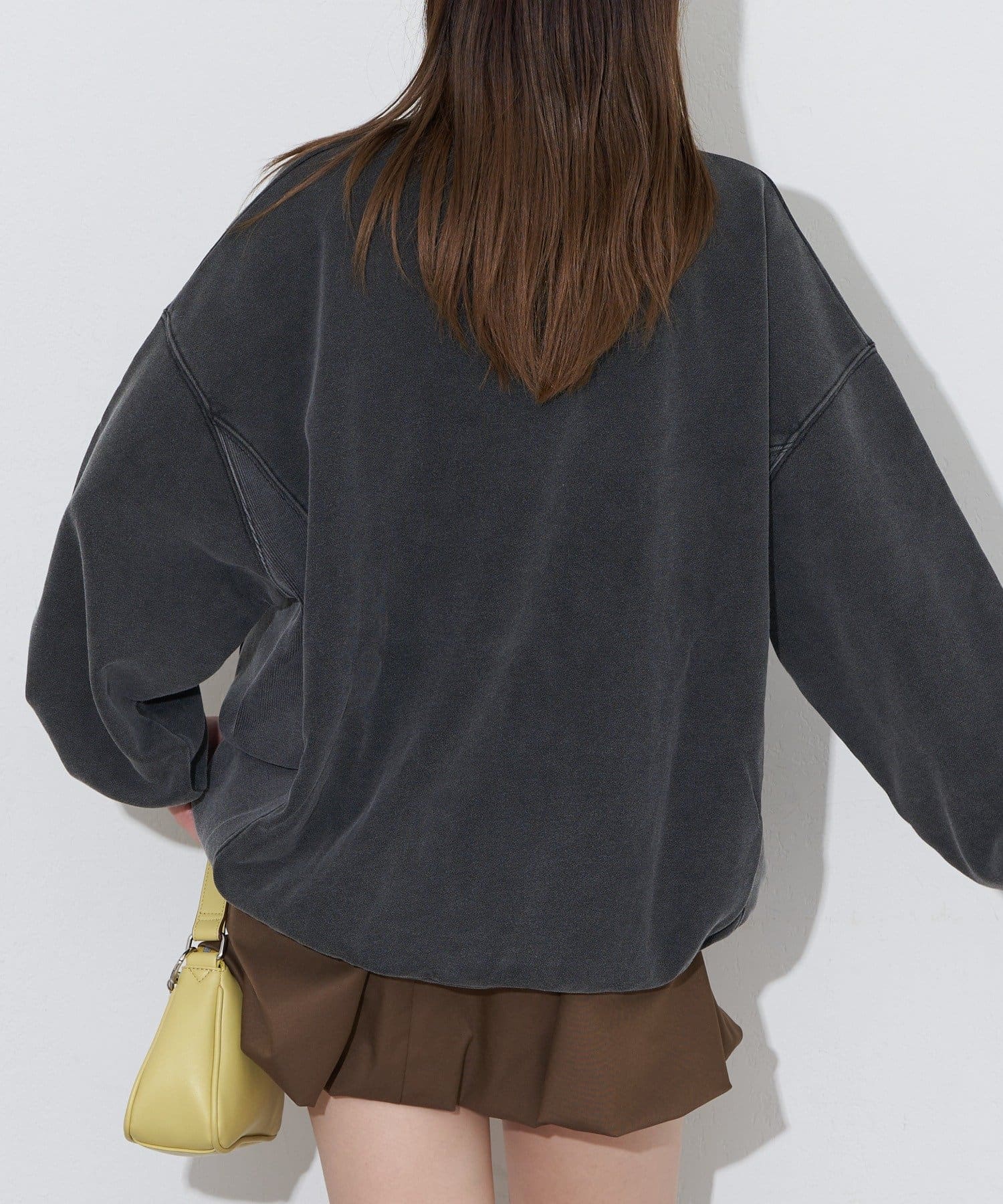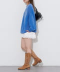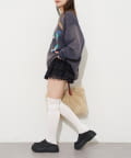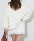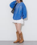 ゆったりシルエットなので、ミニ丈のボトムスとの相性抜群です。