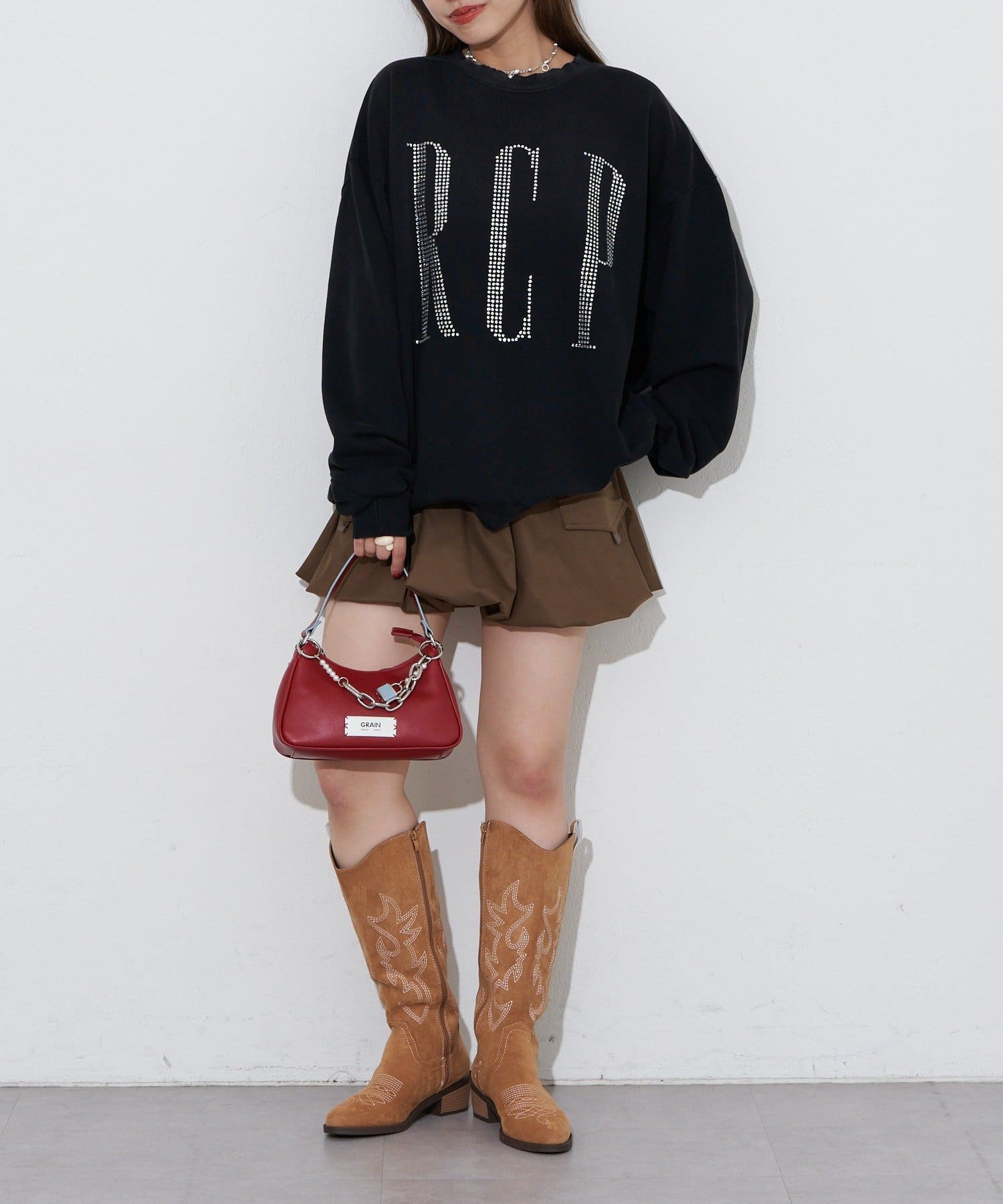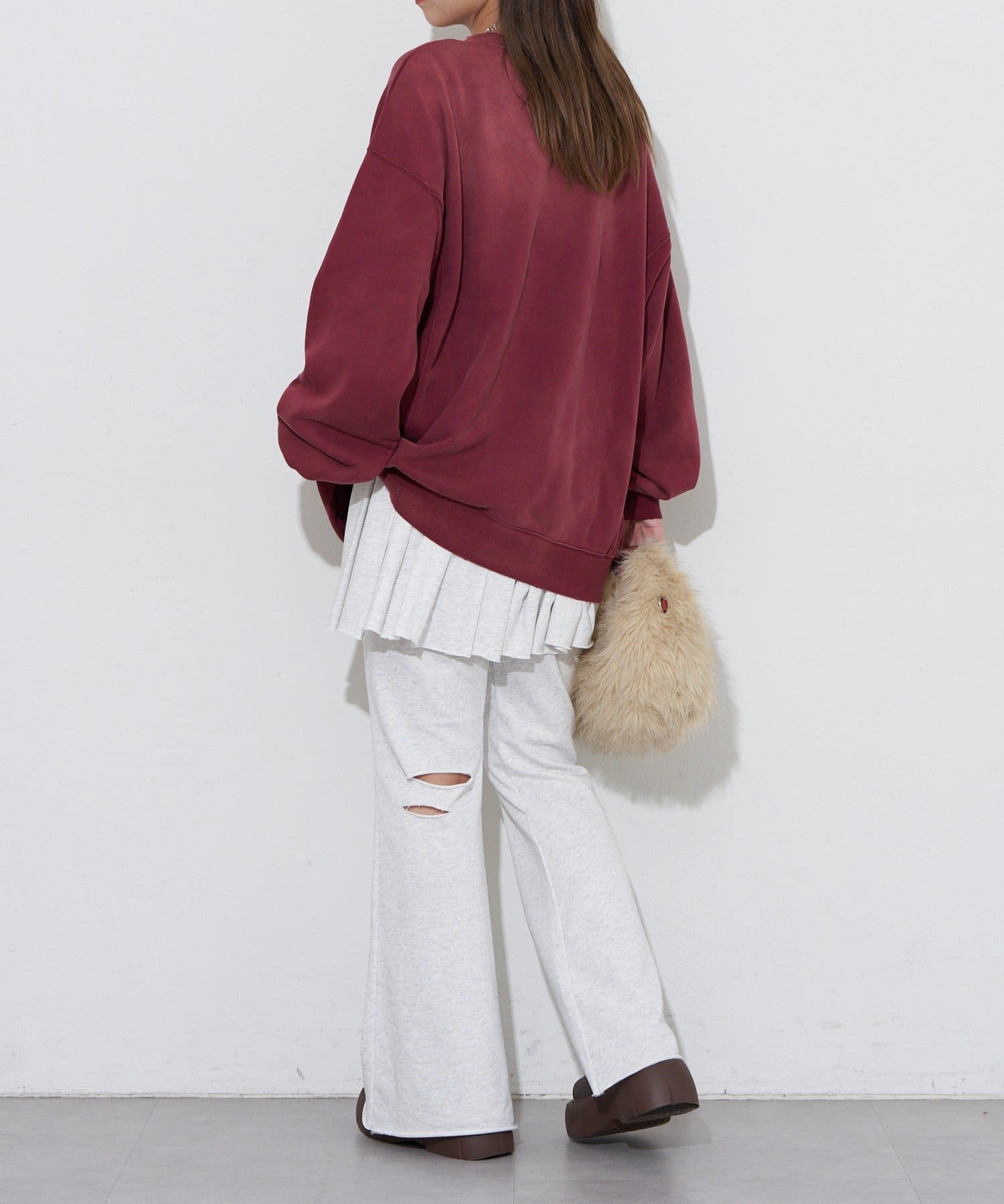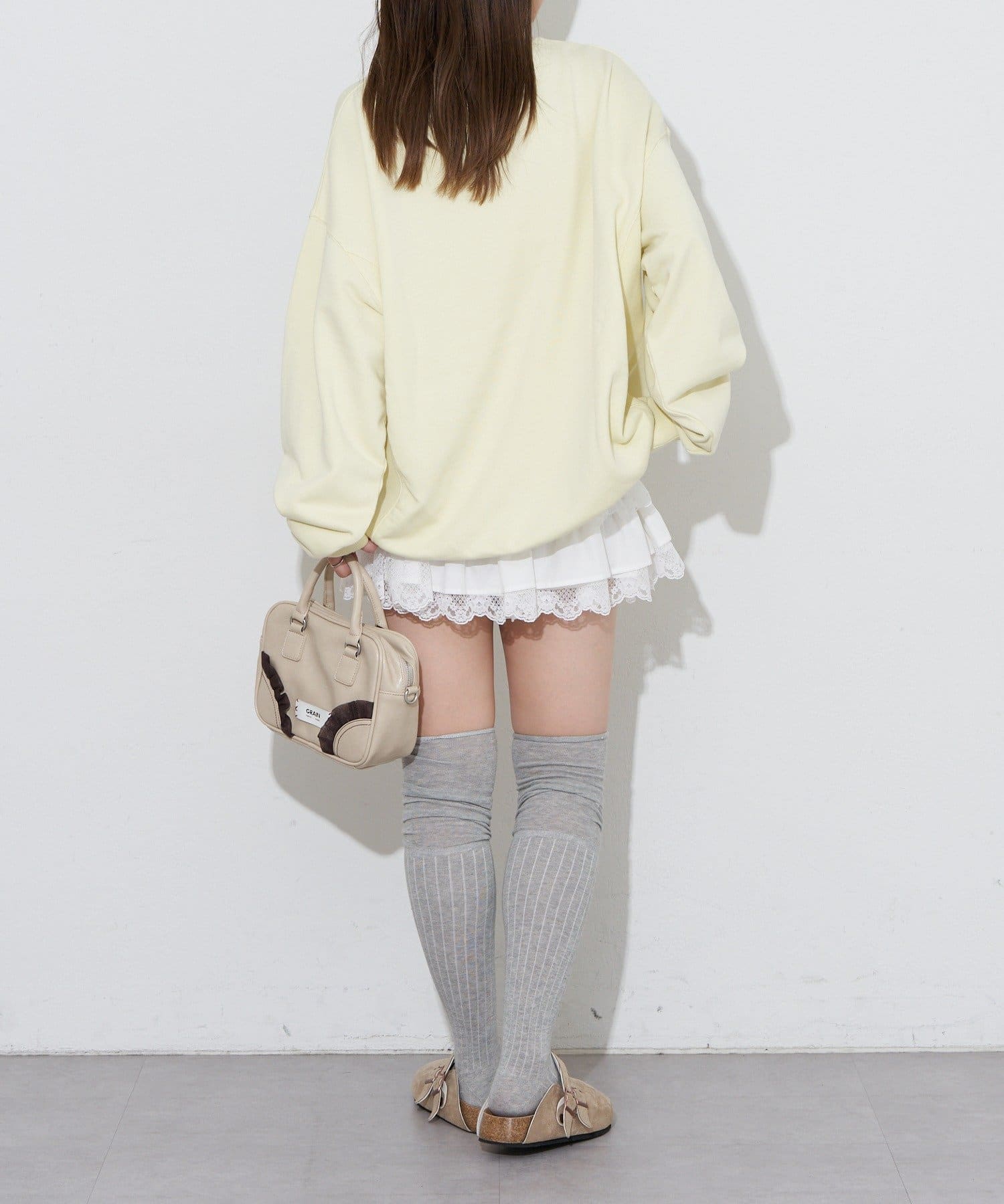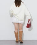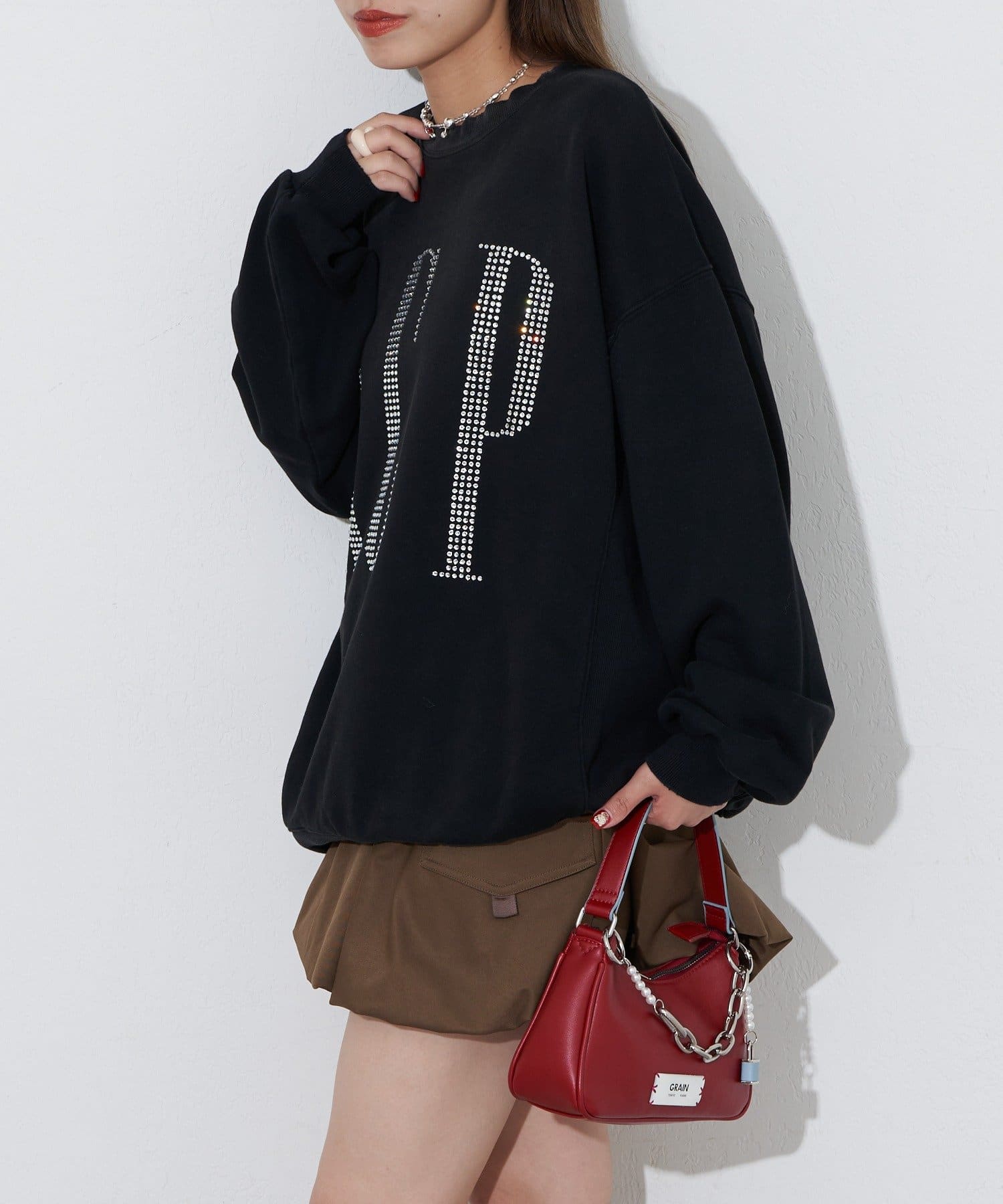 ゆったりシルエットなので、ミニ丈のボトムスとの相性抜群です。