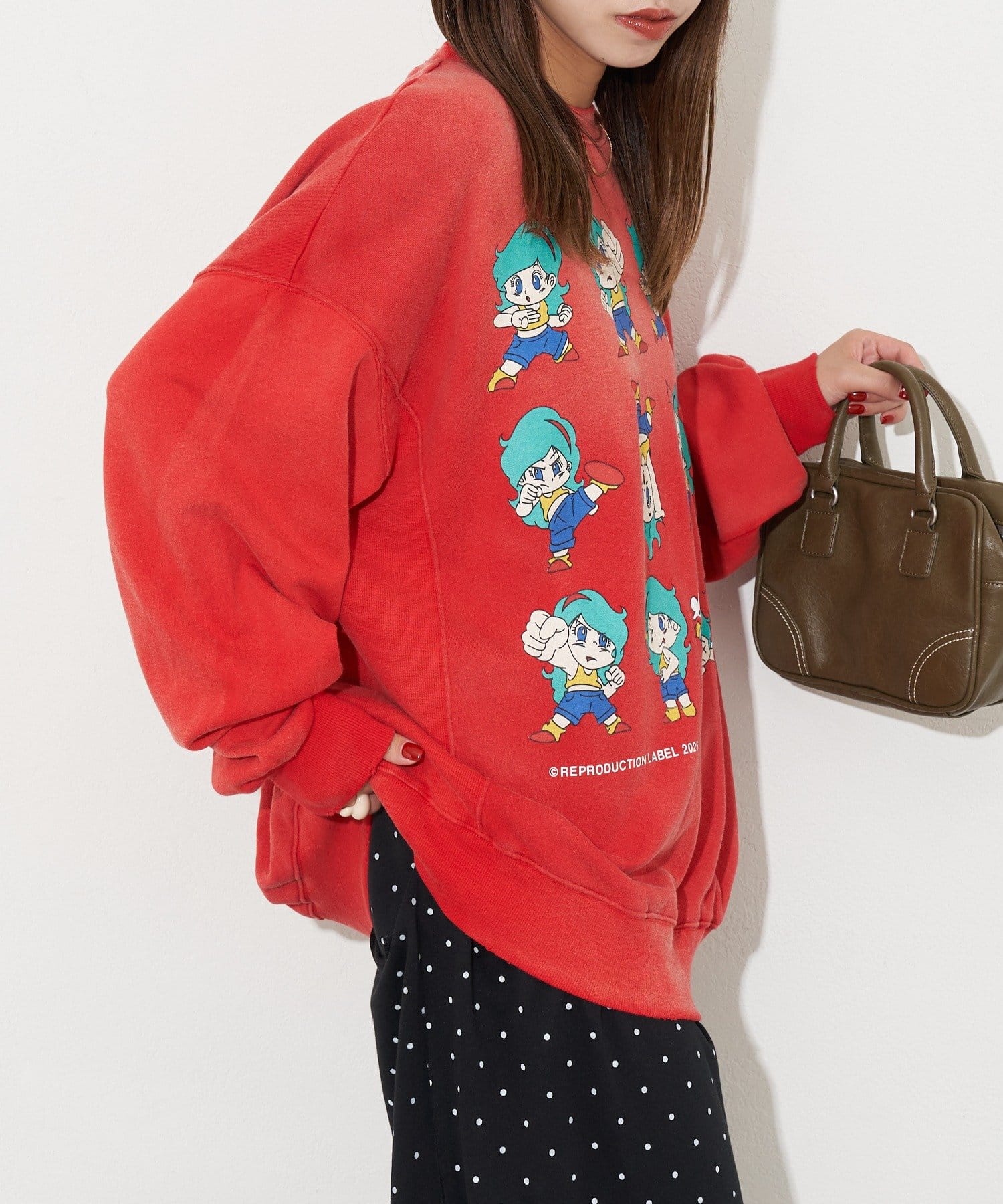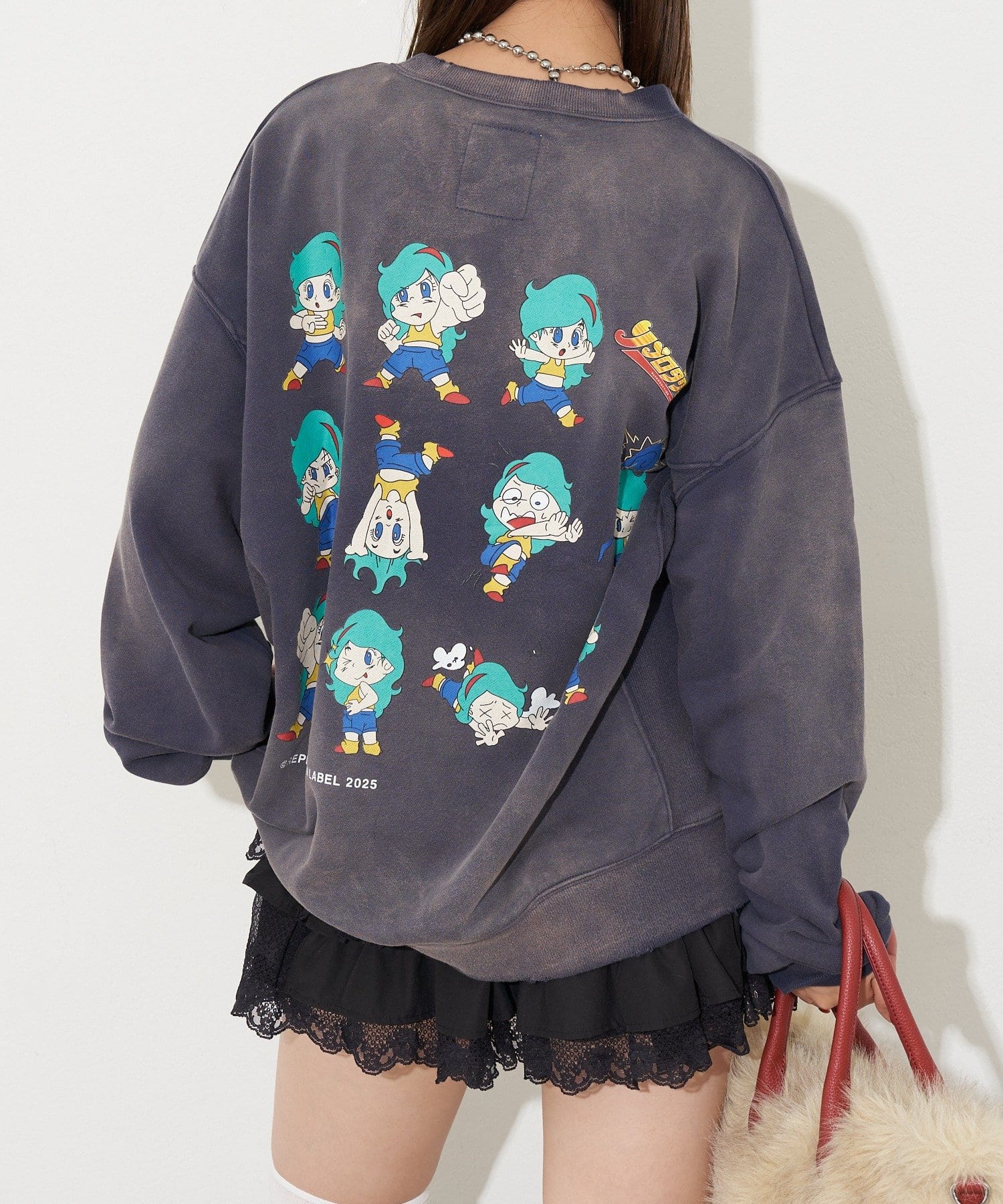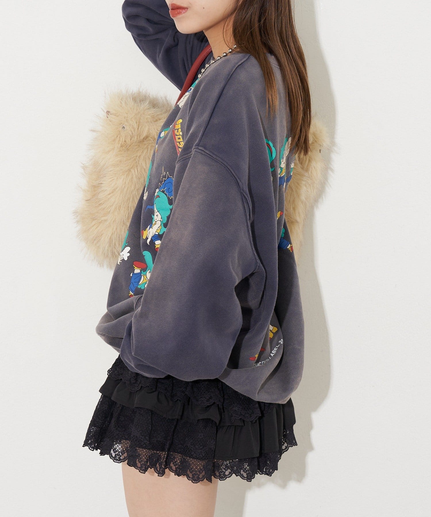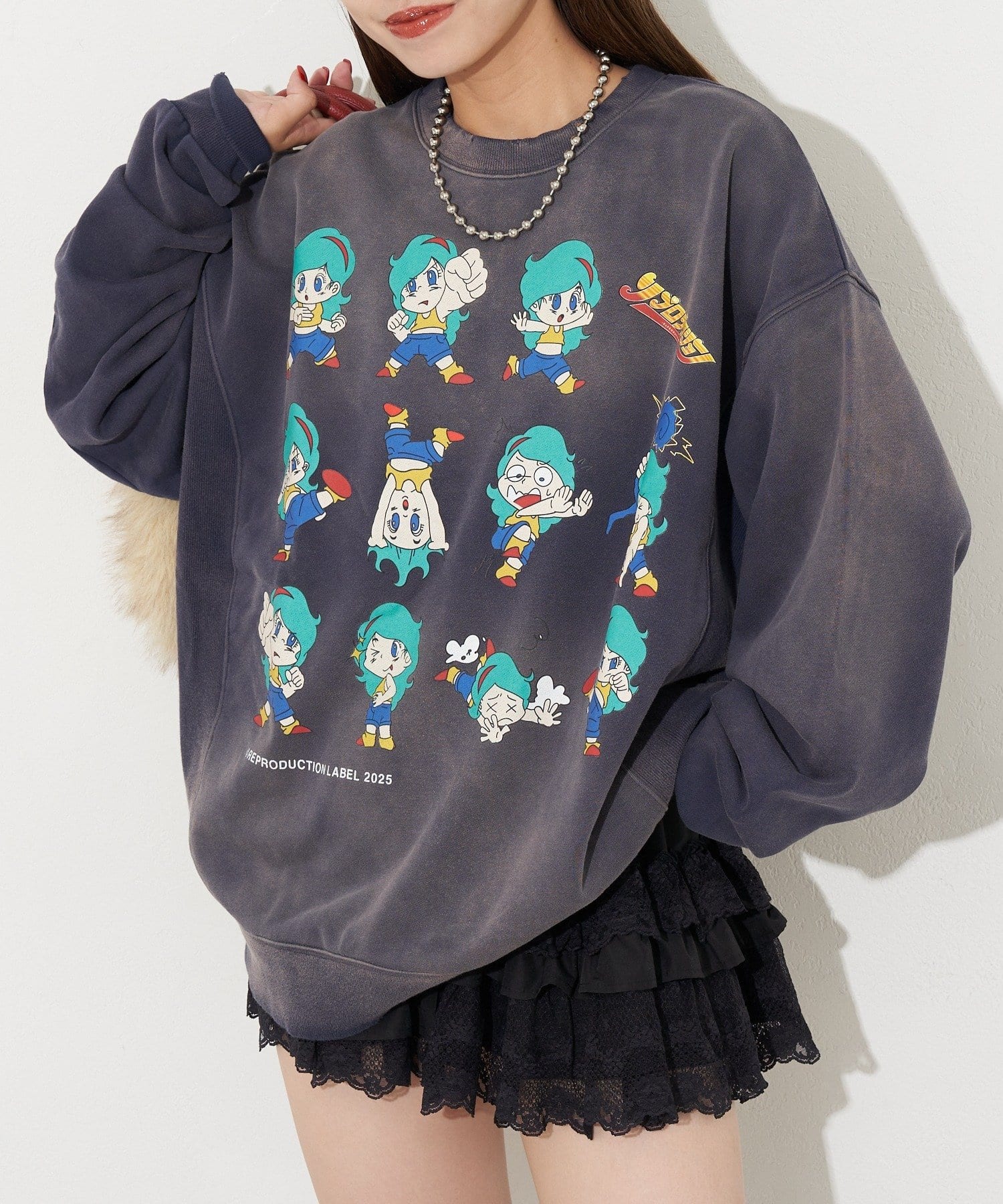 ヴィンテージ感と遊び心のあるプリントデザインが魅力のオーバーサイズスウェット