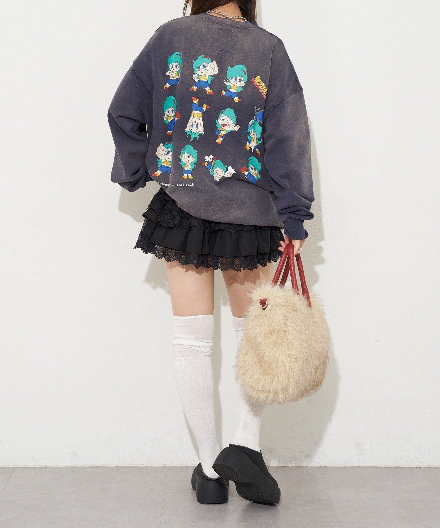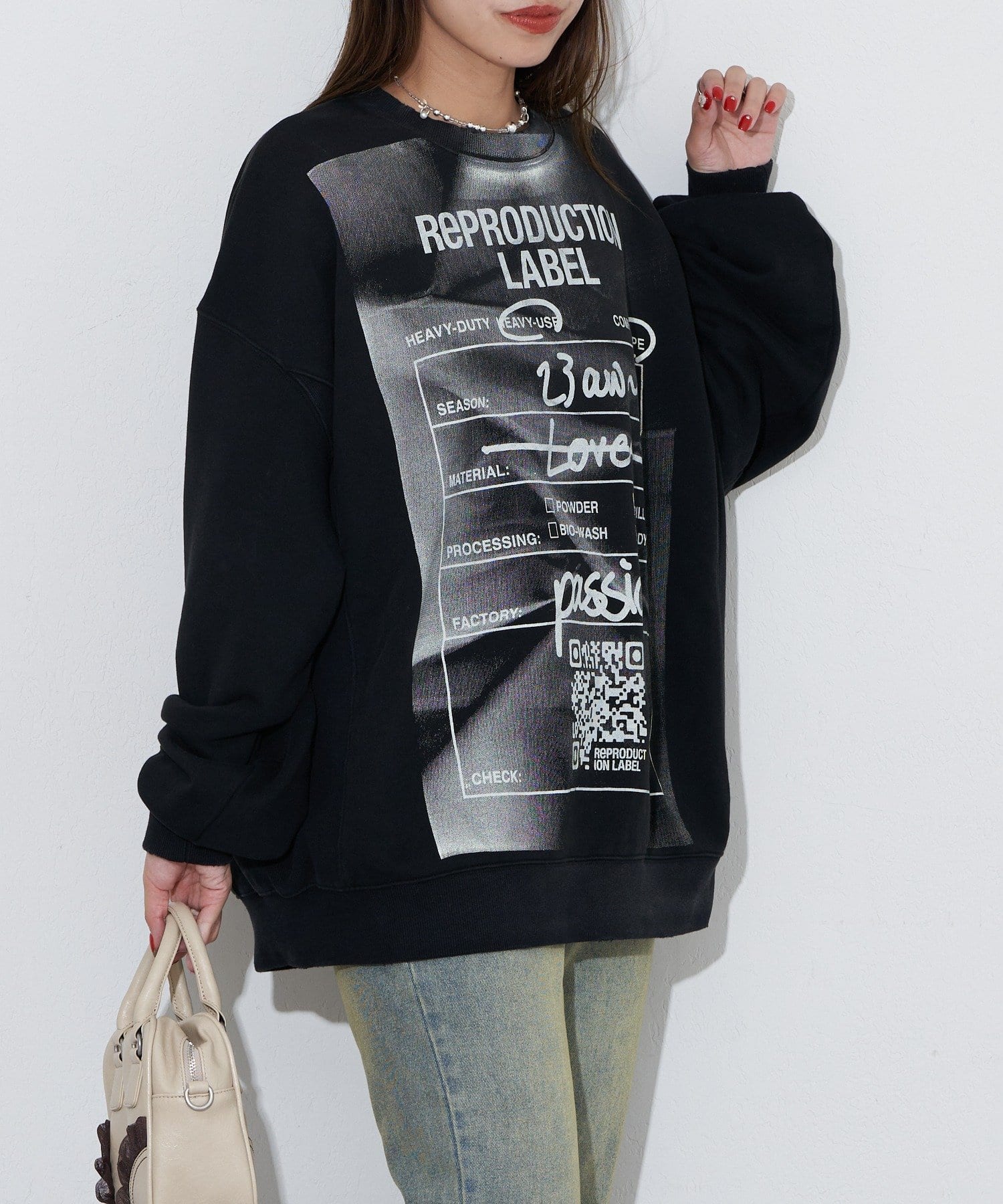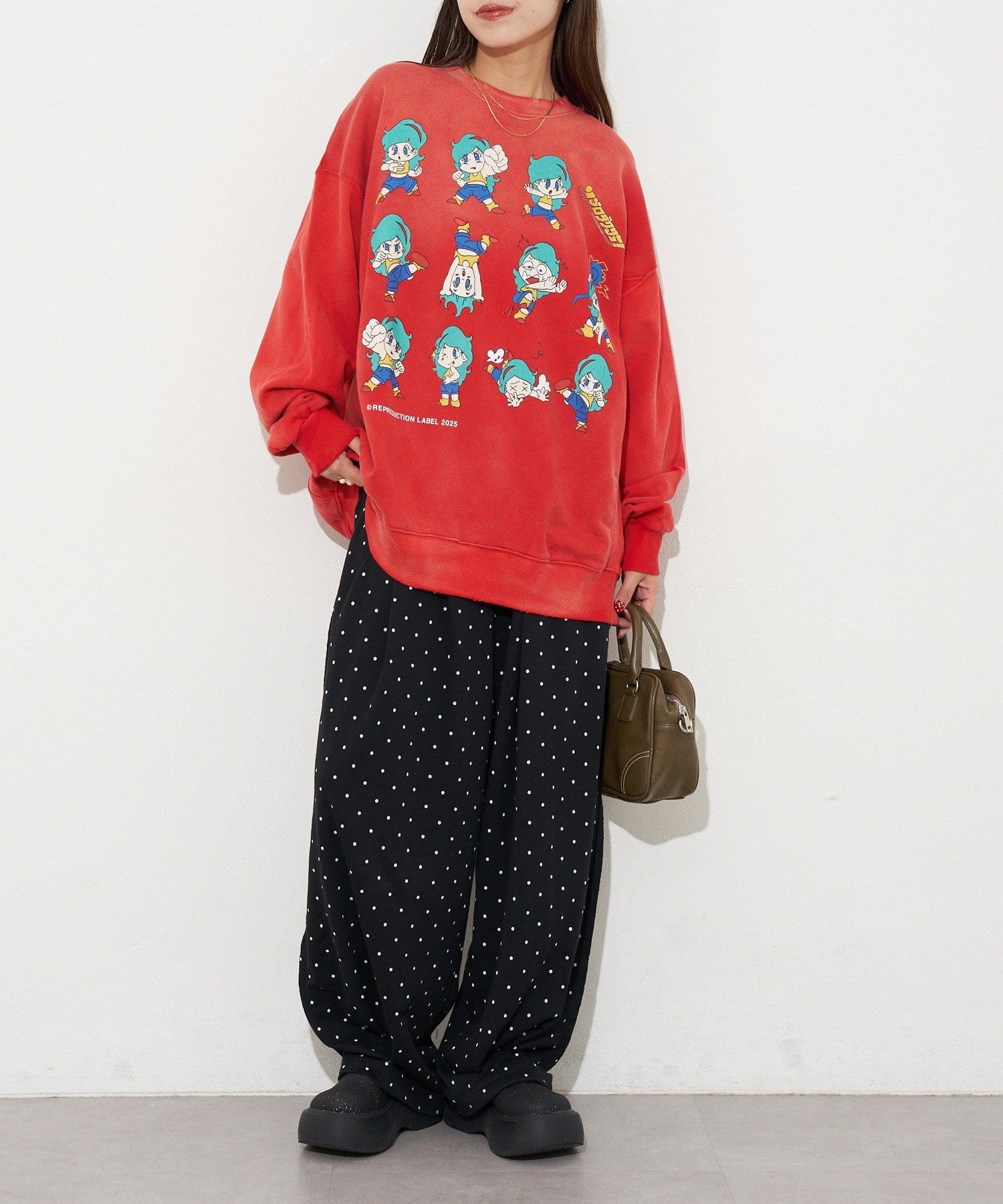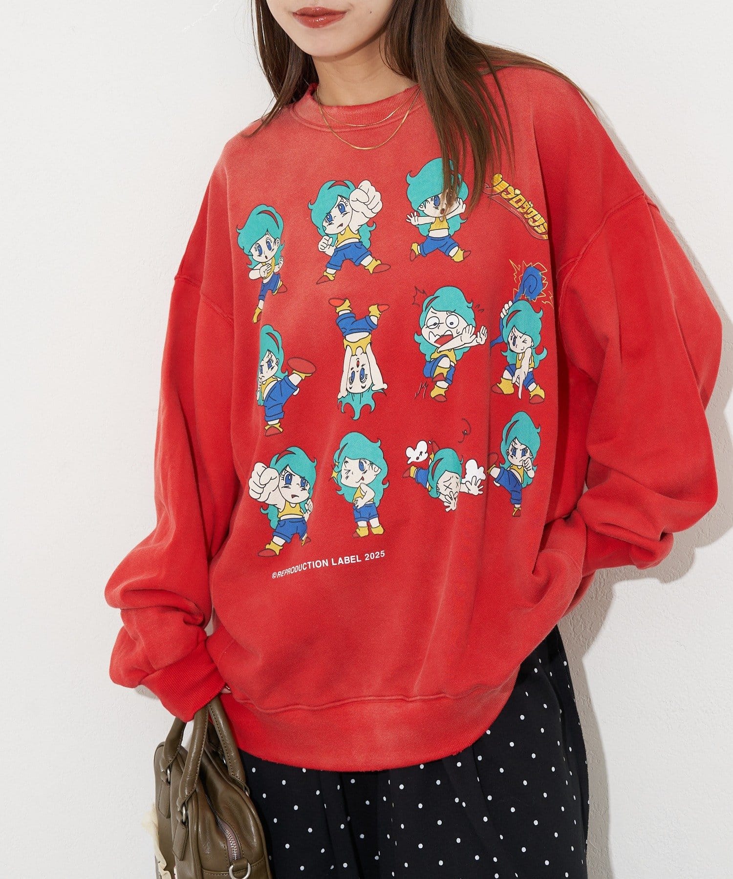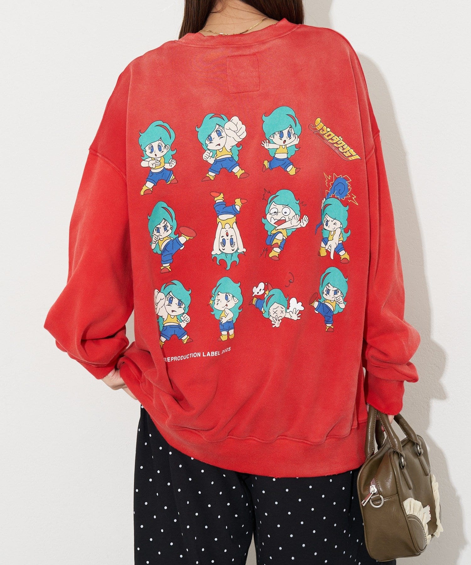 ヴィンテージ感と遊び心のあるプリントデザインが魅力のオーバーサイズスウェット