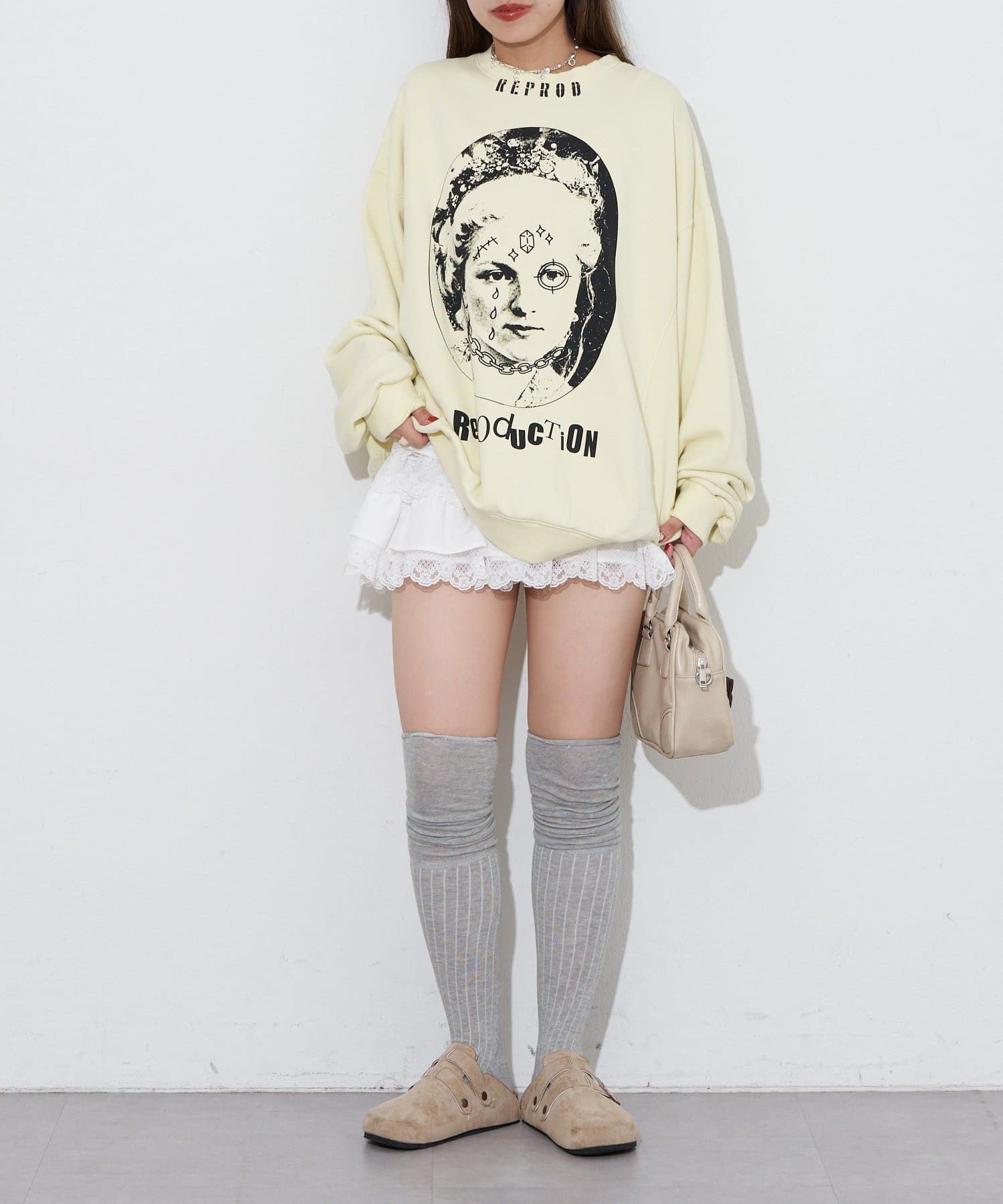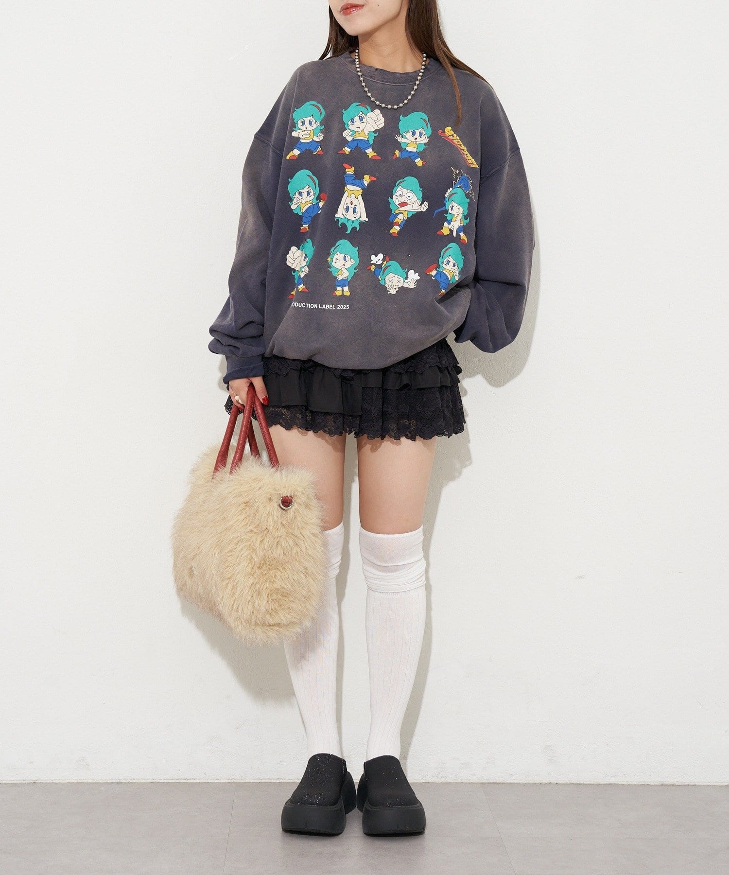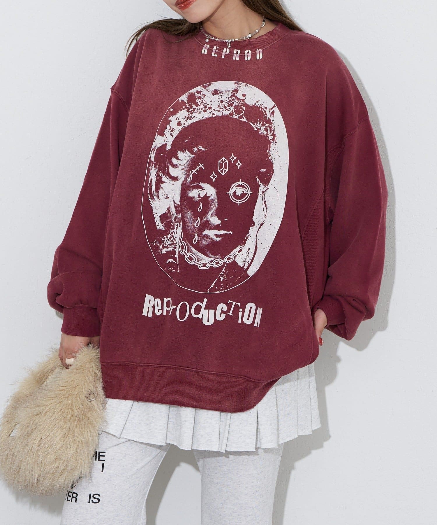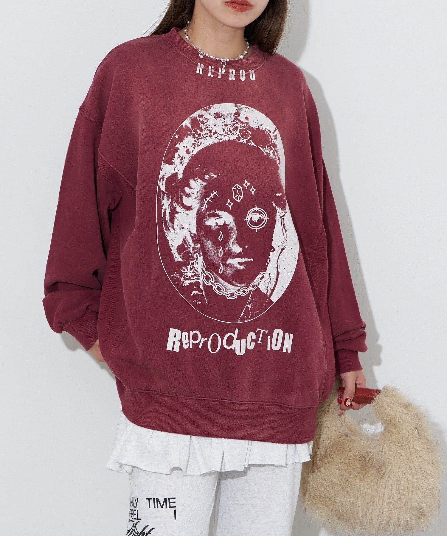 ヴィンテージ感と遊び心のあるプリントデザインが魅力のオーバーサイズスウェット