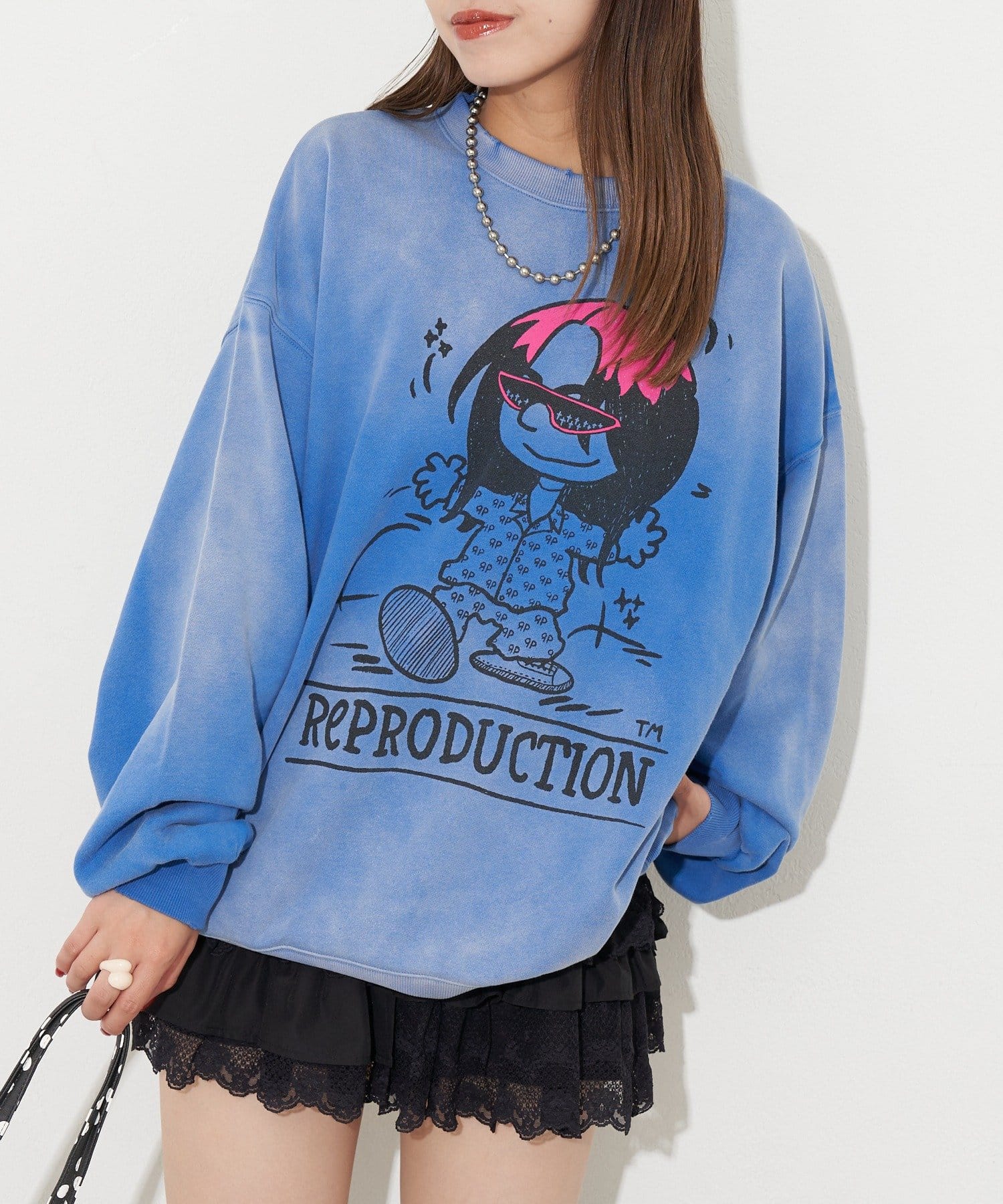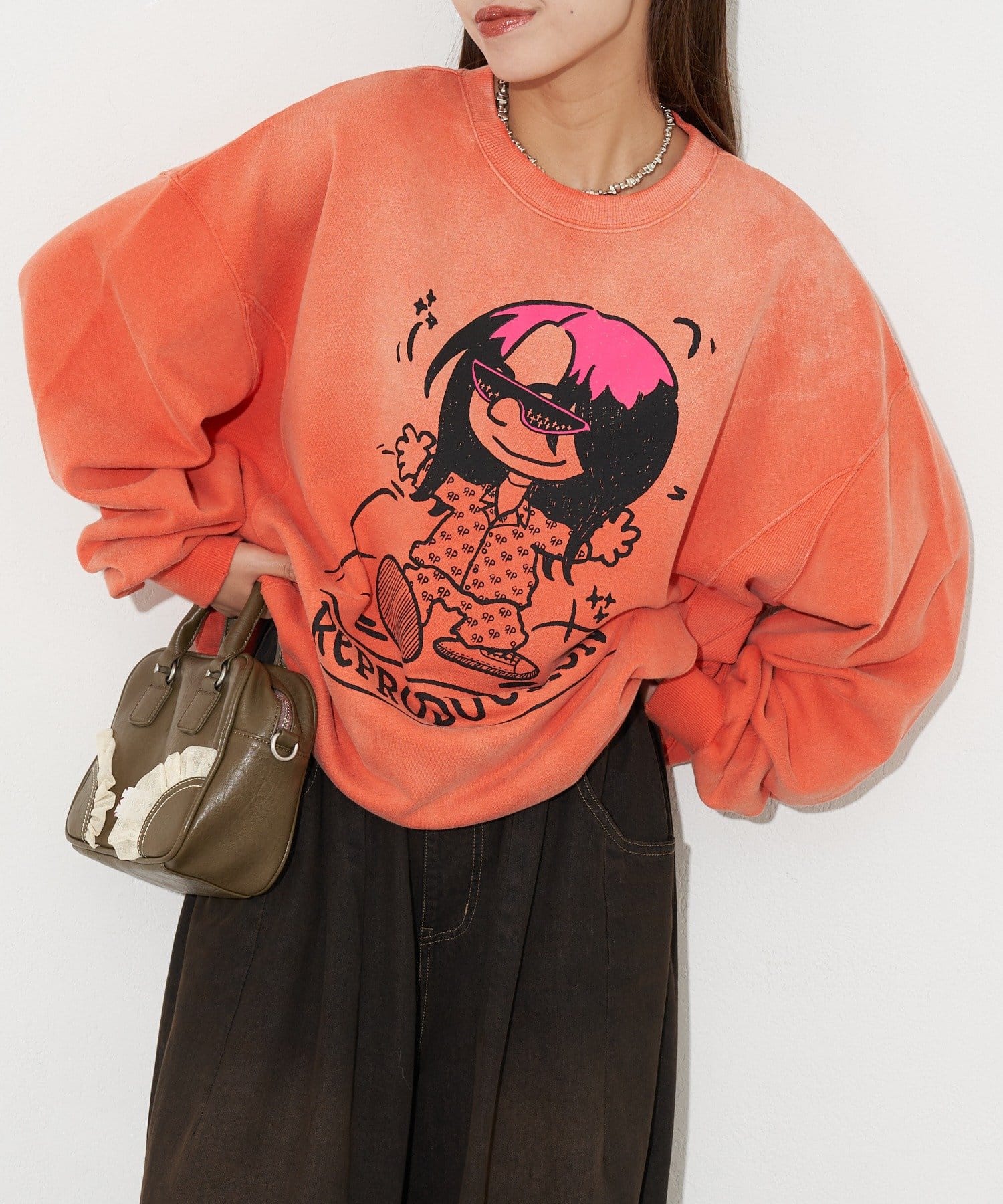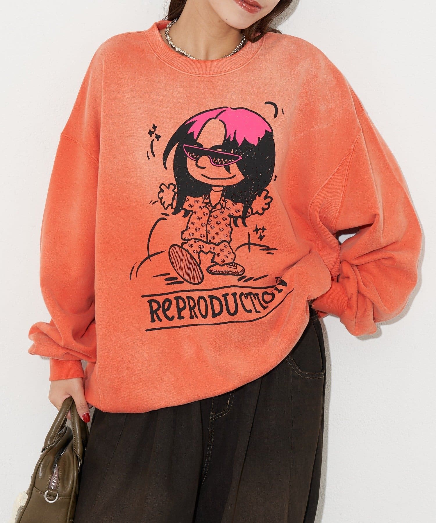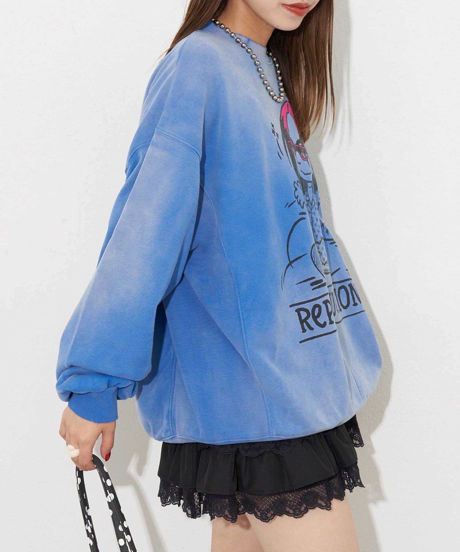 ポップなプリントが魅力的なオーバーサイズスウェット