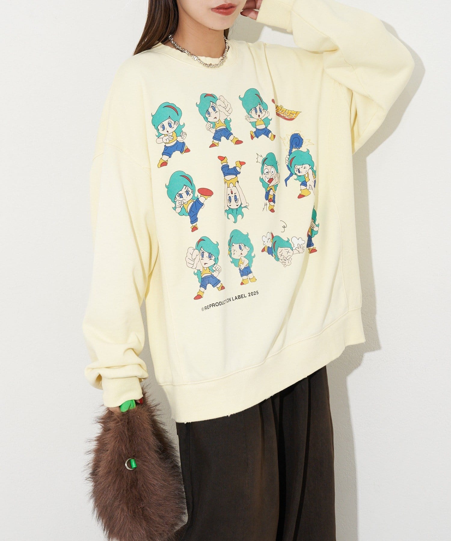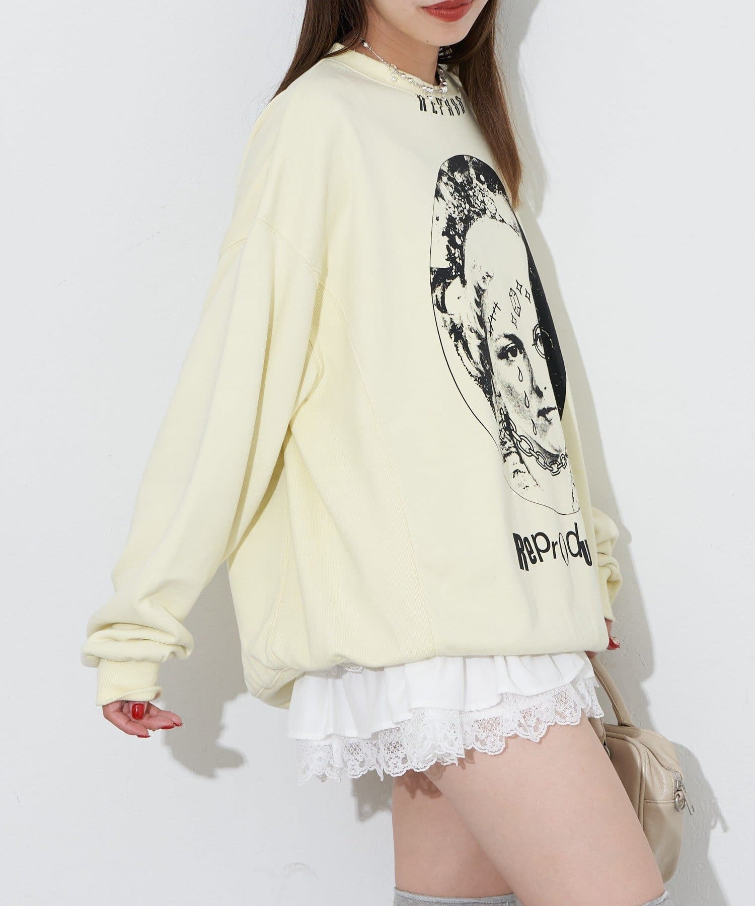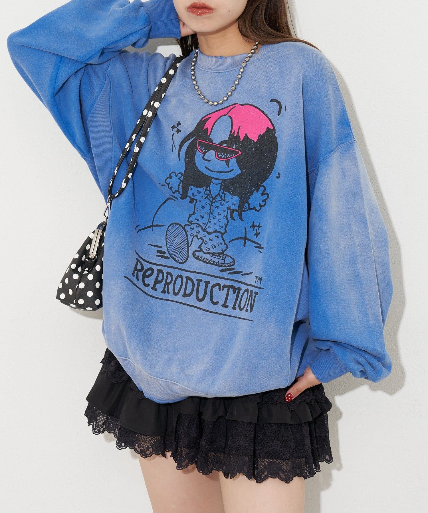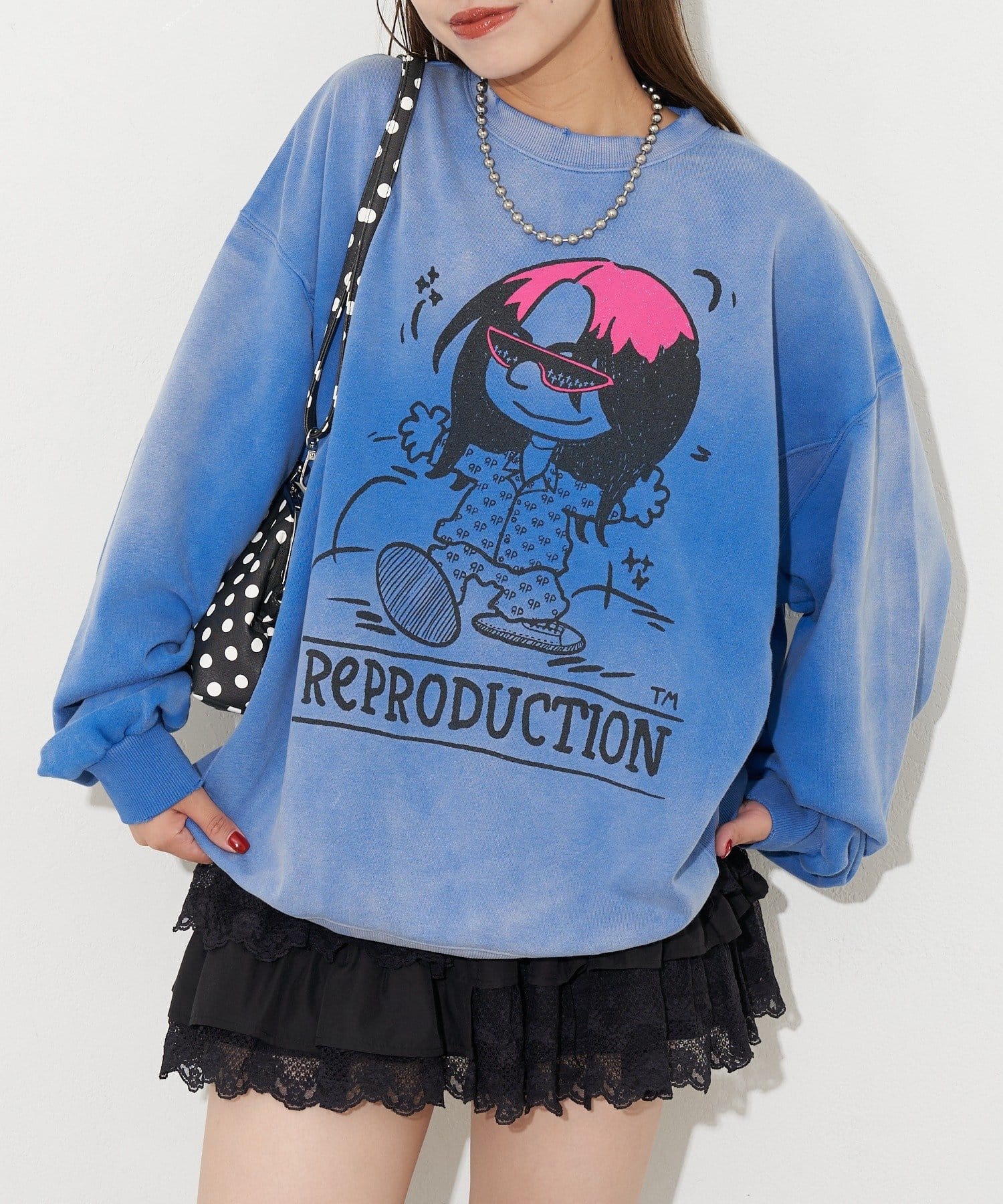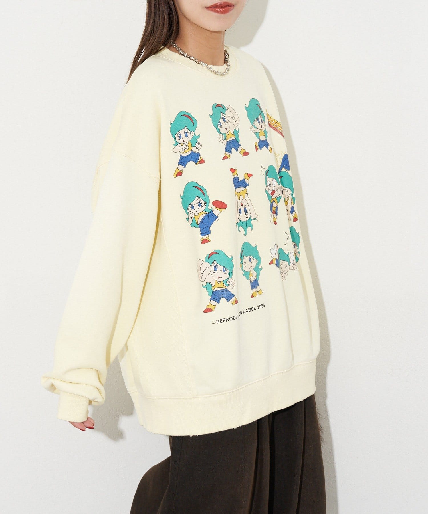 ポップなプリントが魅力的なオーバーサイズスウェット