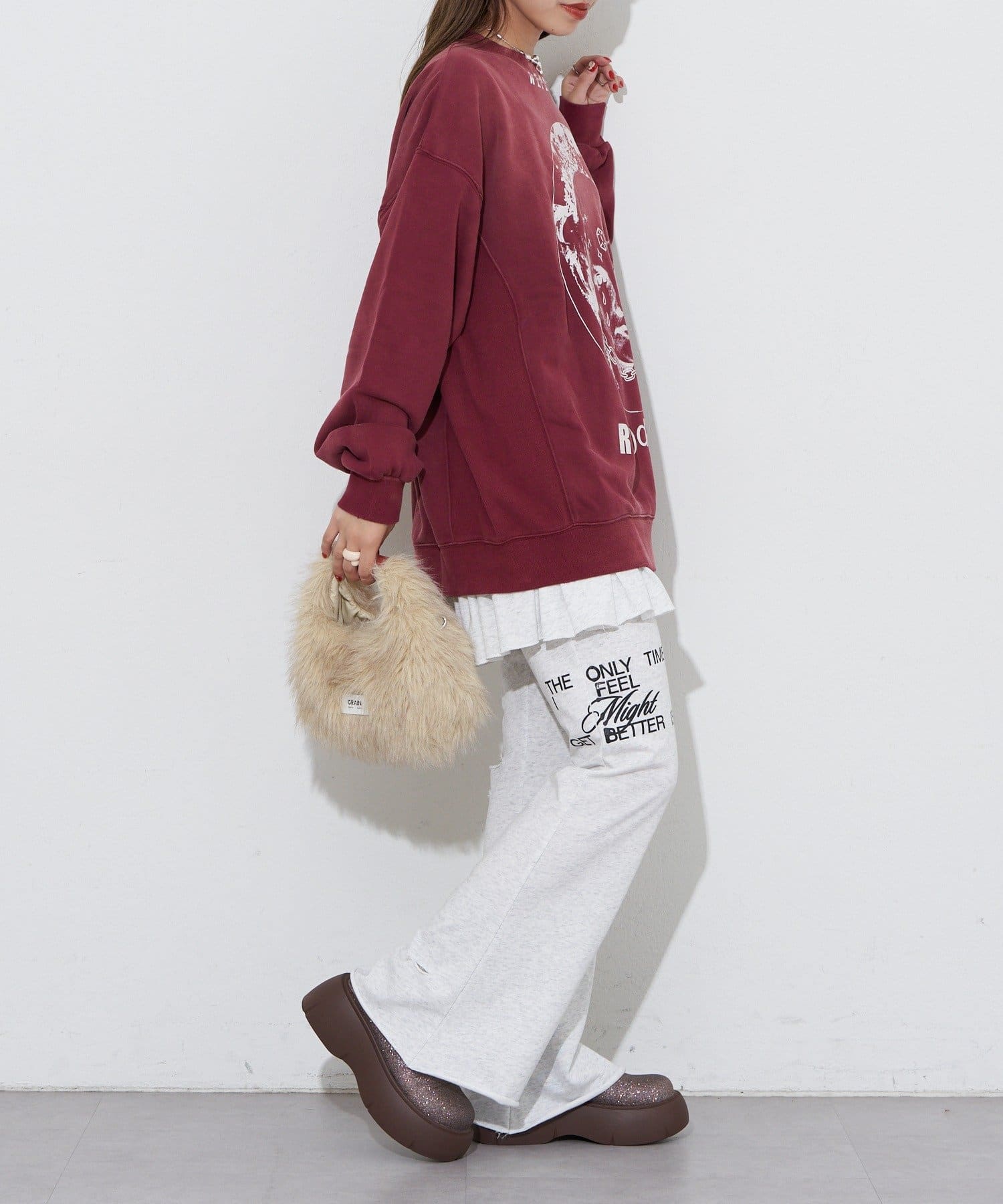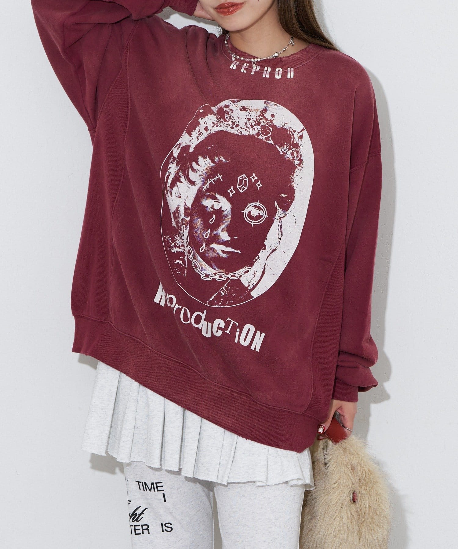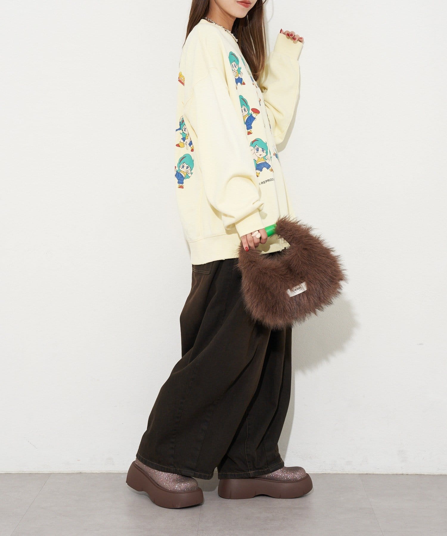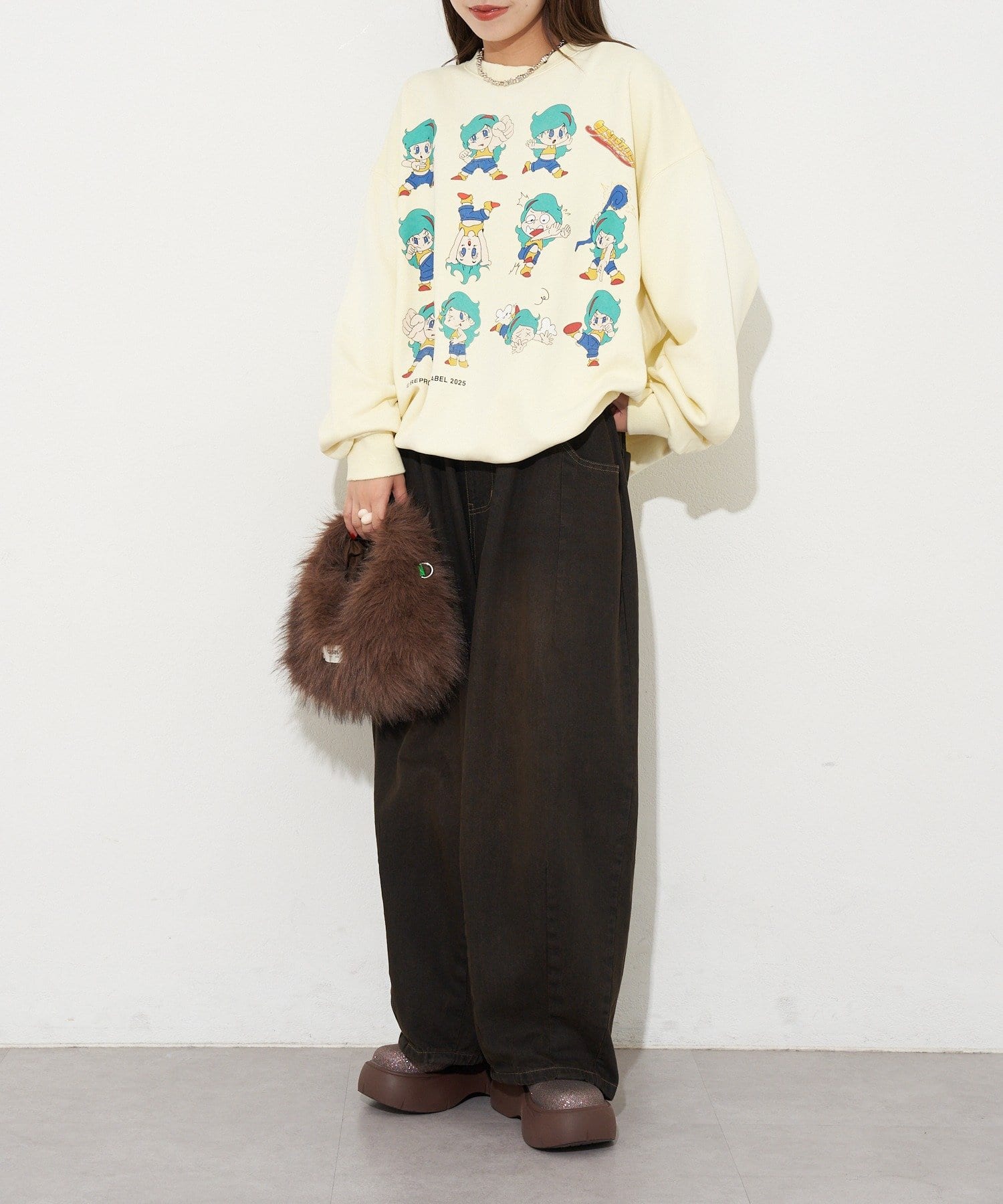 ポップなプリントが魅力的なオーバーサイズスウェット
