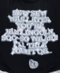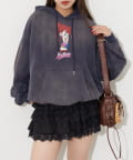 ラバープリントによる独特の質感と、色褪せ感やダメージ加工がヴィンテージライクな風合いを演出。