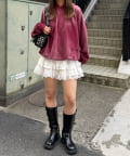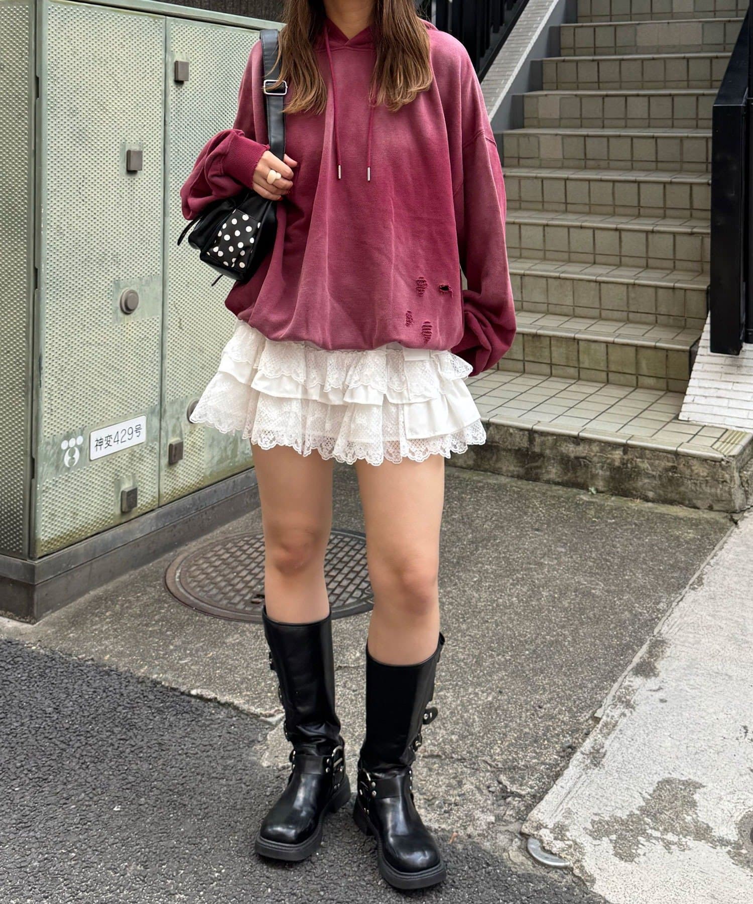 レーススカートやアクセで外せば、こなれたミックスコーデが完成します。