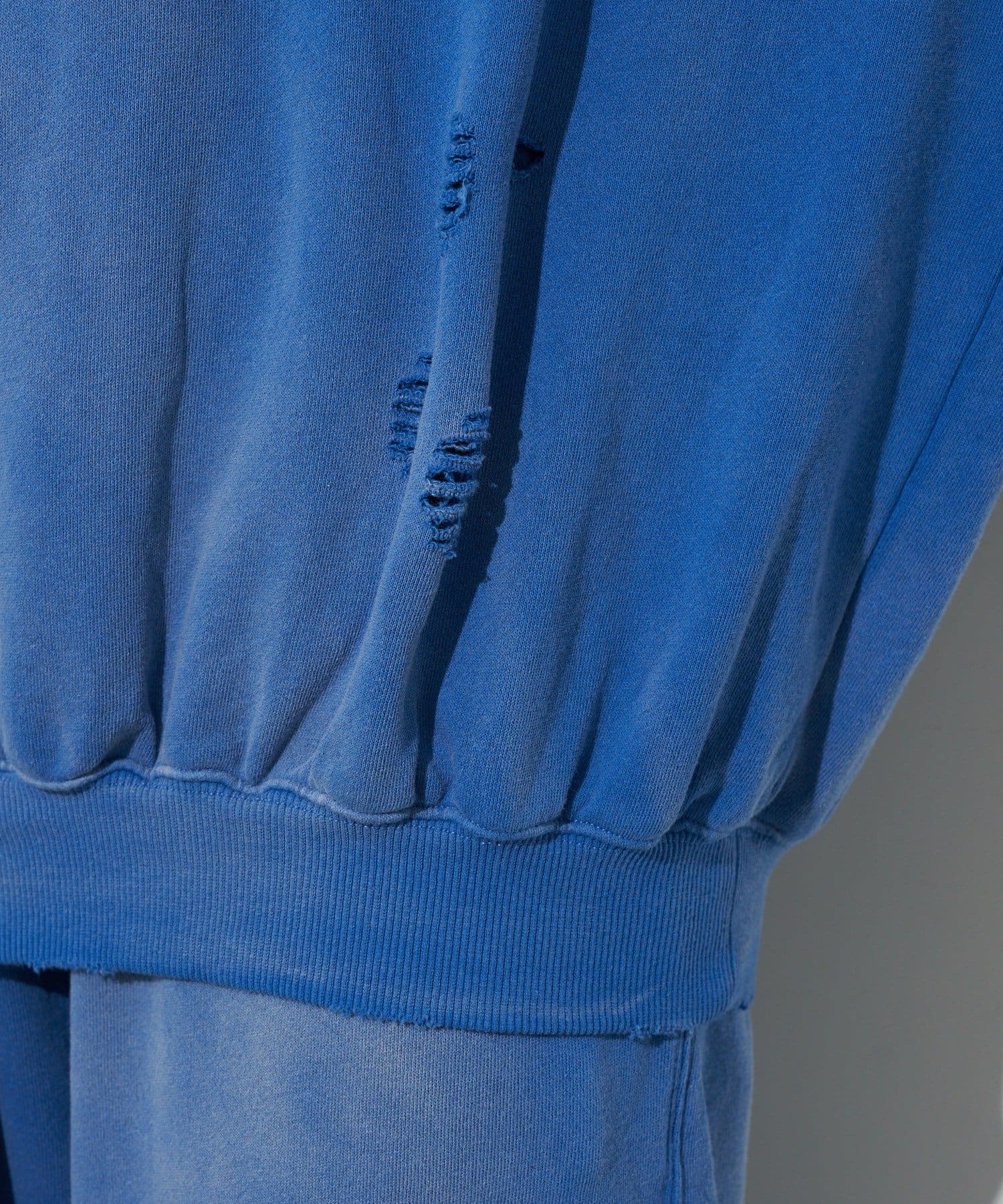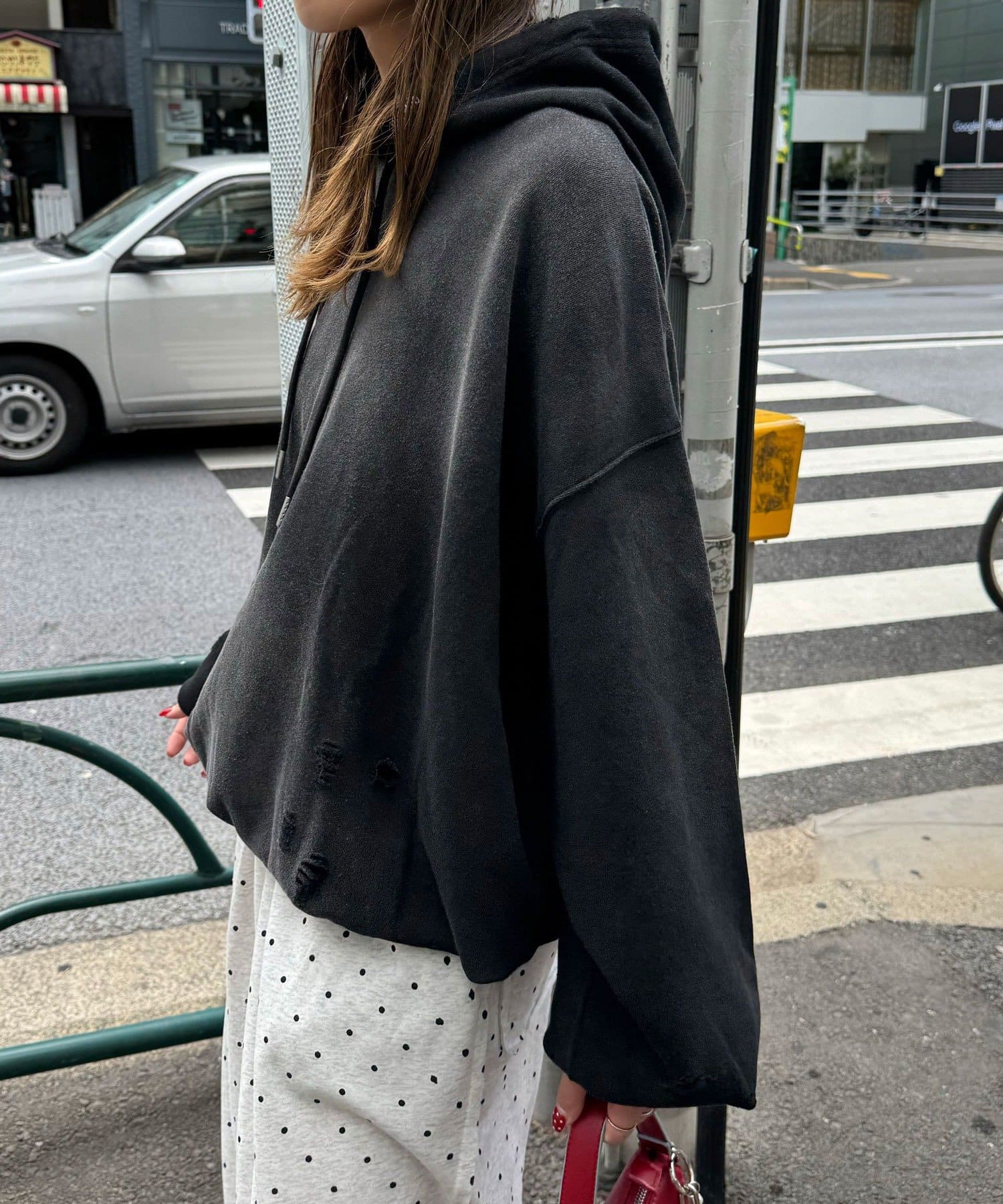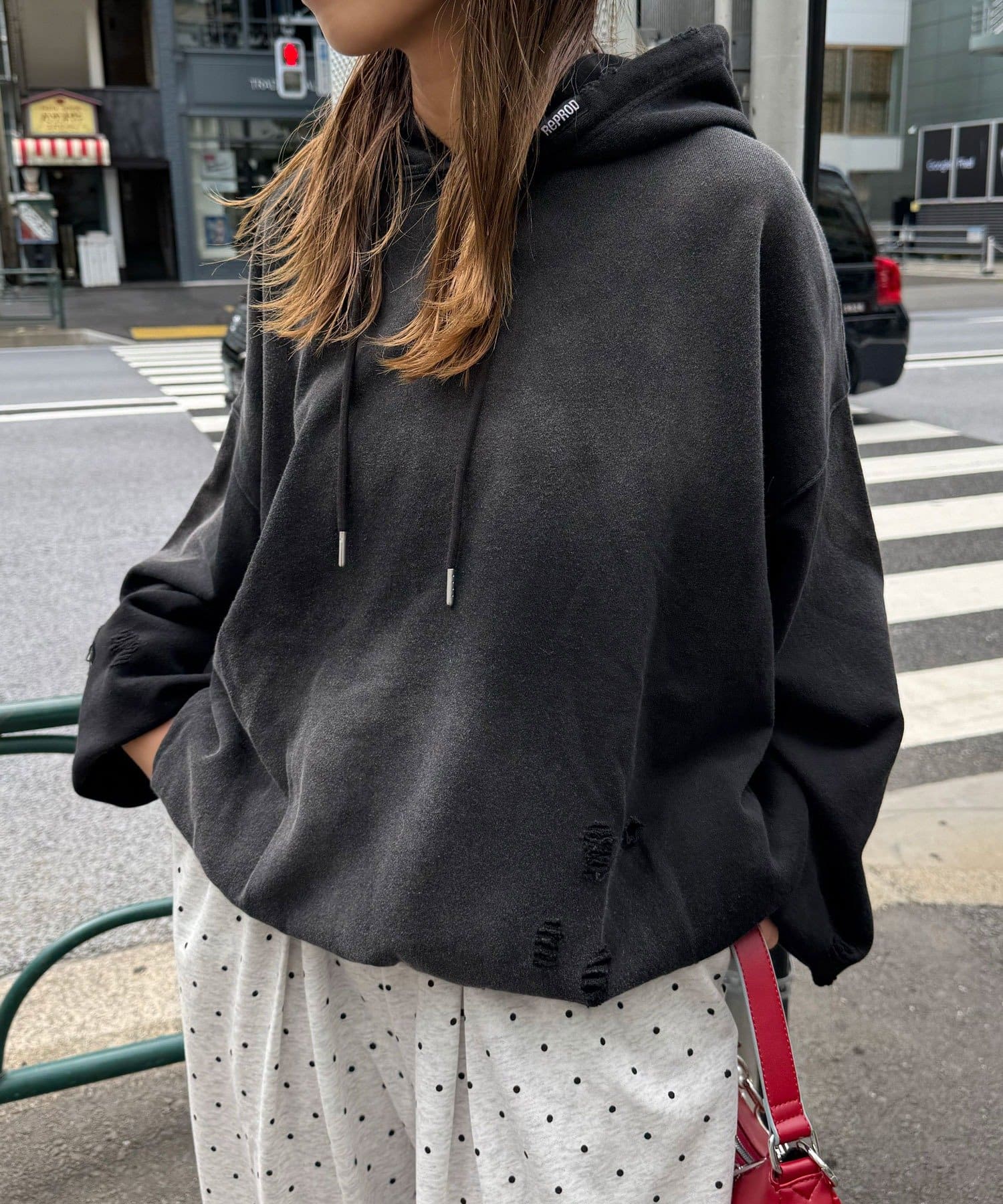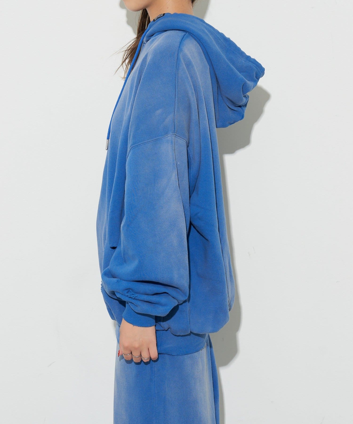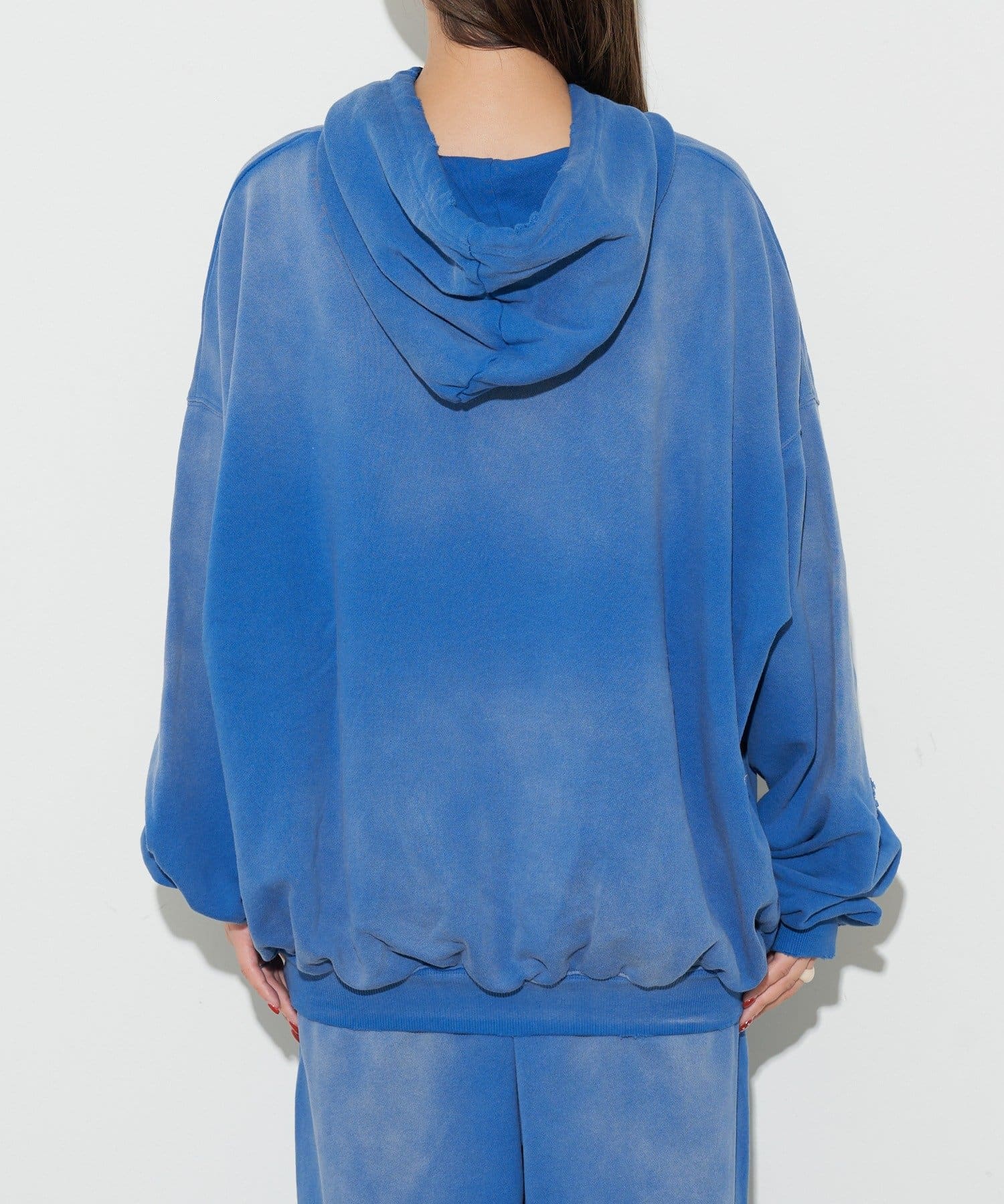 フェード感のあるカラーとダメージ加工が魅力のベーシックフェードフーディー。