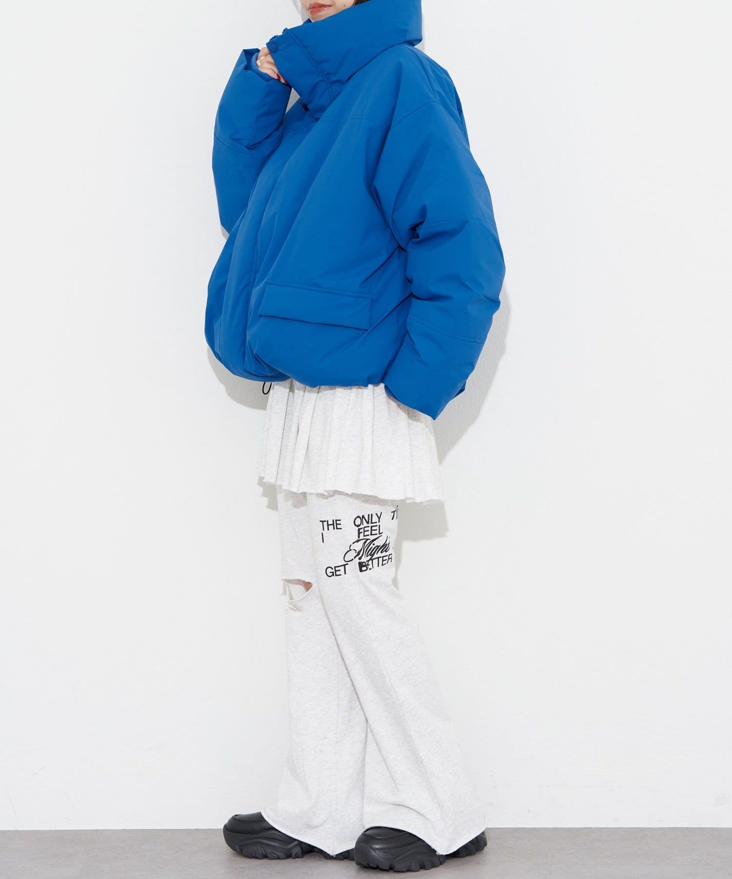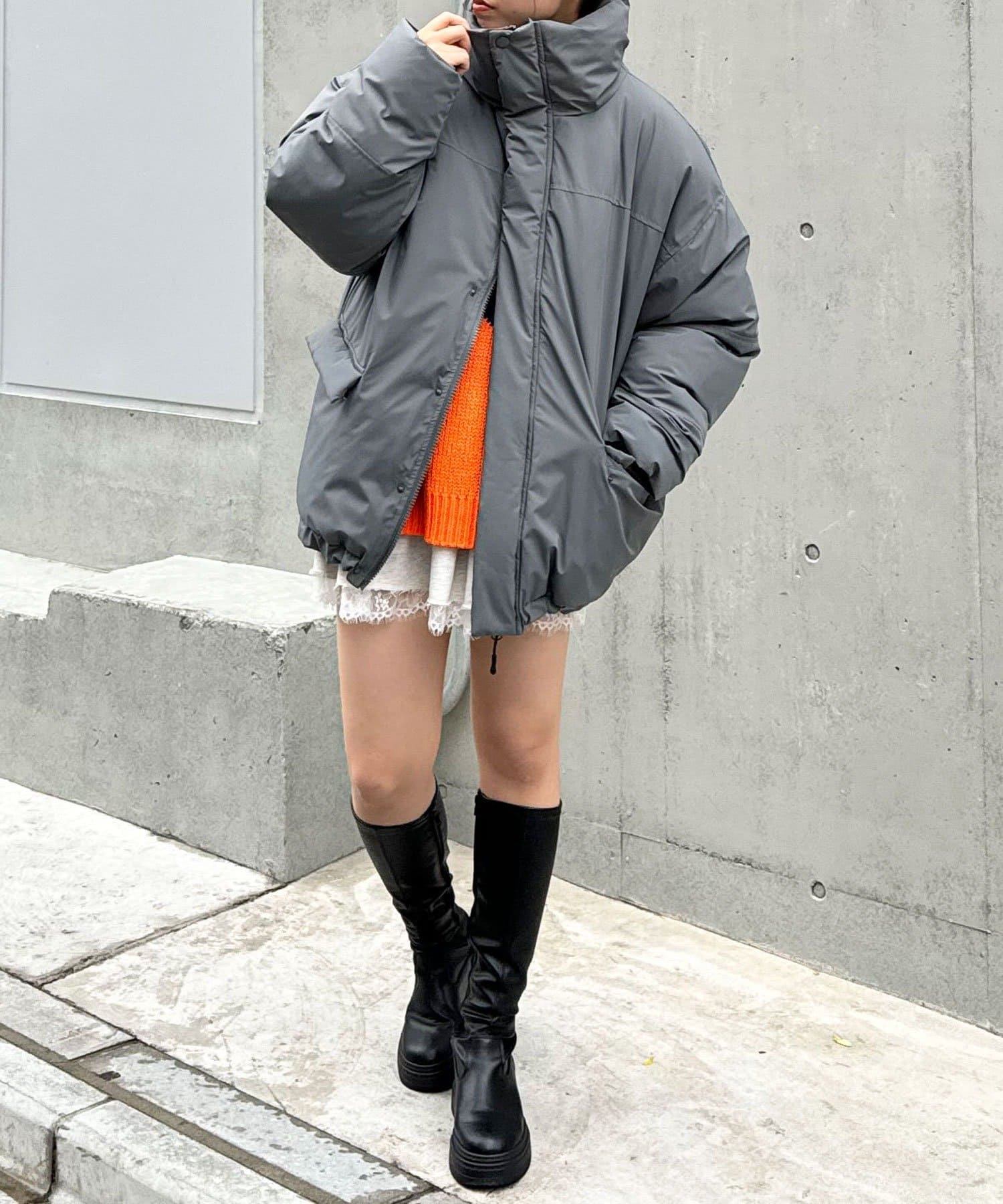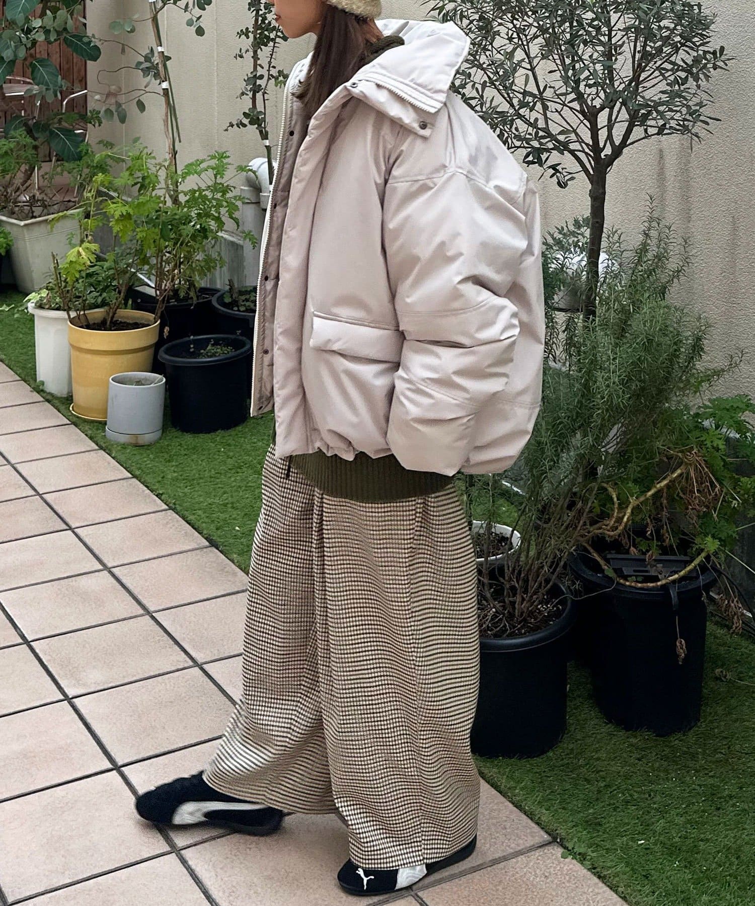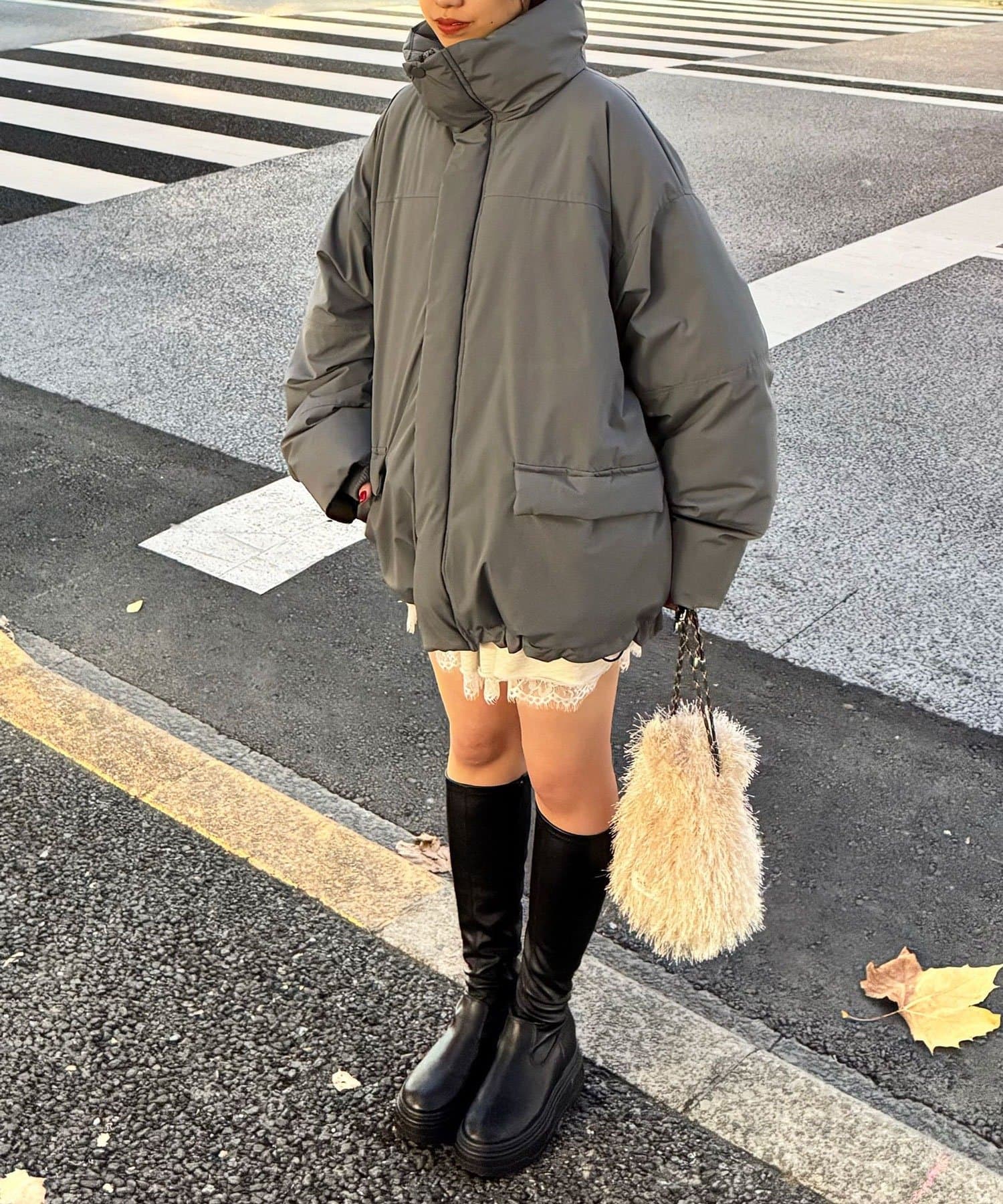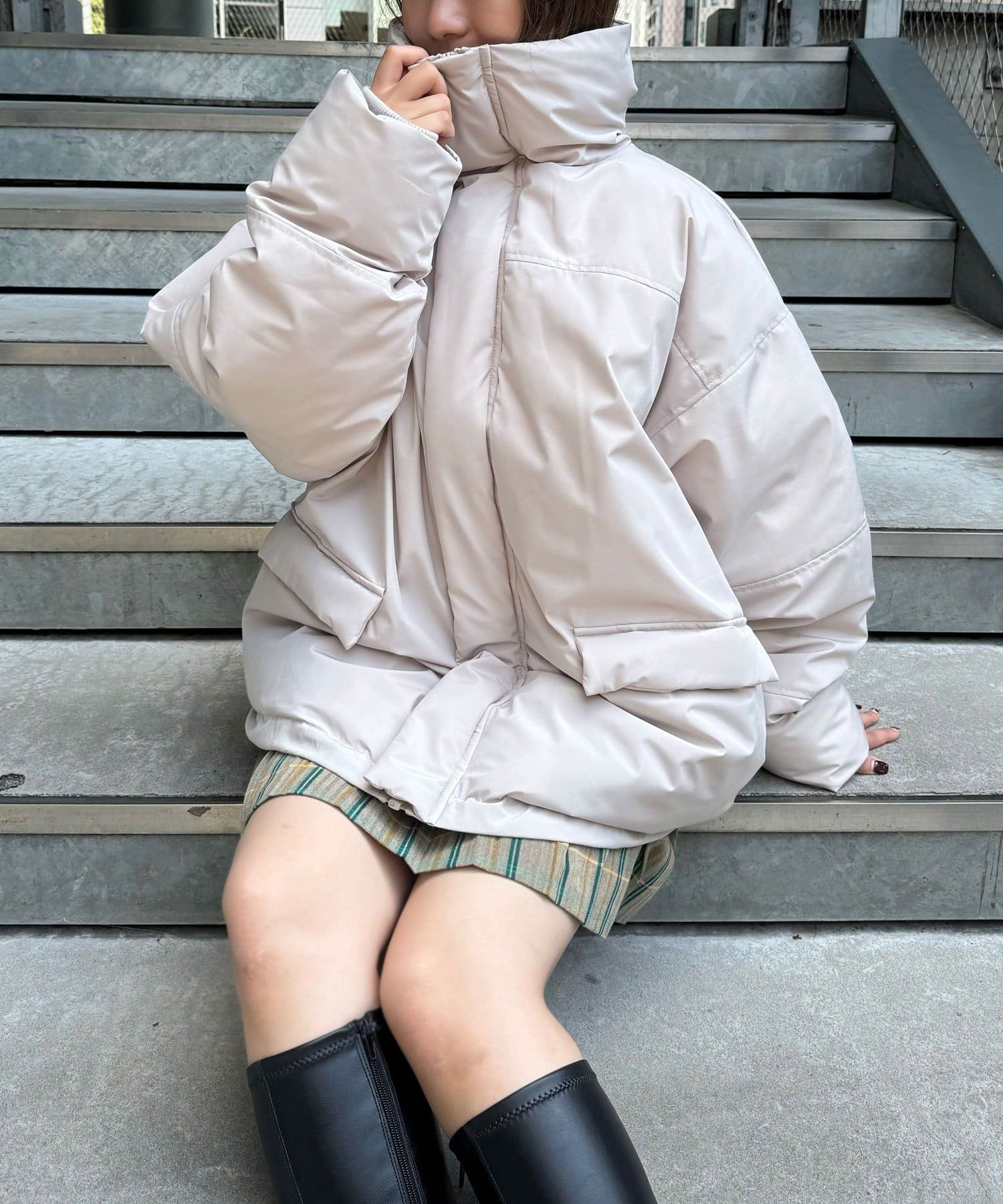 ボリューム感たっぷりの中綿が特徴的なハーフハッピージャケット。