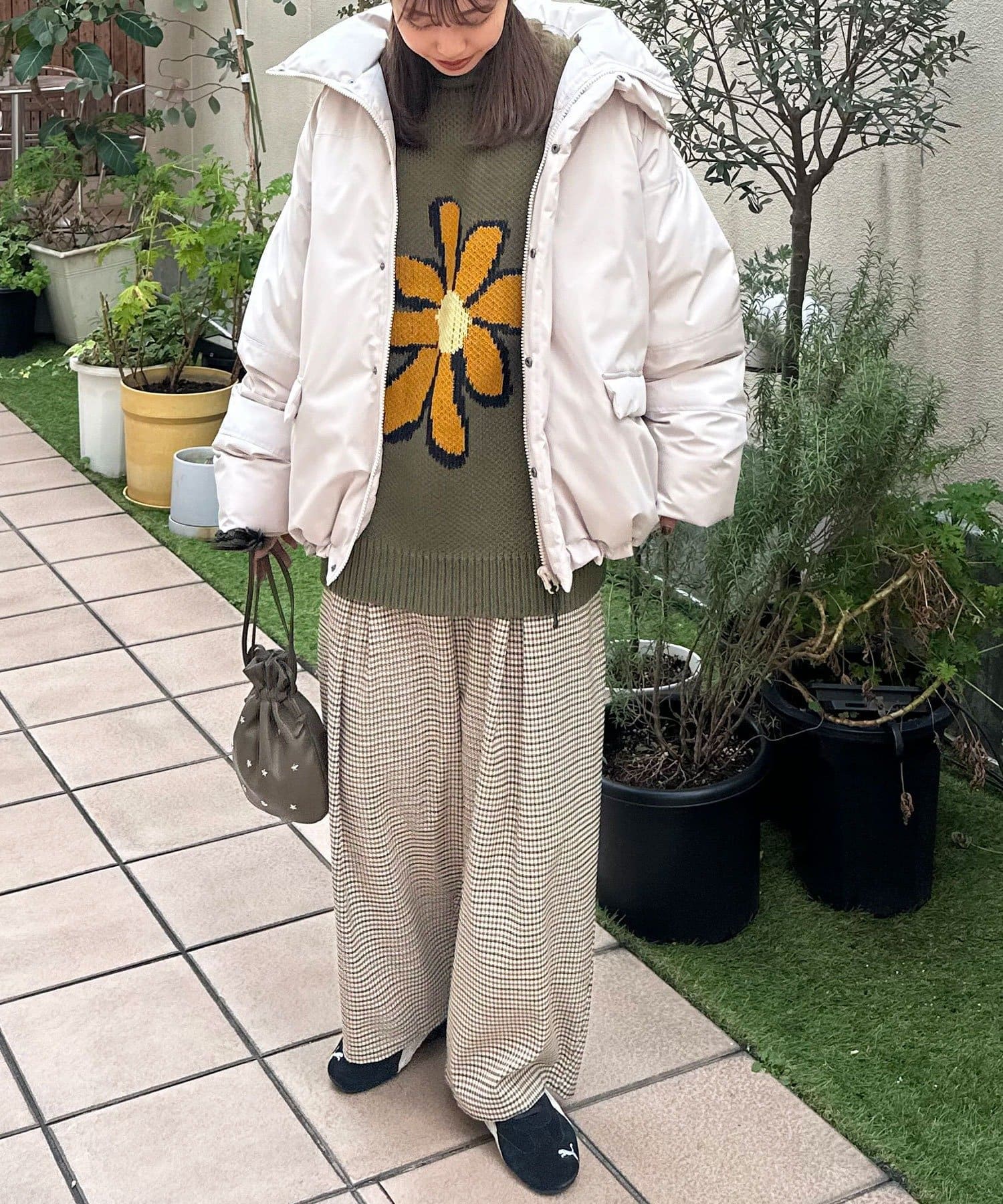 ワイドパンツやミニスカートと合わせて、ゆるっとした旬のレイヤードスタイルに。