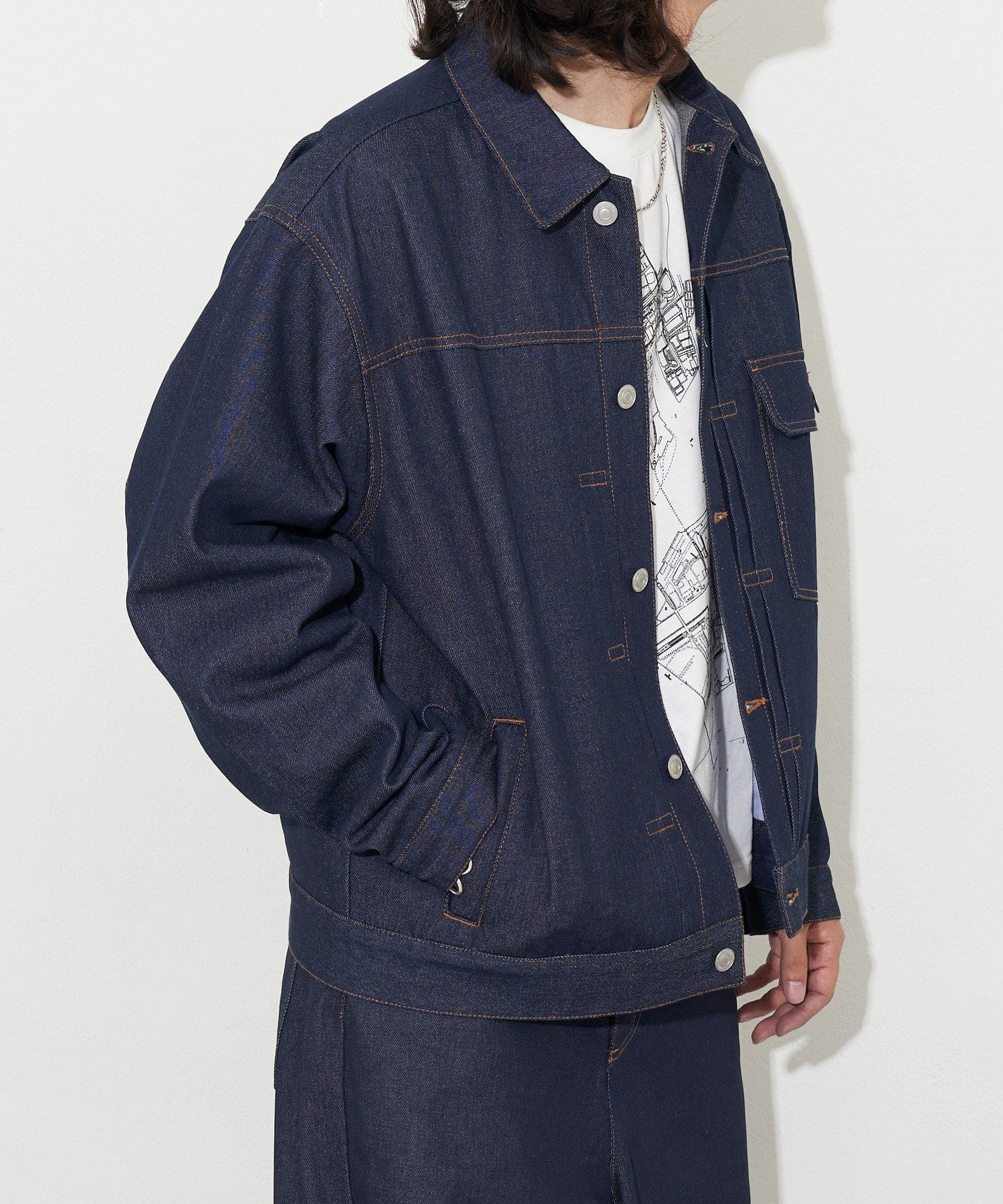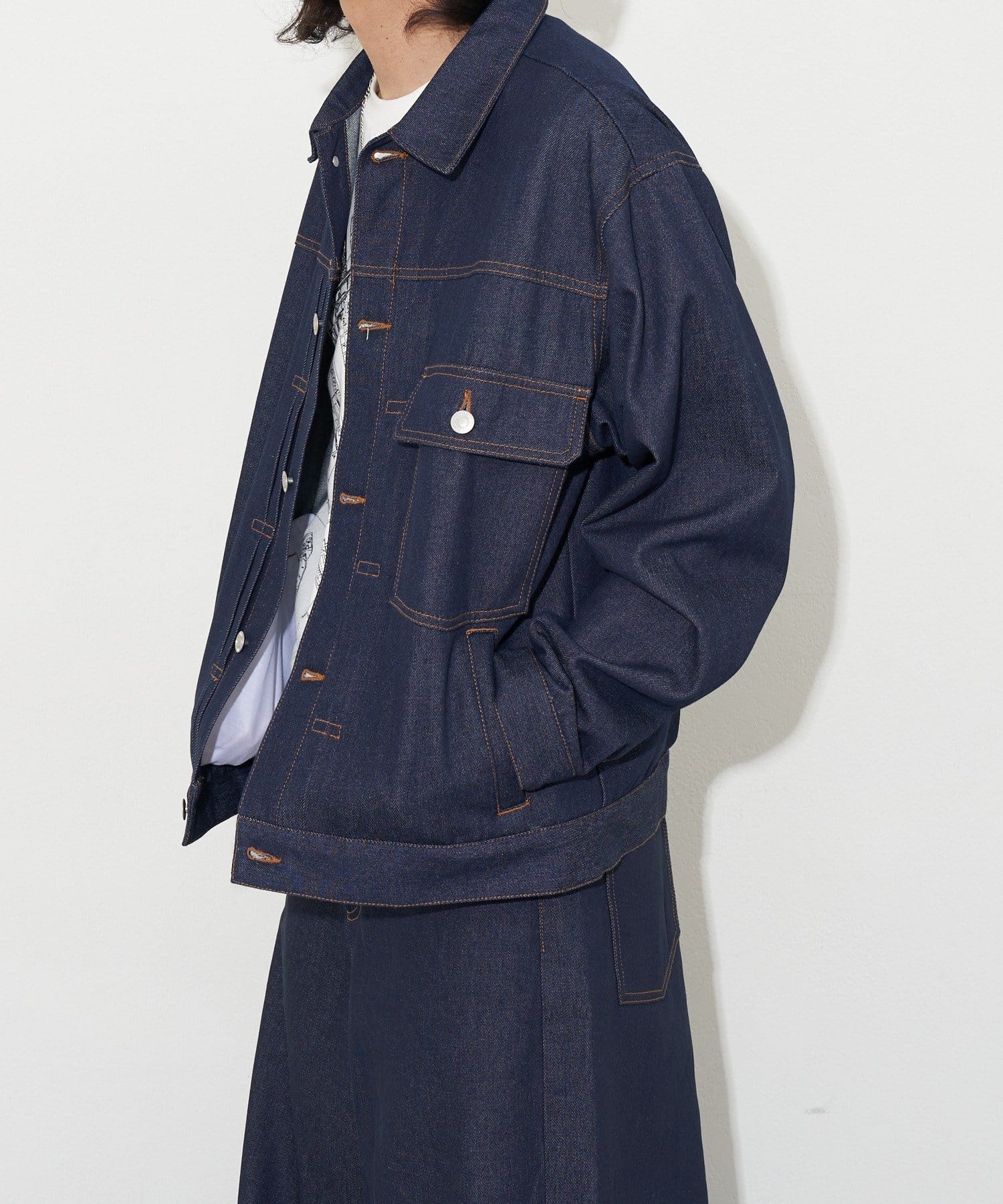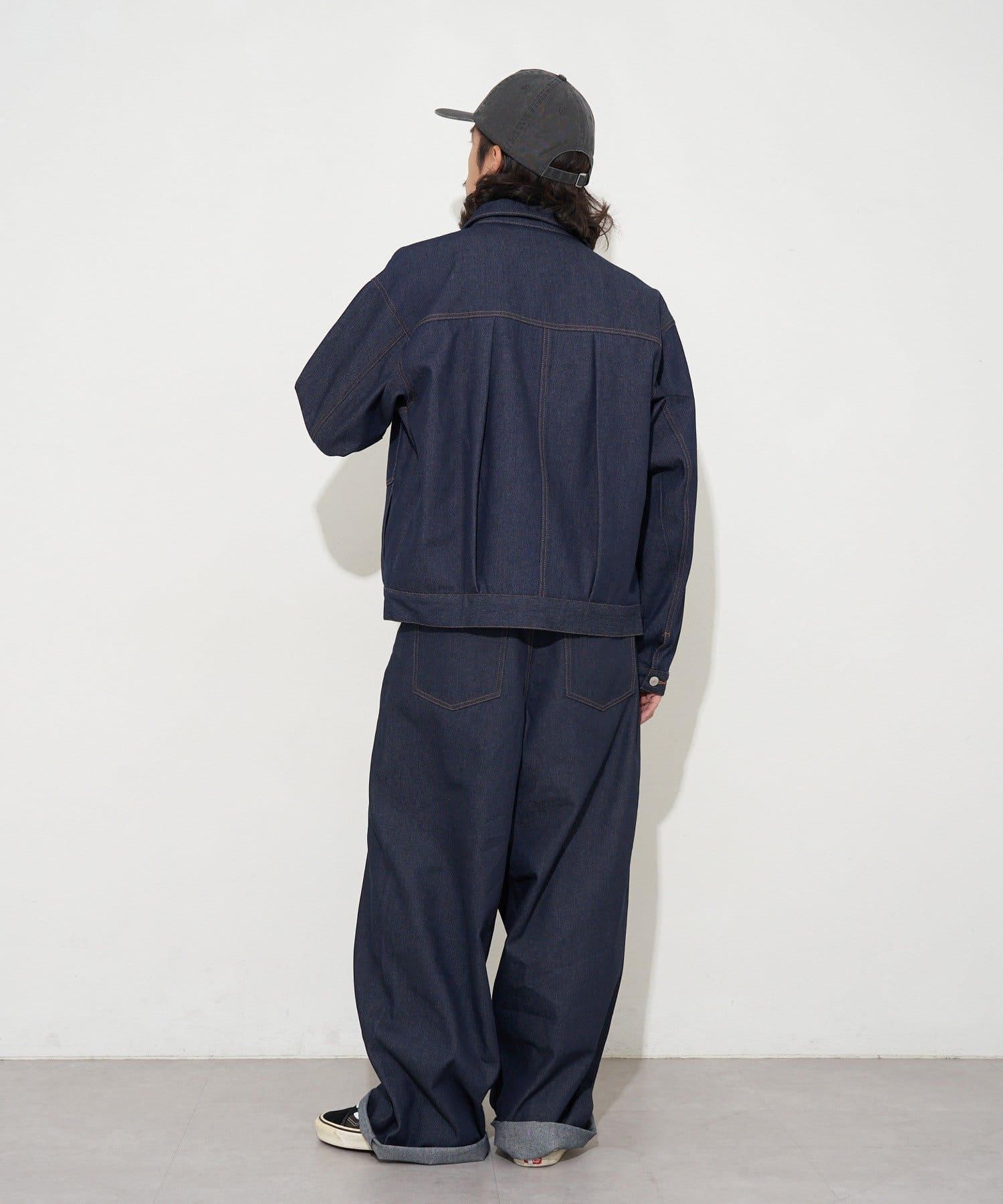 厚手のデニム生地に洗い加工を施すことで、こなれた風合いに仕上げました。