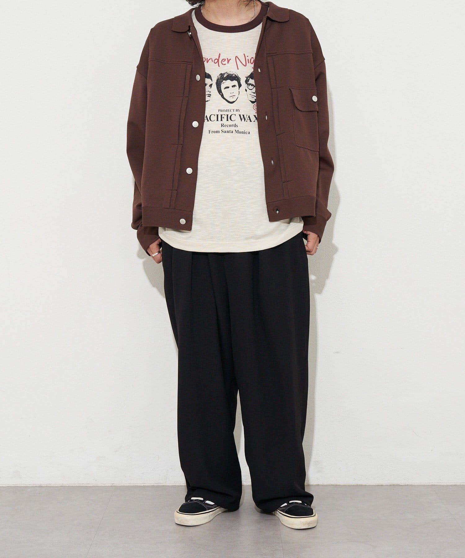 ワークジャケットの定番「1STタイプ」をベースに、ハイゲージニット素材で仕立てた1枚。