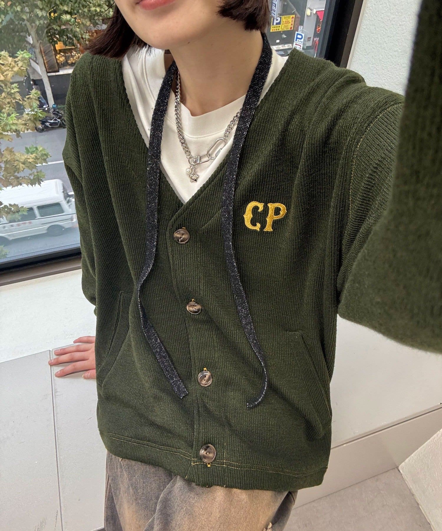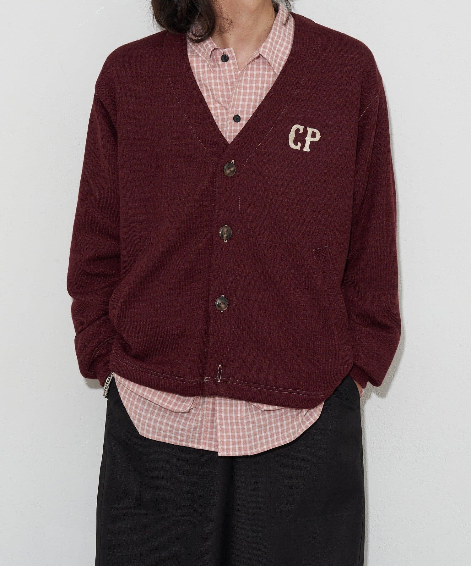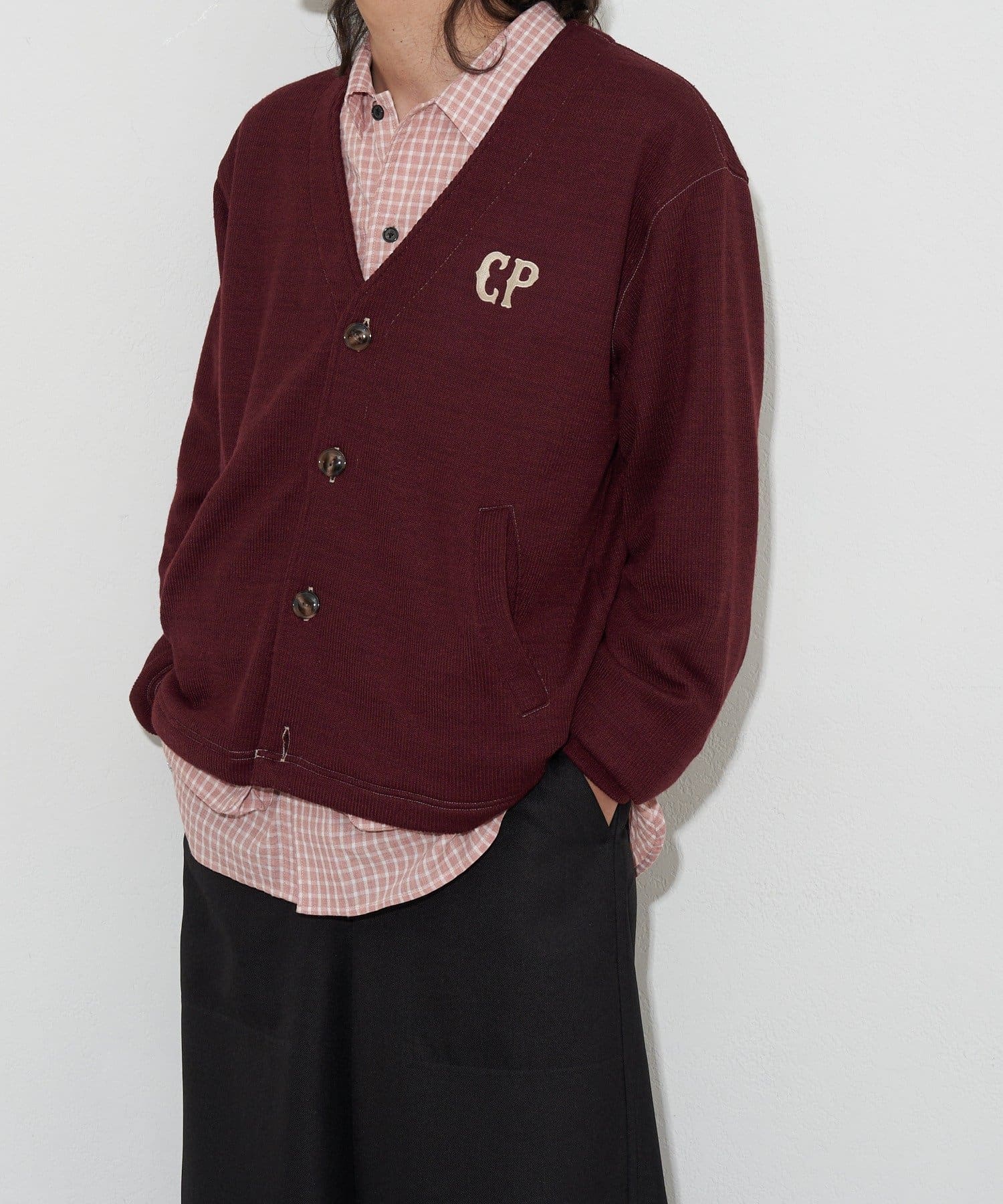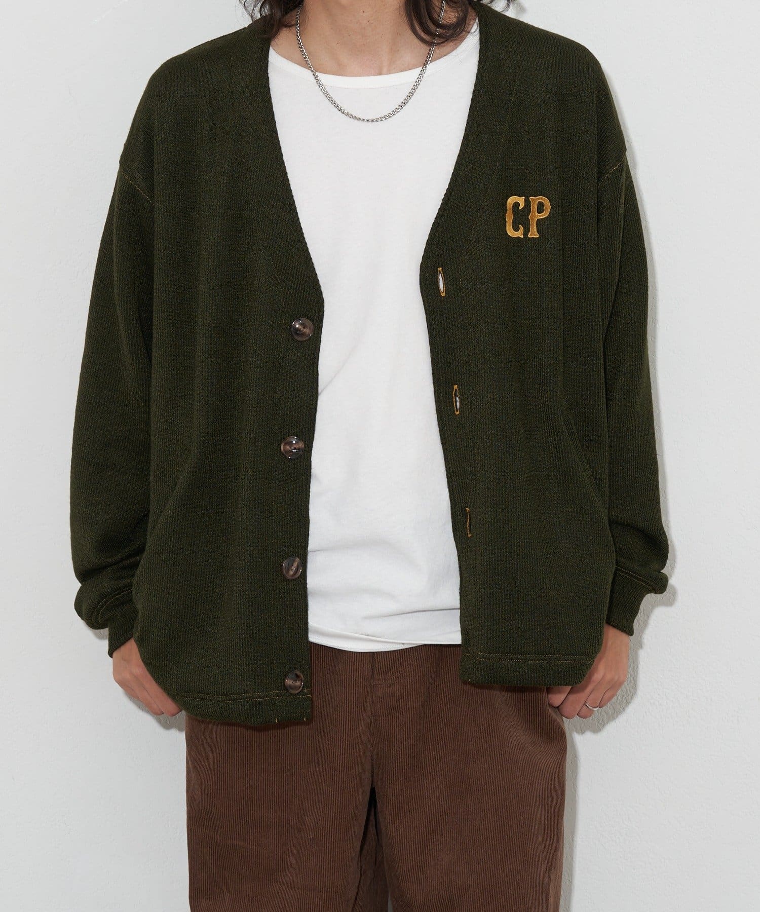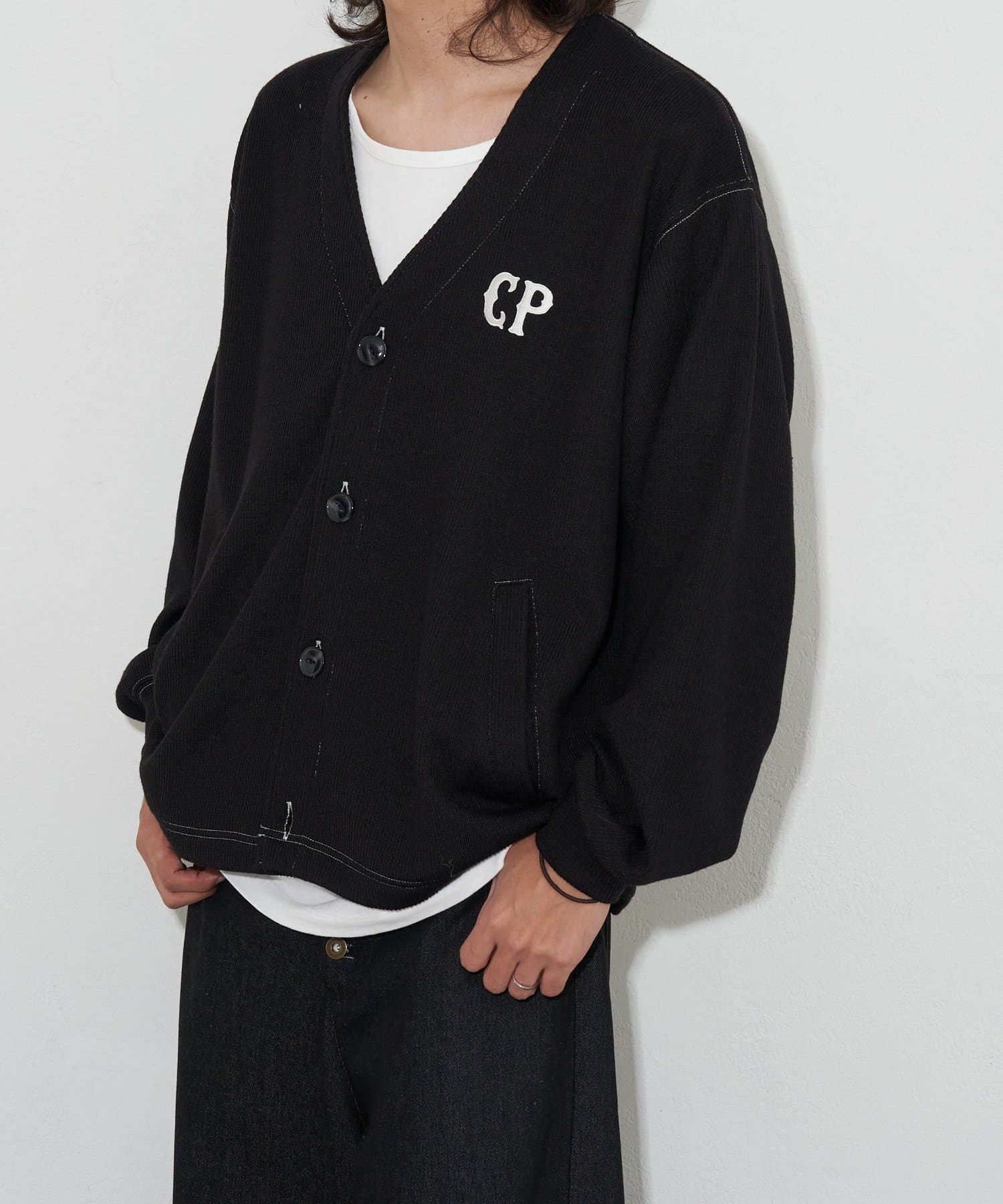薄手で軽いニットソー素材を使った、CPロゴステッチカーディガン。