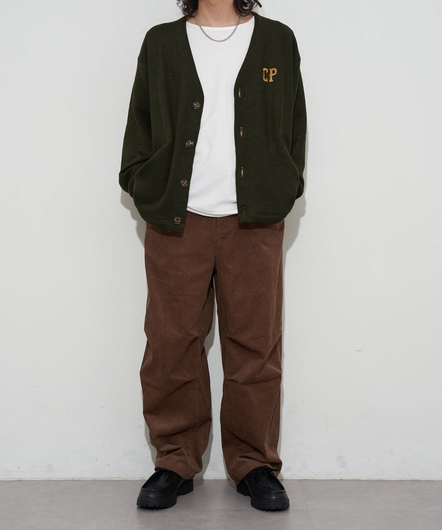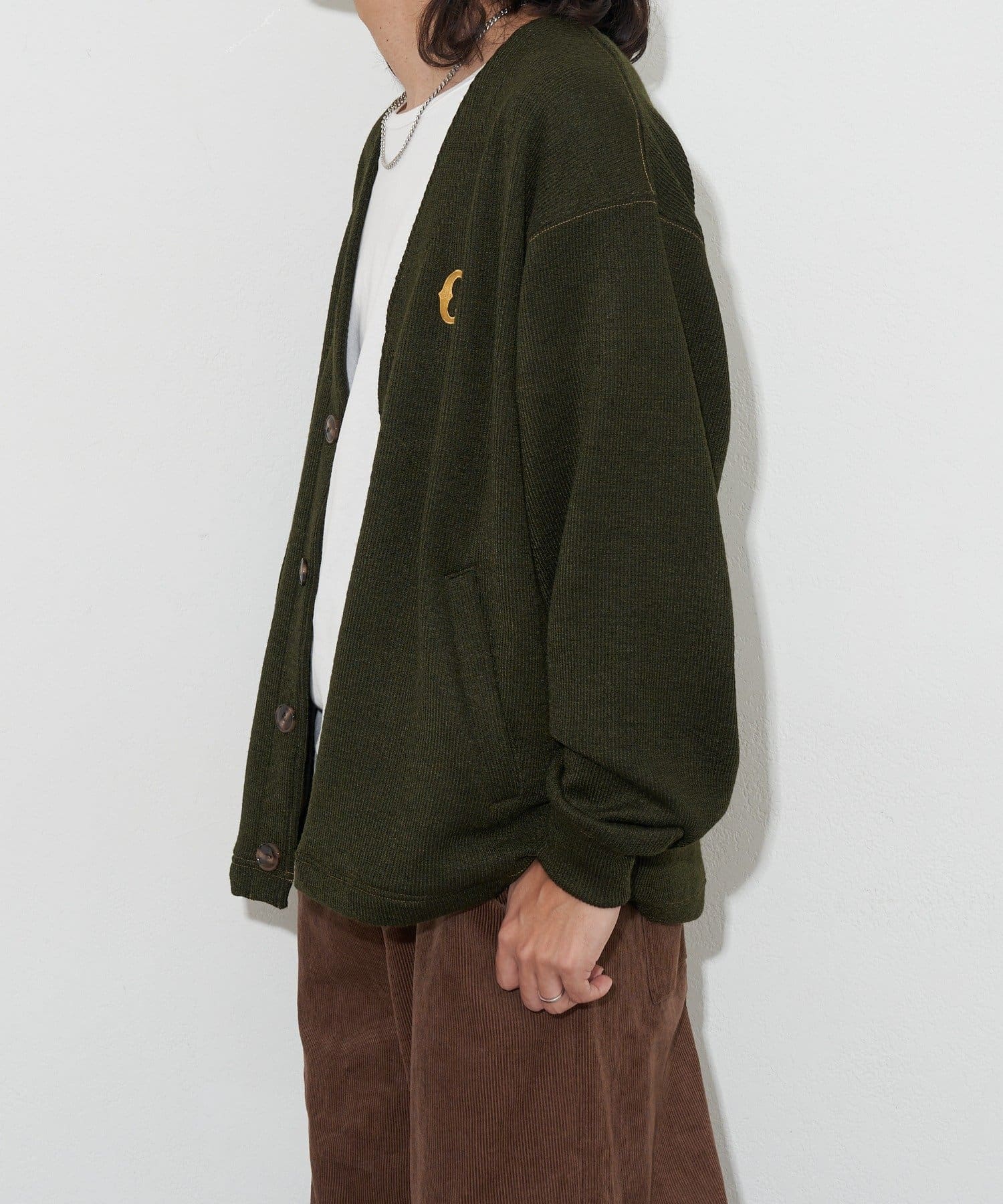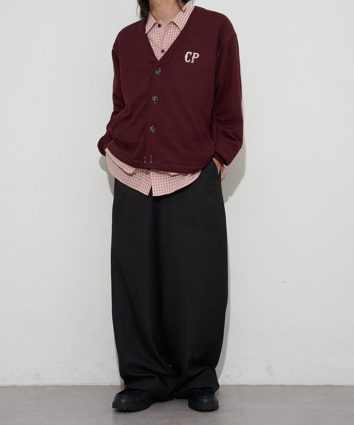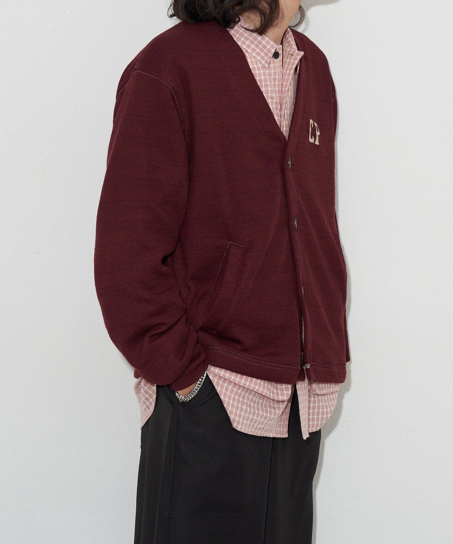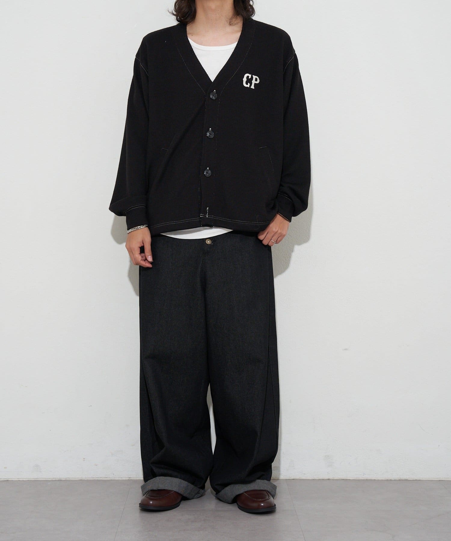 薄手で軽いニットソー素材を使った、CPロゴステッチカーディガン。