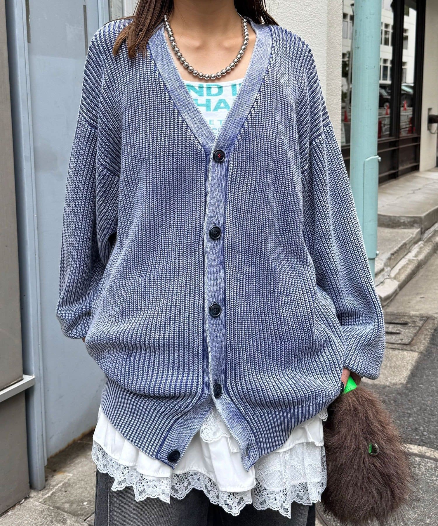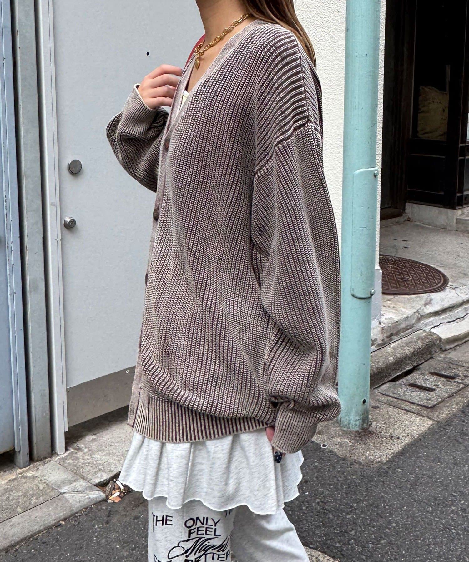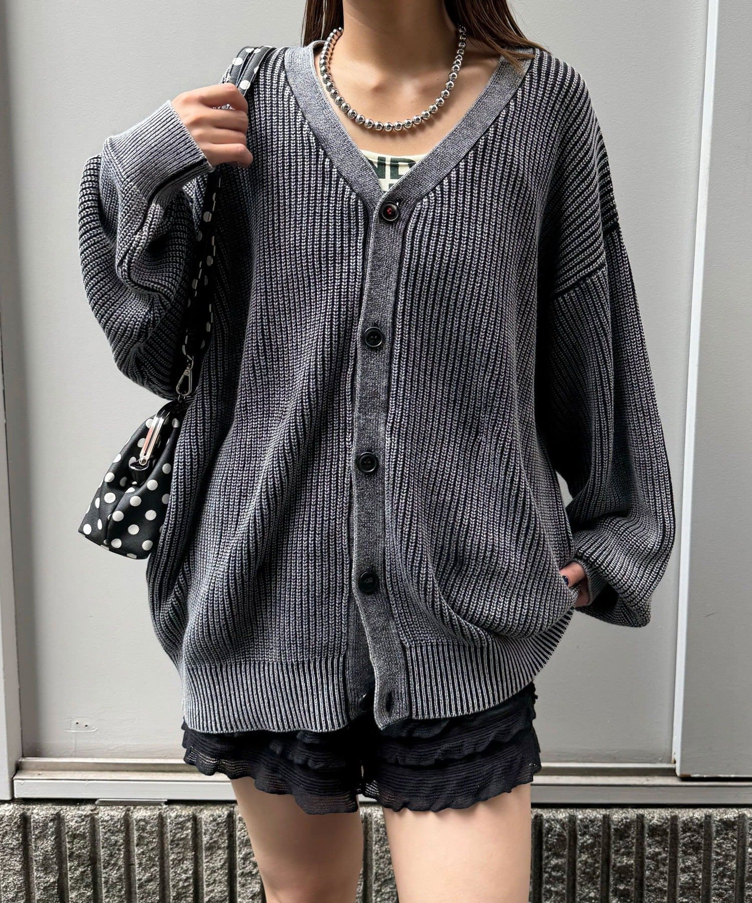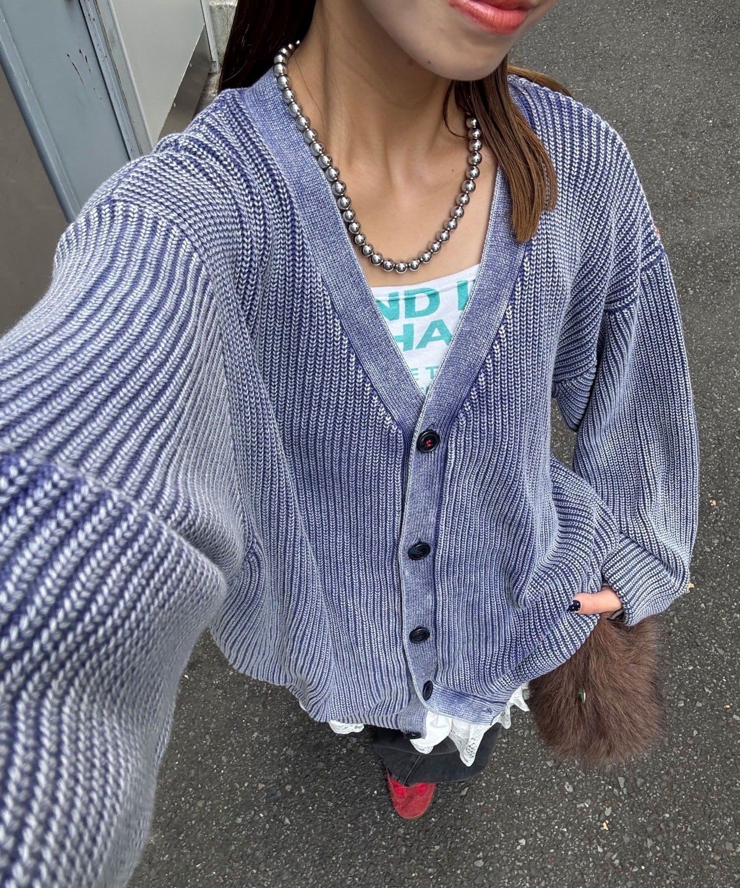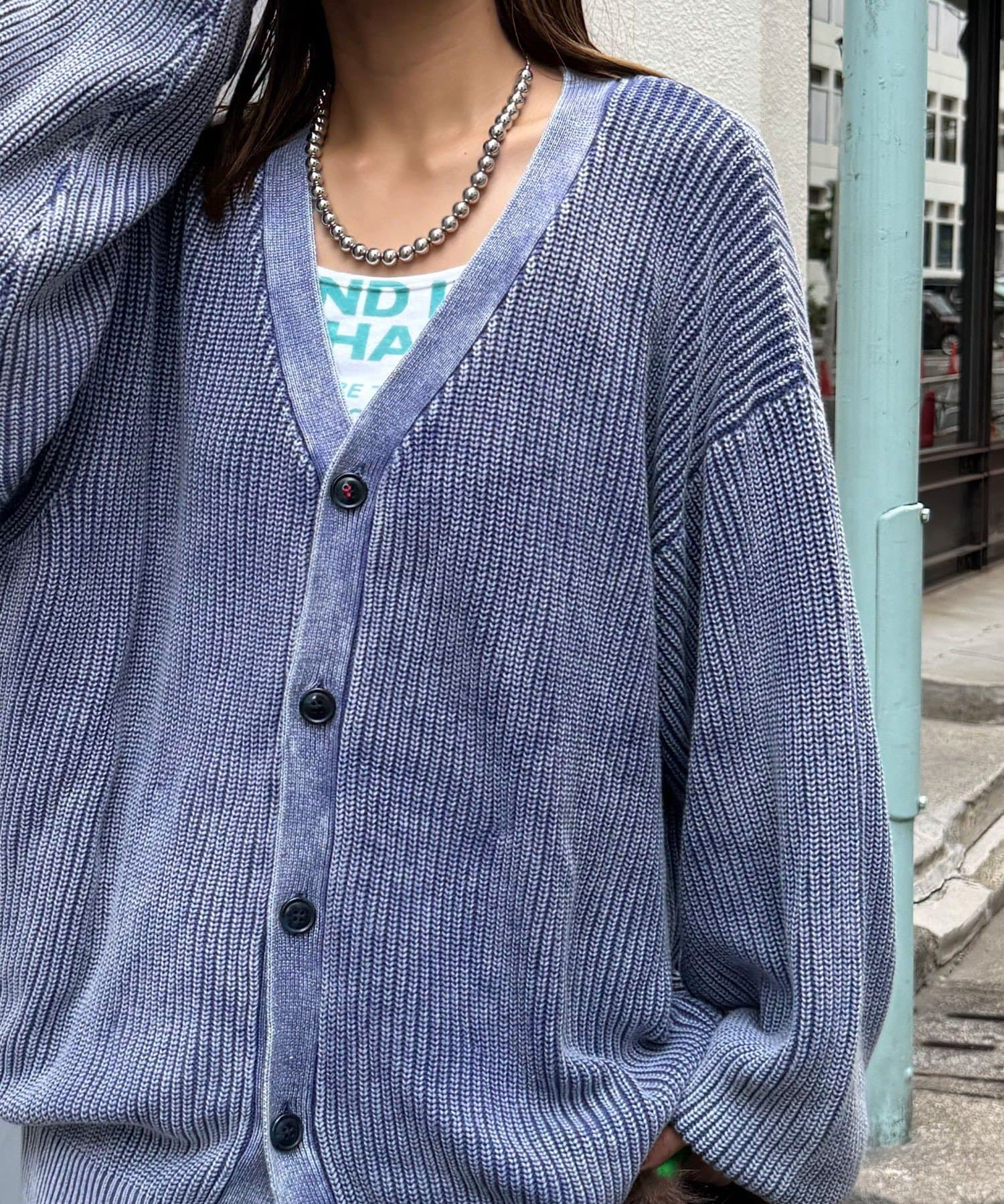 ストーンウォッシュ加工で、ヴィンテージライクな雰囲気に仕上げたニットカーディガン。